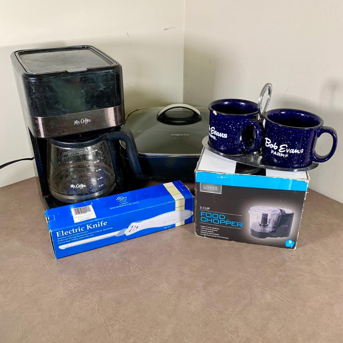 LOT 37 L: "Mr. Coffee" Coffee Maker, Presto Electric Skillet w/ Glass Top, Electric Knife Set, Living Solutions 3 Cup Food Chopper, & More