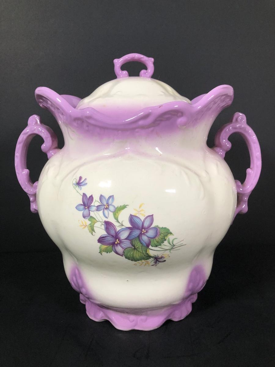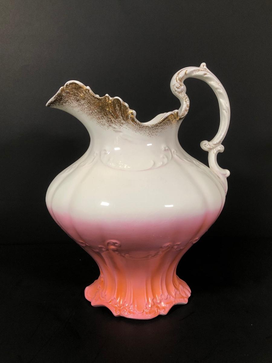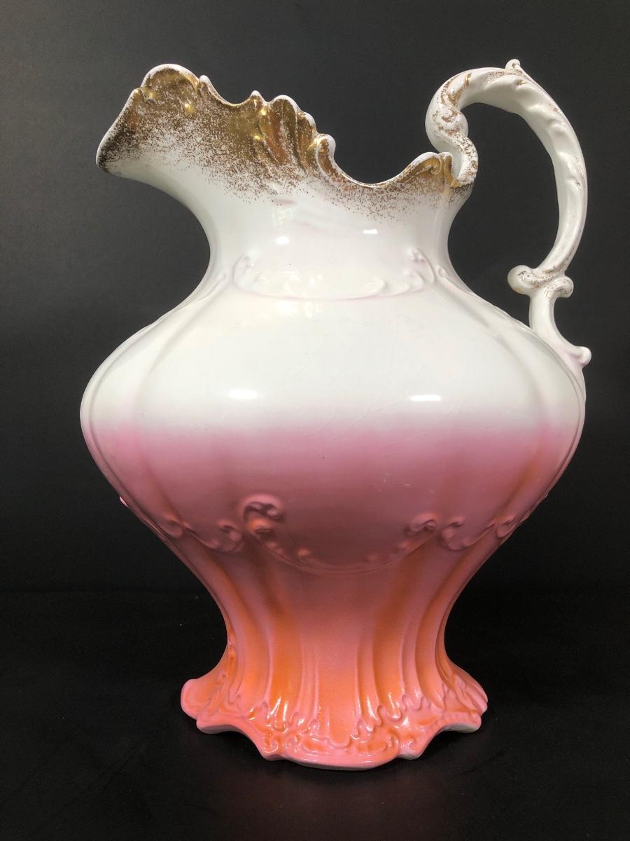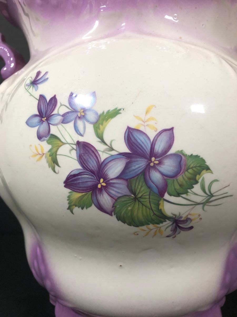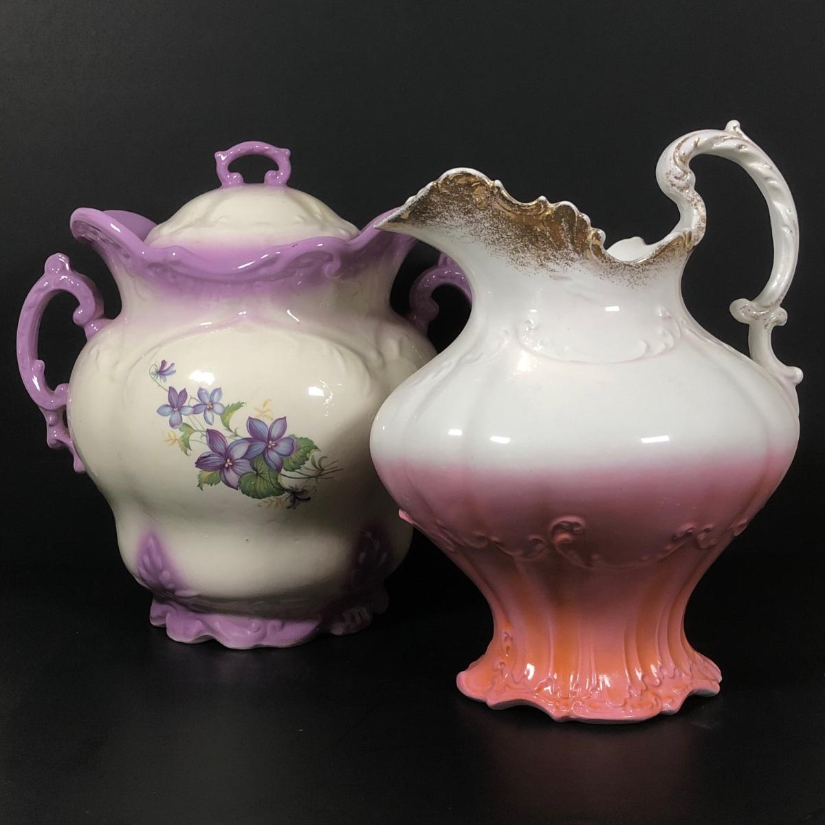 LOT 48L: Large Vintage Porcelain - Pitcher w/ Pink Ombre & Purple Floral Lidded Vase