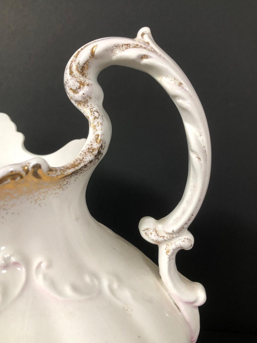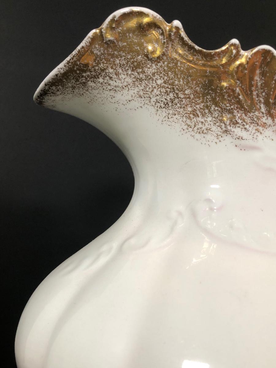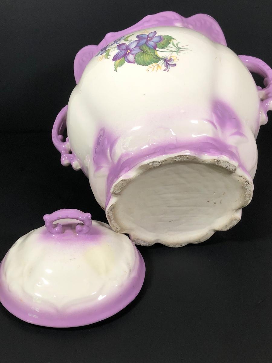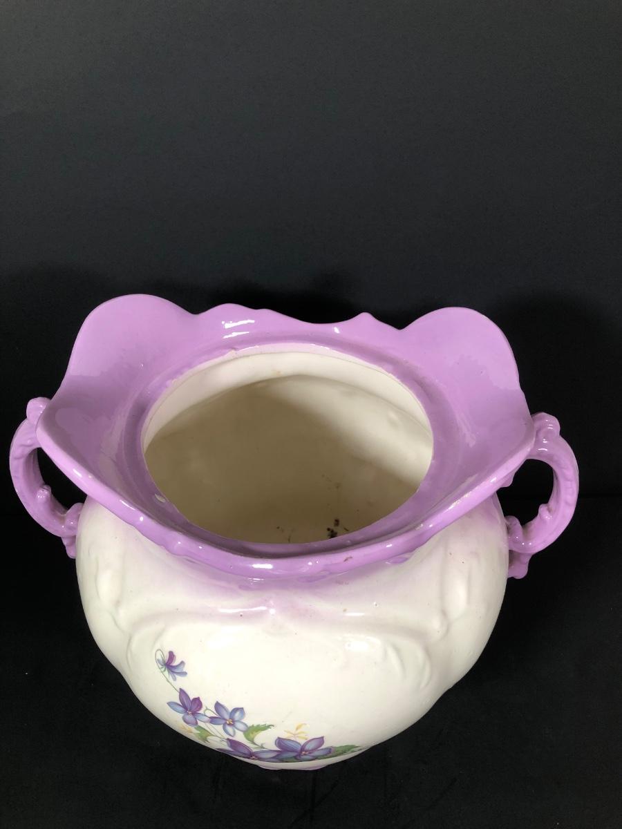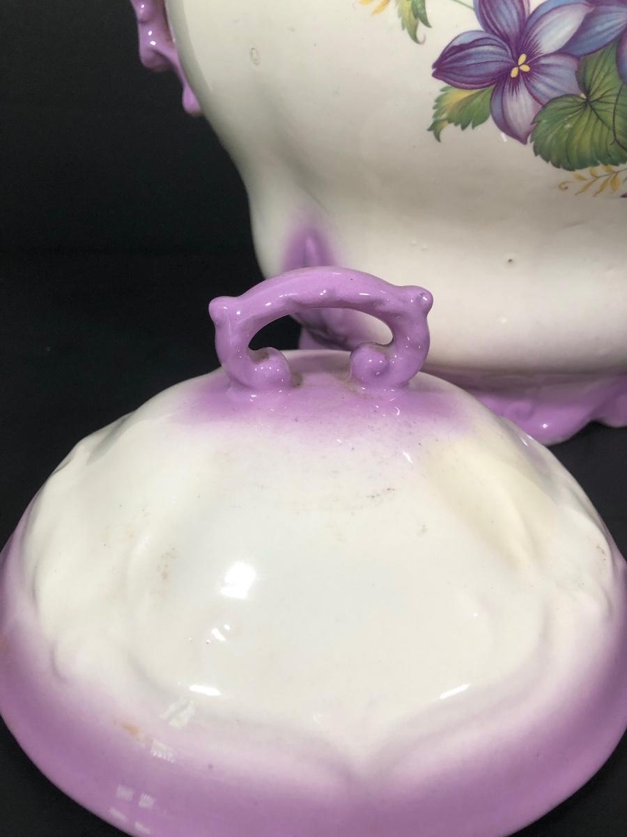 LOT 48L: Large Vintage Porcelain - Pitcher w/ Pink Ombre & Purple Floral Lidded Vase