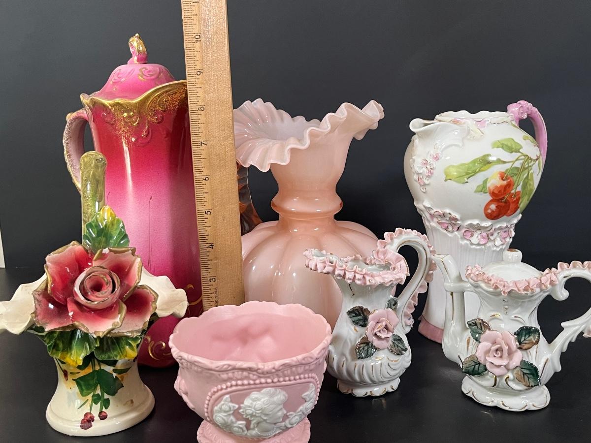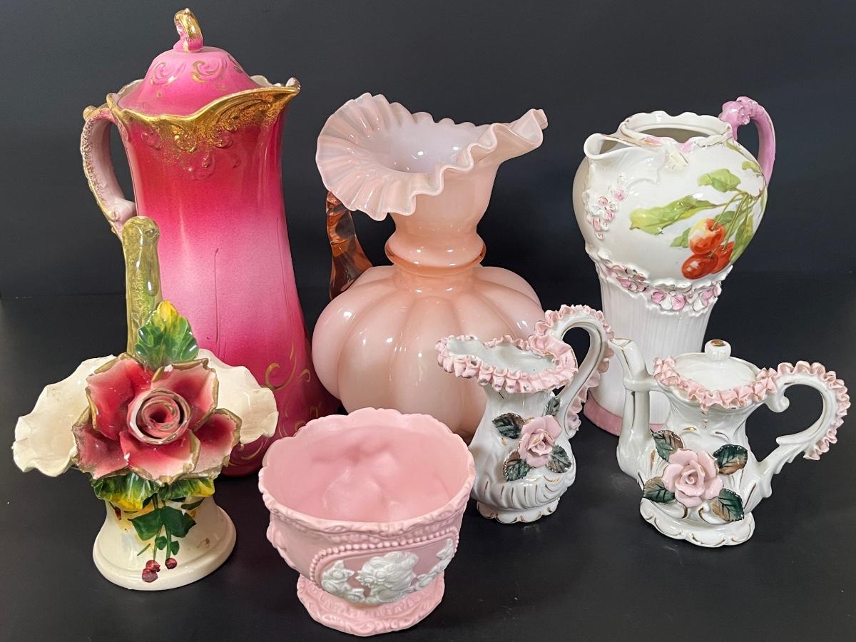 LOT 54: Vintage Floral Ceramic Pitchers and More