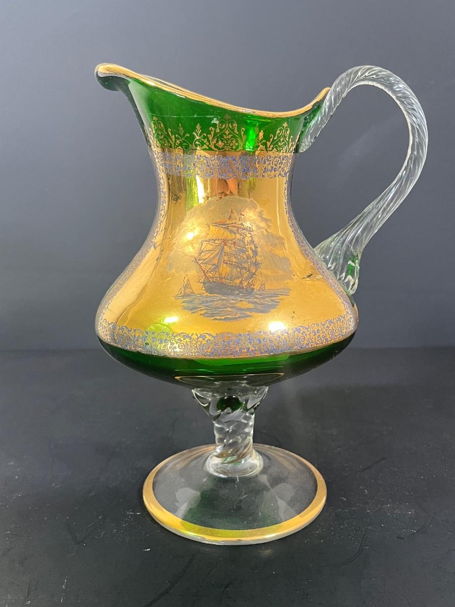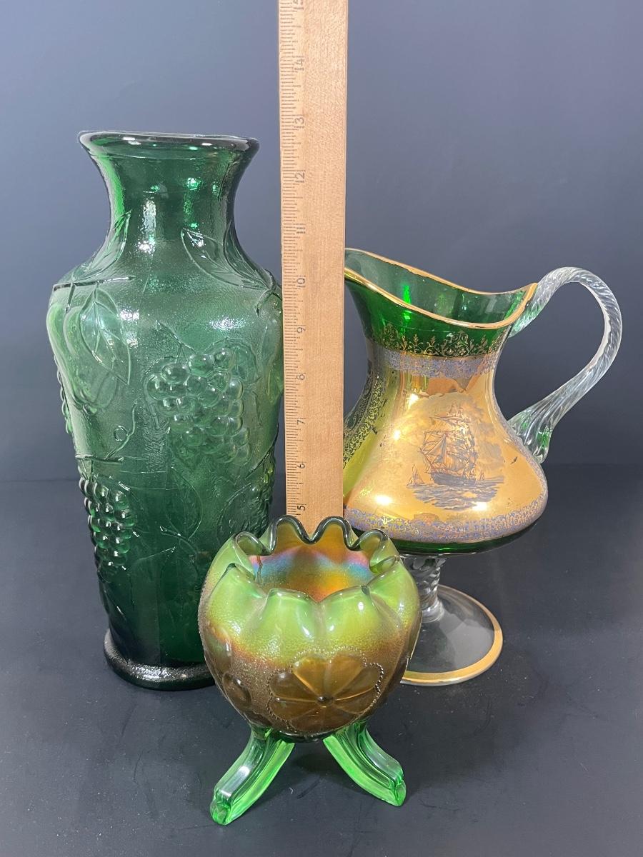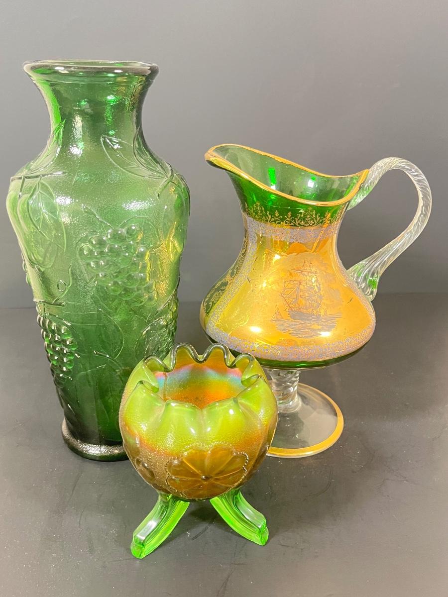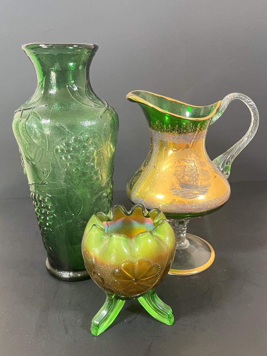 LOT 55: Green Glass Pitcher, Vase & More