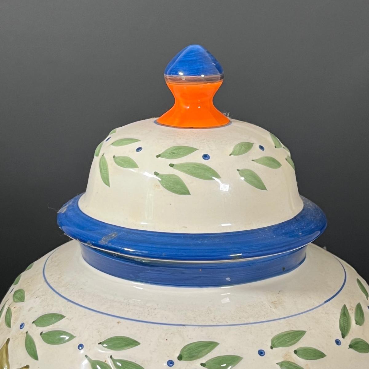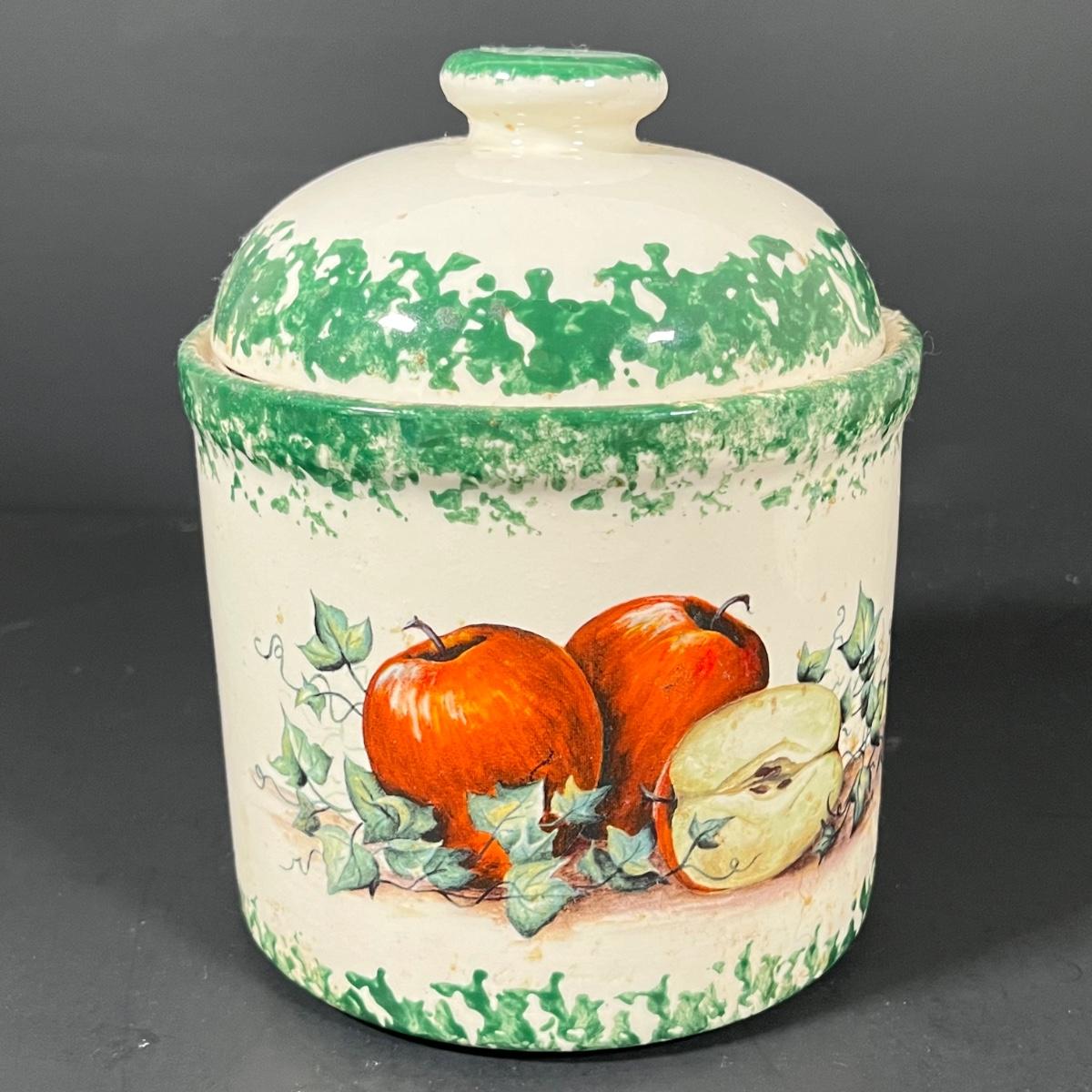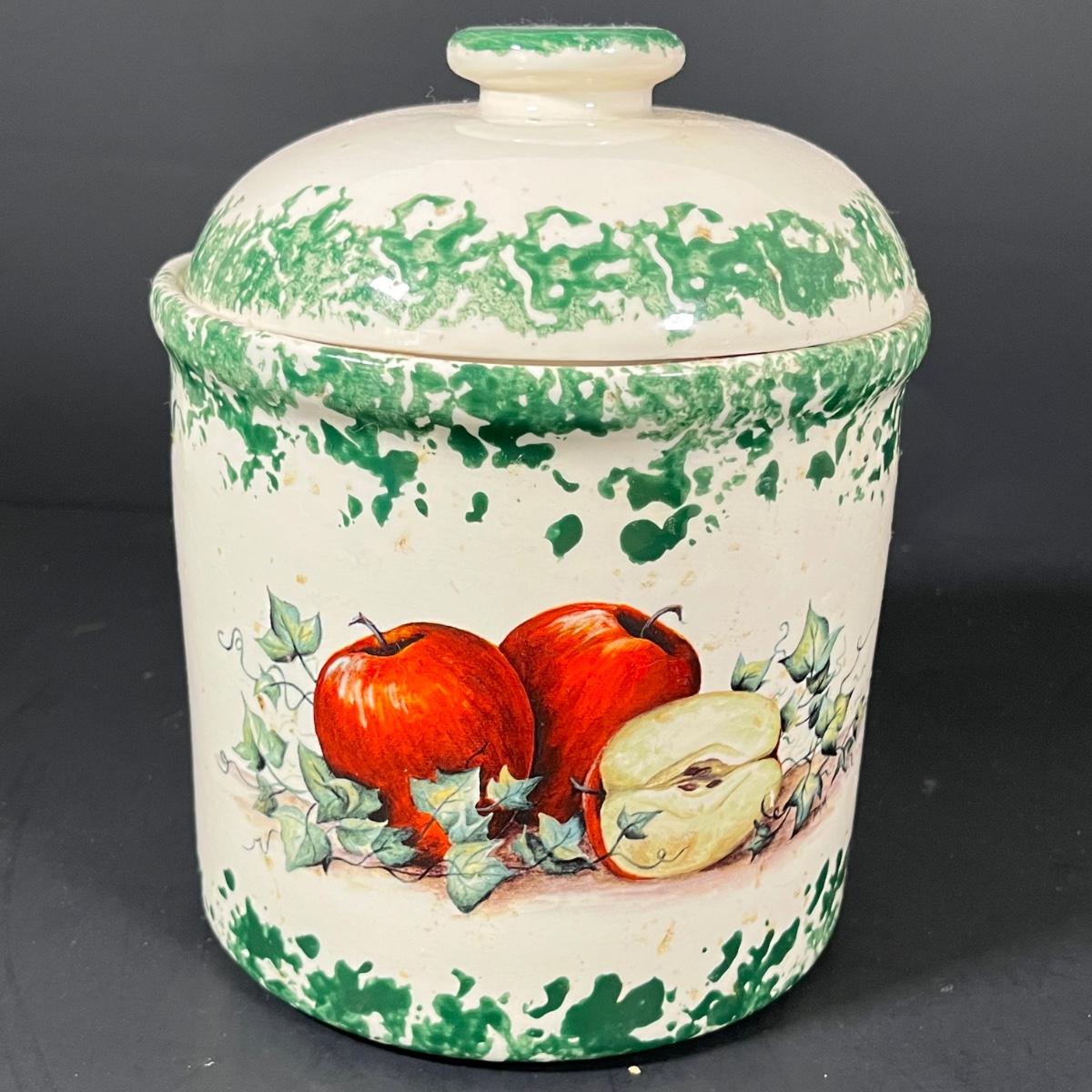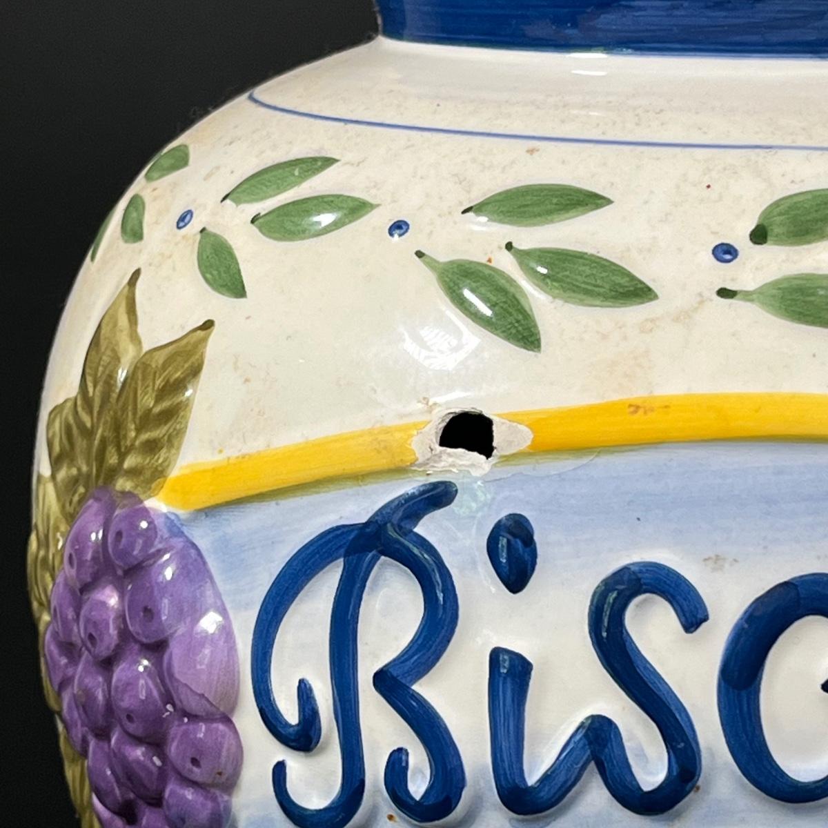 LOT 68: Ceramic Biscotti Cookie Jar and Canister Set + Metal Decorative Cake Stand