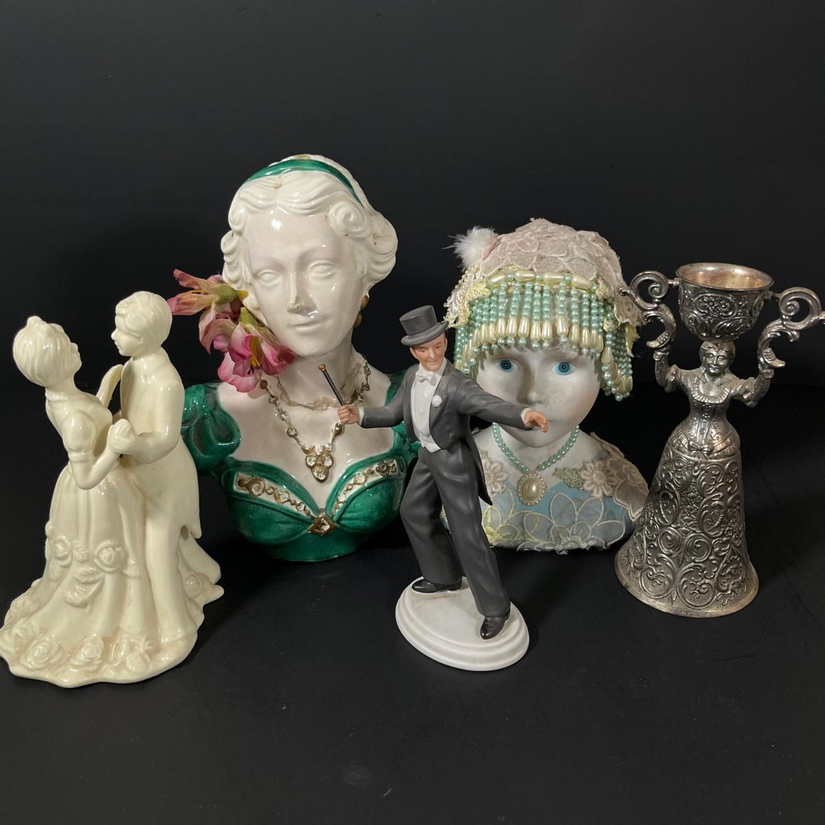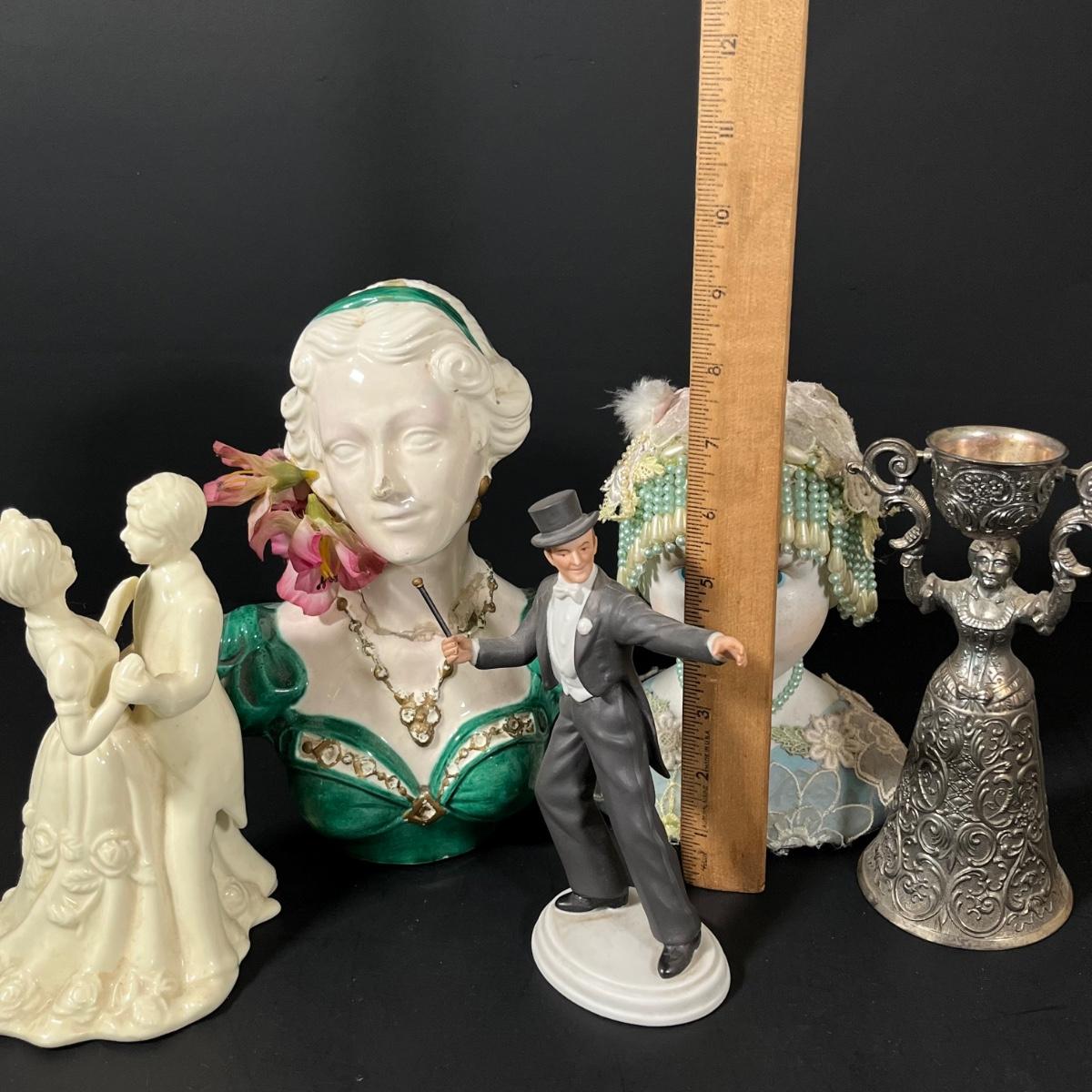 LOT 70: Ceramic Wedding Cake Topper, Bridal Cup, Avon Fred Astaire Figurine, Music Box Bust & More