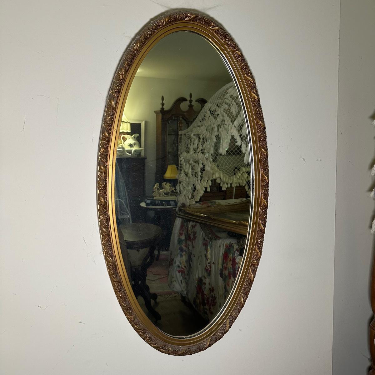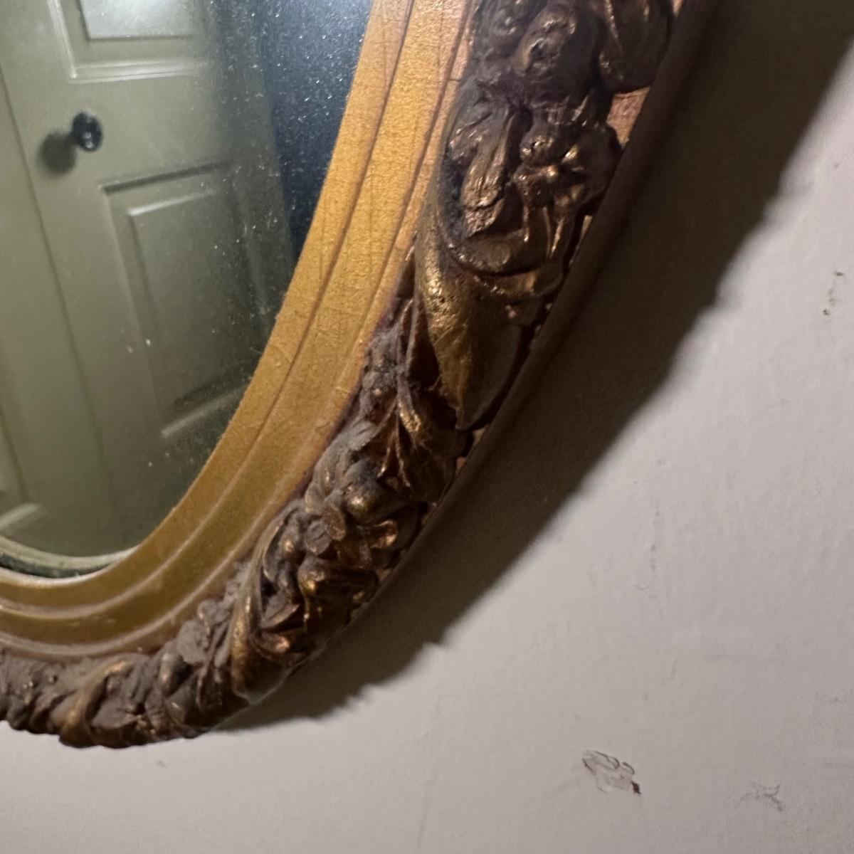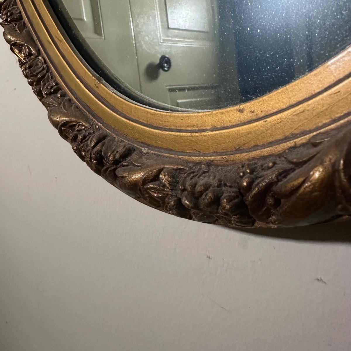 LOT 82B: Vintage Oval Gold Wooden Wall Mirror