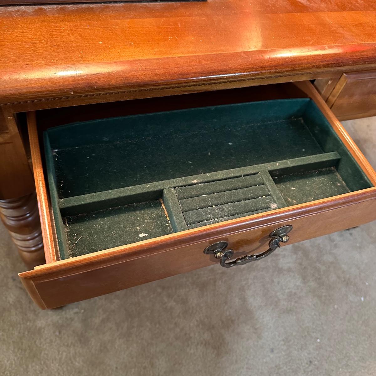 Vanity and lamps have condition issues, 42x18x68 - Please see all pictures as they are the best representation of the items. The pictures show condition, measurements if taken, and what is included in the lot. Due to the large amount that we photograph and the time frame, we are not always able to take measurements. All items unless noted, are pre-owned and have been used. If you purchased furniture, you must bring help. We do not allow one person to carry large furniture out on their own. Bring help, tools and a truck for the safety of our client’s homes, and your personal safety. Any damages that result to the property including walls, and floors due to moving of the furniture will be charged to the buyer. Company policy. Thank you.