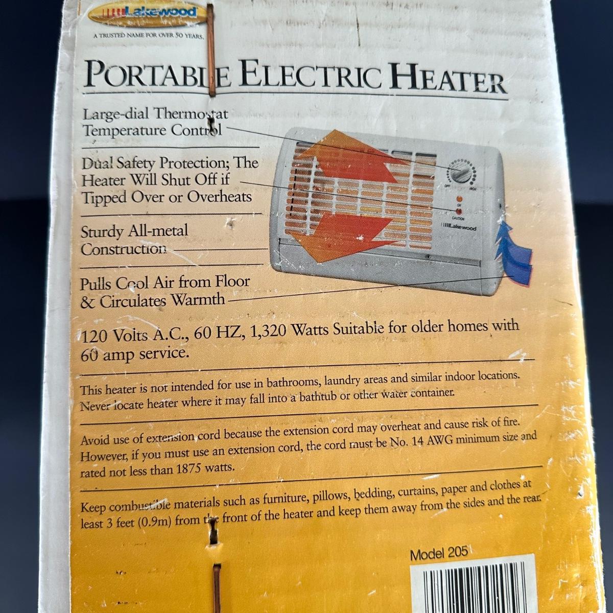 LOT 105B: Lakewood Portable Electric Heater Model 205