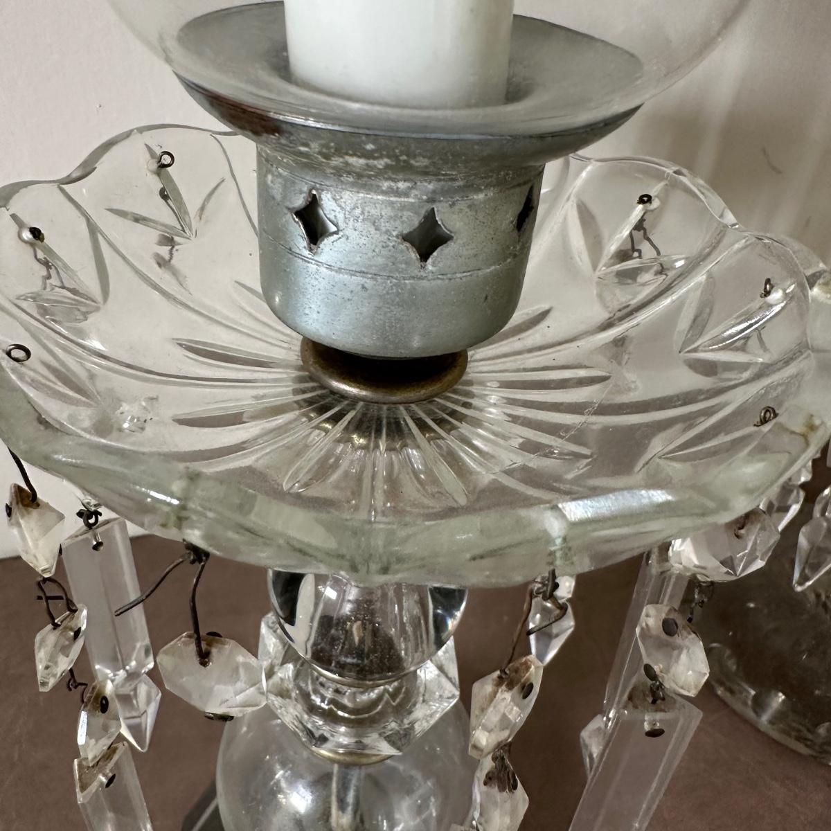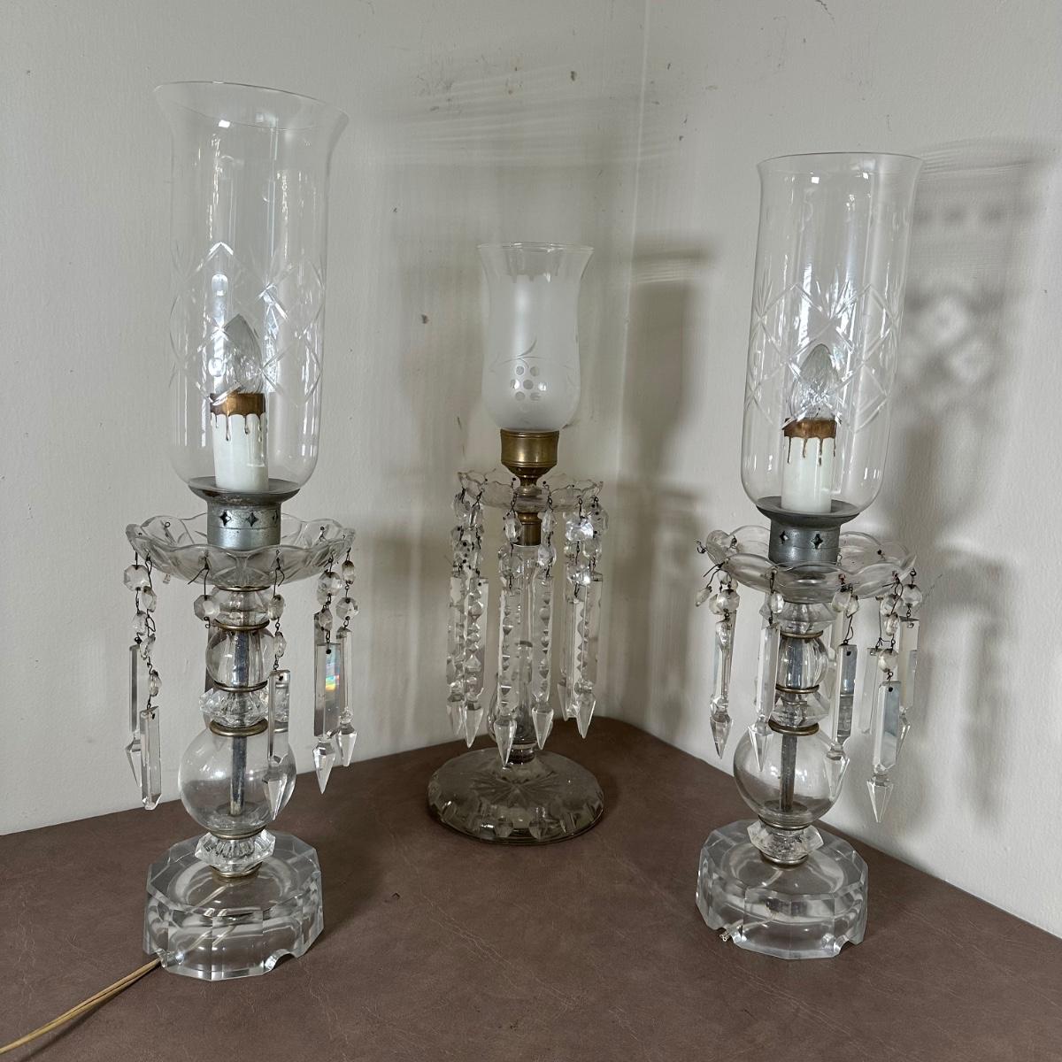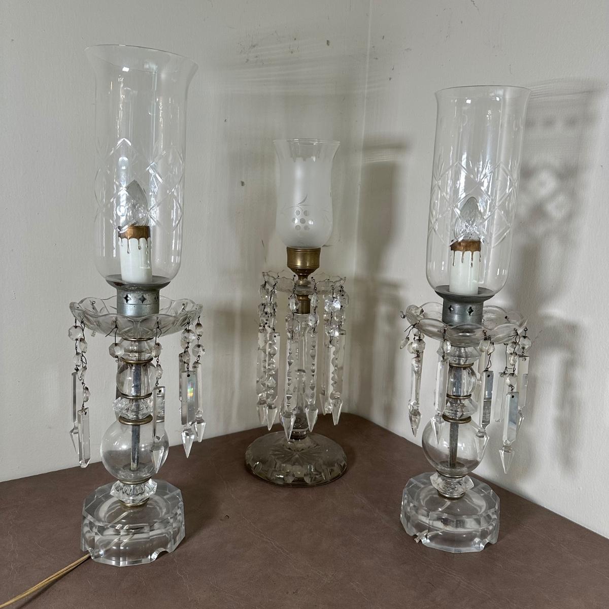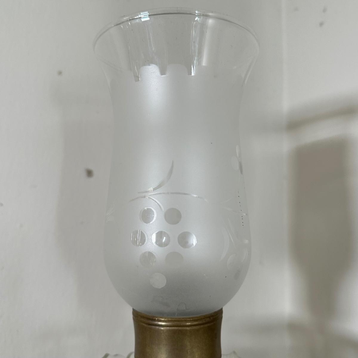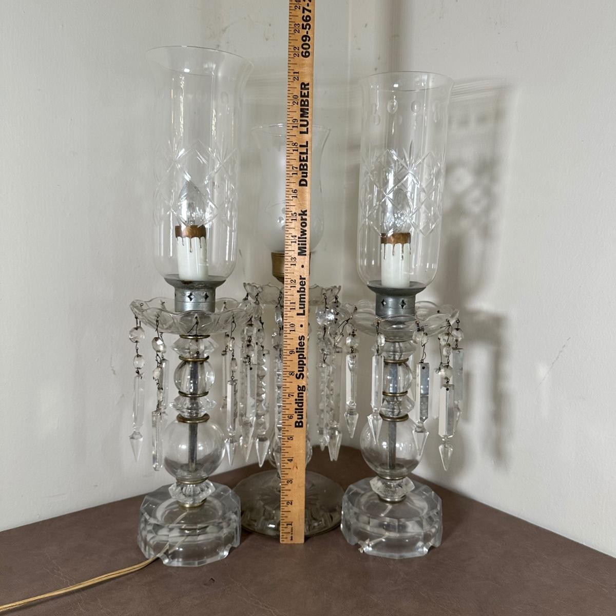 LOT 130L: Vintage Chandelier Etched Glass Table Lamps & Candle Holder