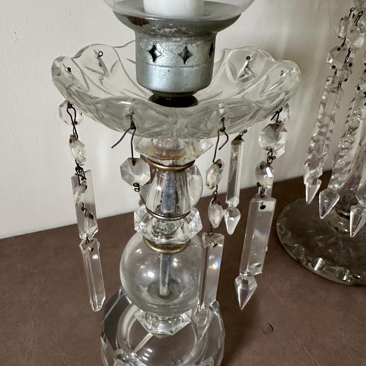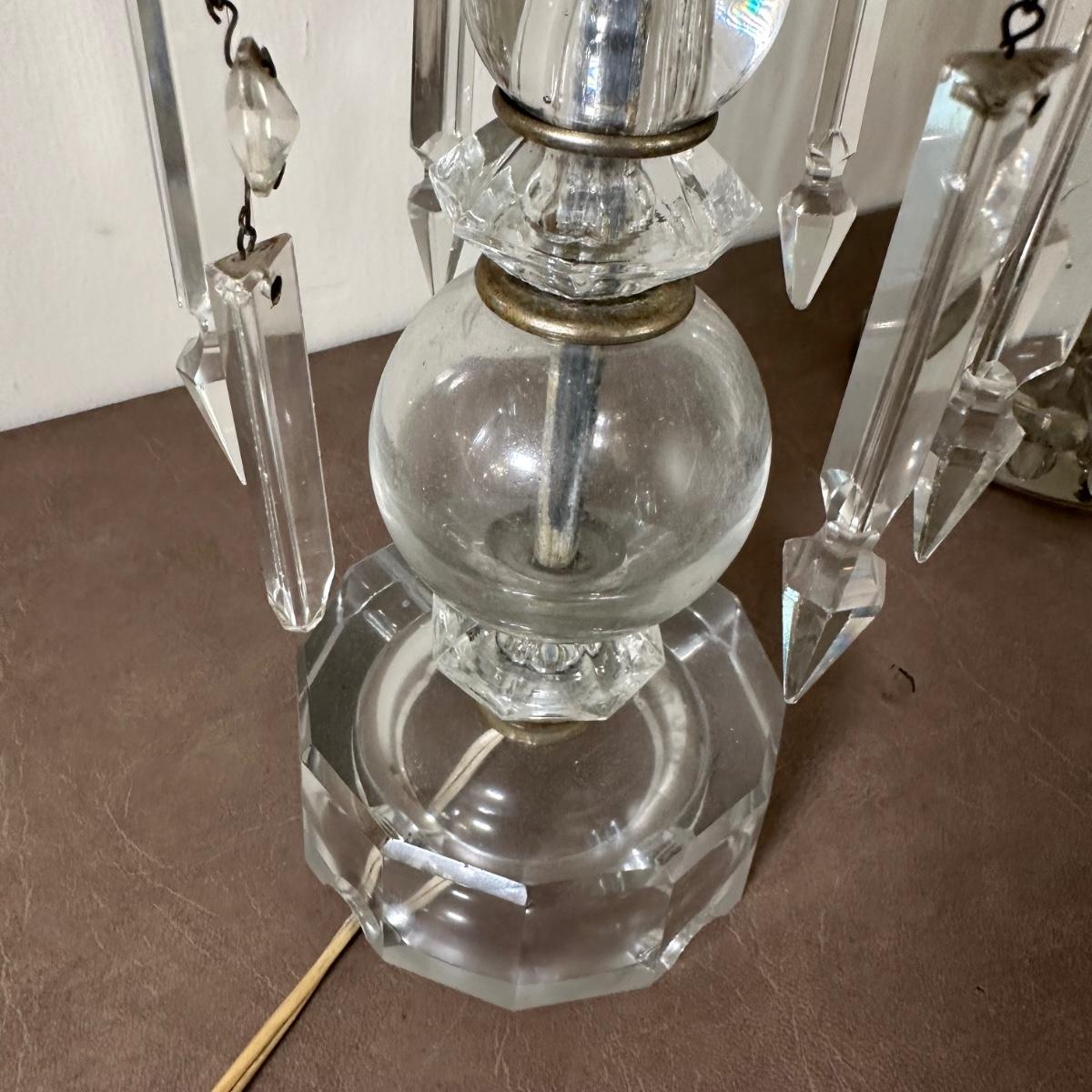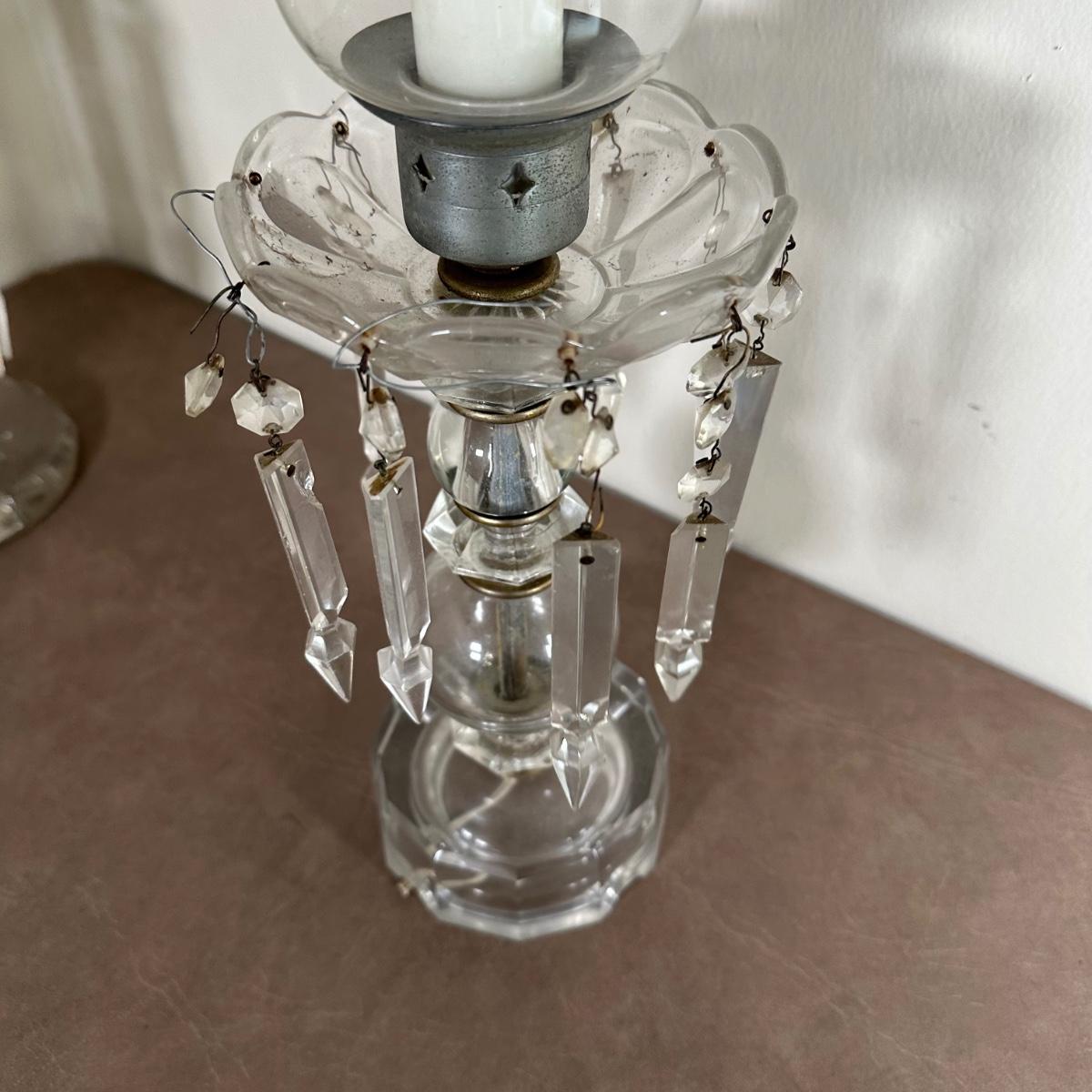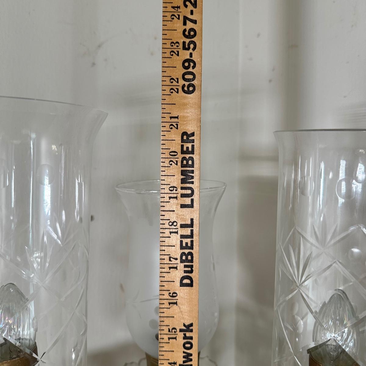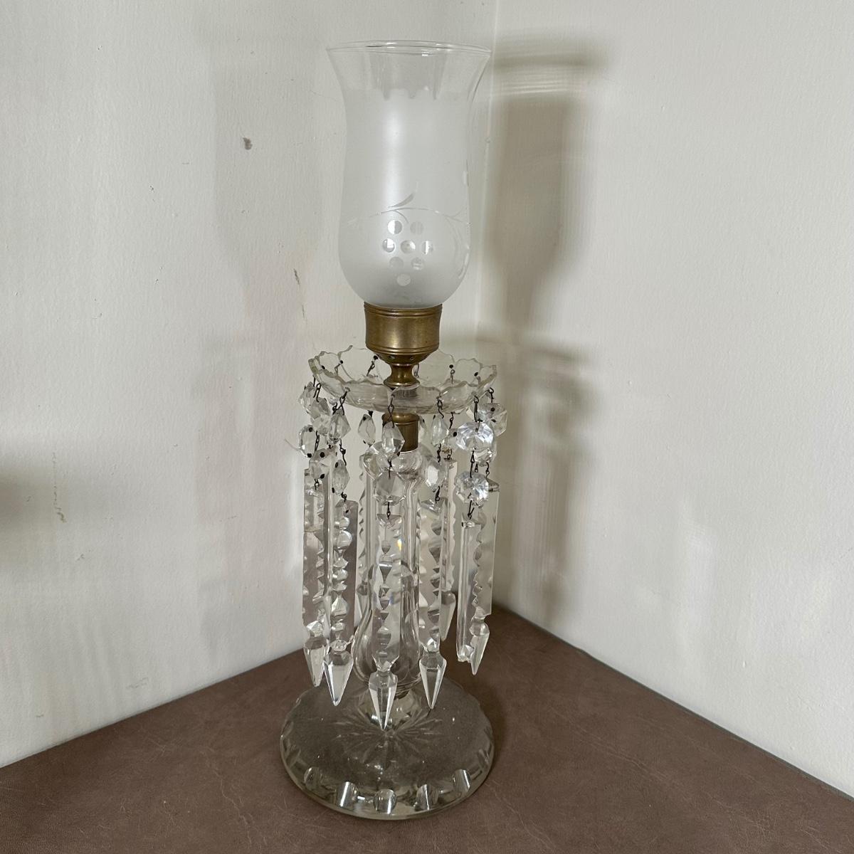 LOT 130L: Vintage Chandelier Etched Glass Table Lamps & Candle Holder