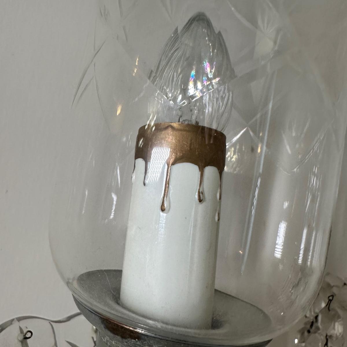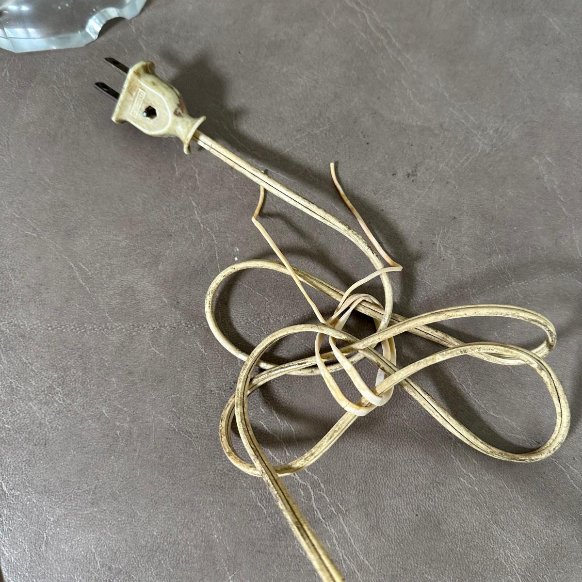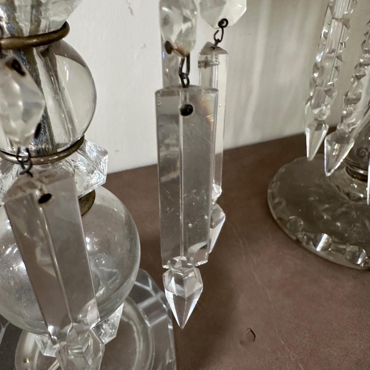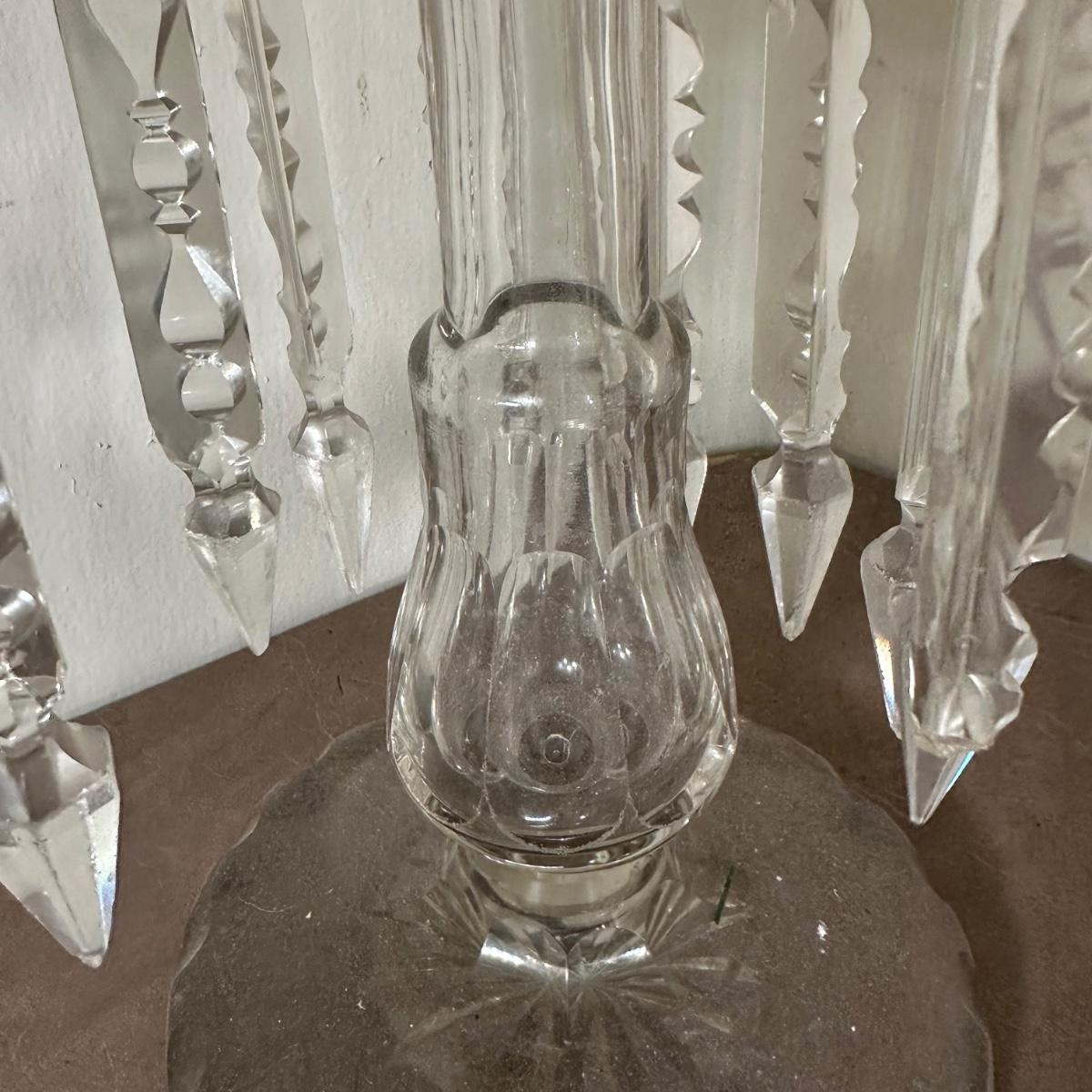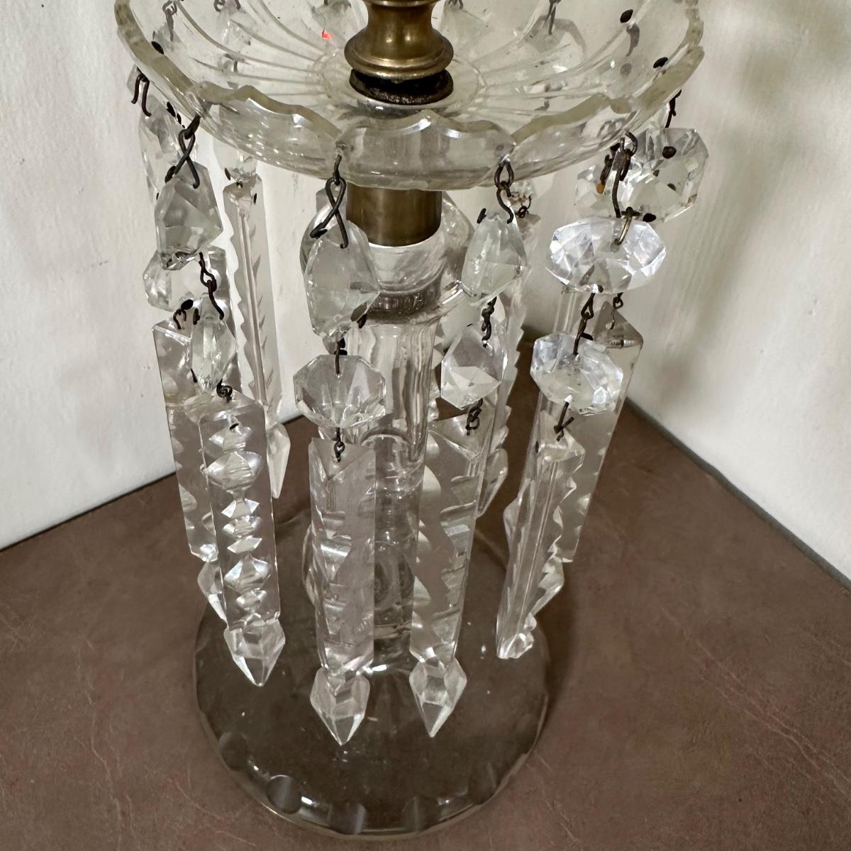 LOT 130L: Vintage Chandelier Etched Glass Table Lamps & Candle Holder