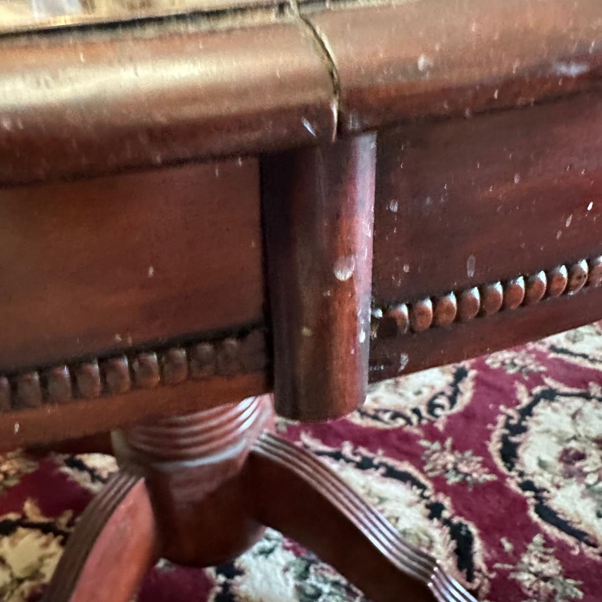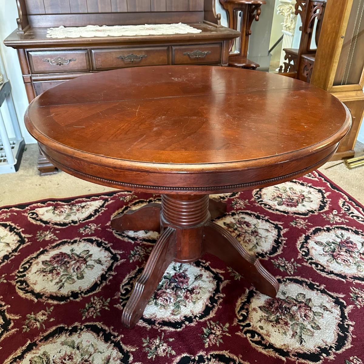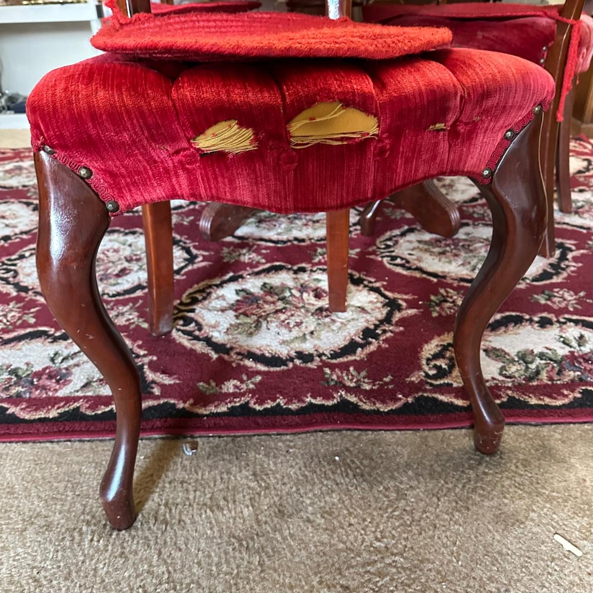 42x42x30 - Condition issues, chairs have tears and table has scratches - Please see all pictures as they are the best representation of the items. The pictures show condition, measurements if taken, and what is included in the lot. Due to the large amount that we photograph and the time frame, we are not always able to take measurements. All items unless noted, are pre-owned and have been used. If you purchased furniture, you must bring help. We do not allow one person to carry large furniture out on their own. Bring help, tools and a truck for the safety of our client’s homes, and your personal safety. Any damages that result to the property including walls, and floors due to moving of the furniture will be charged to the buyer. Company policy. Thank you.