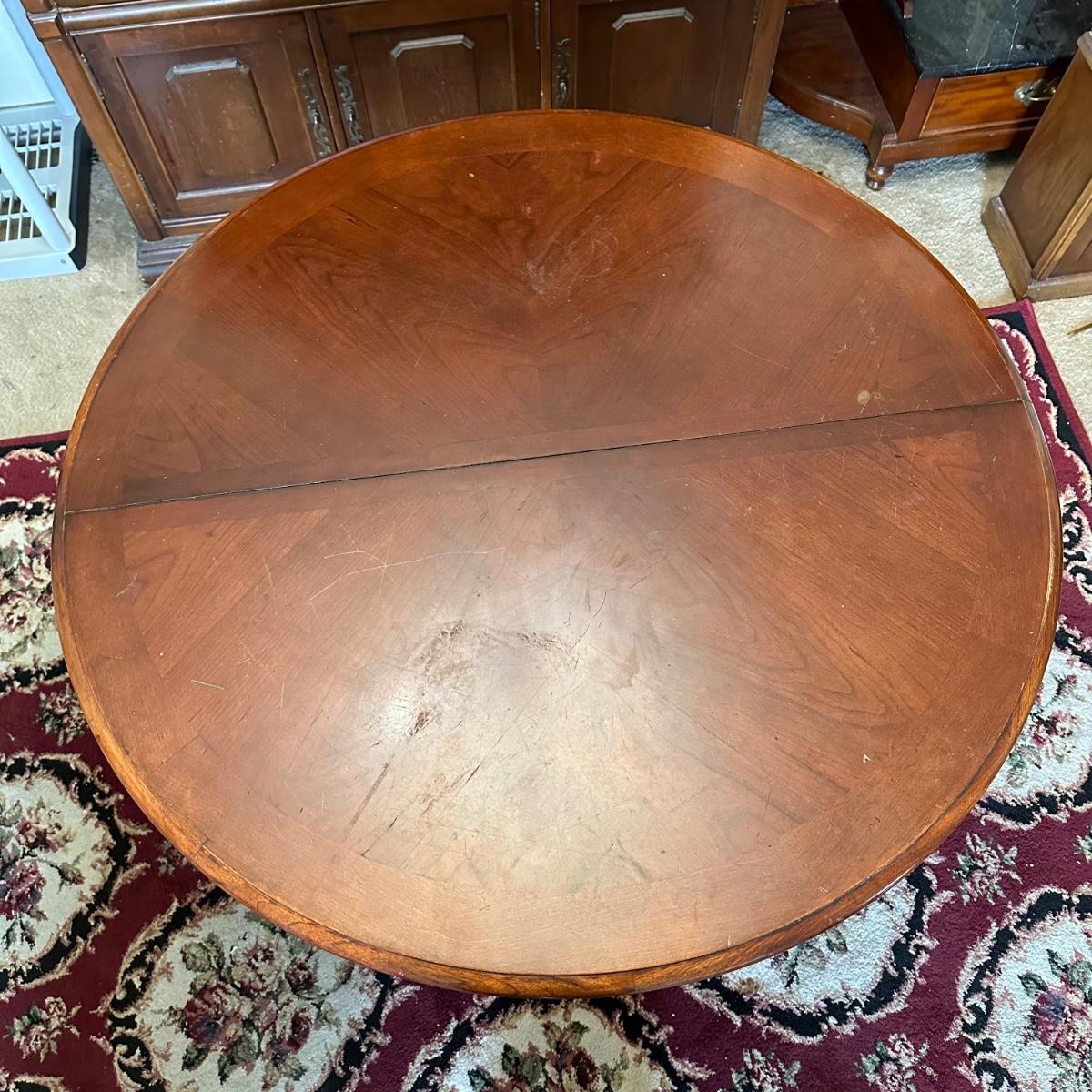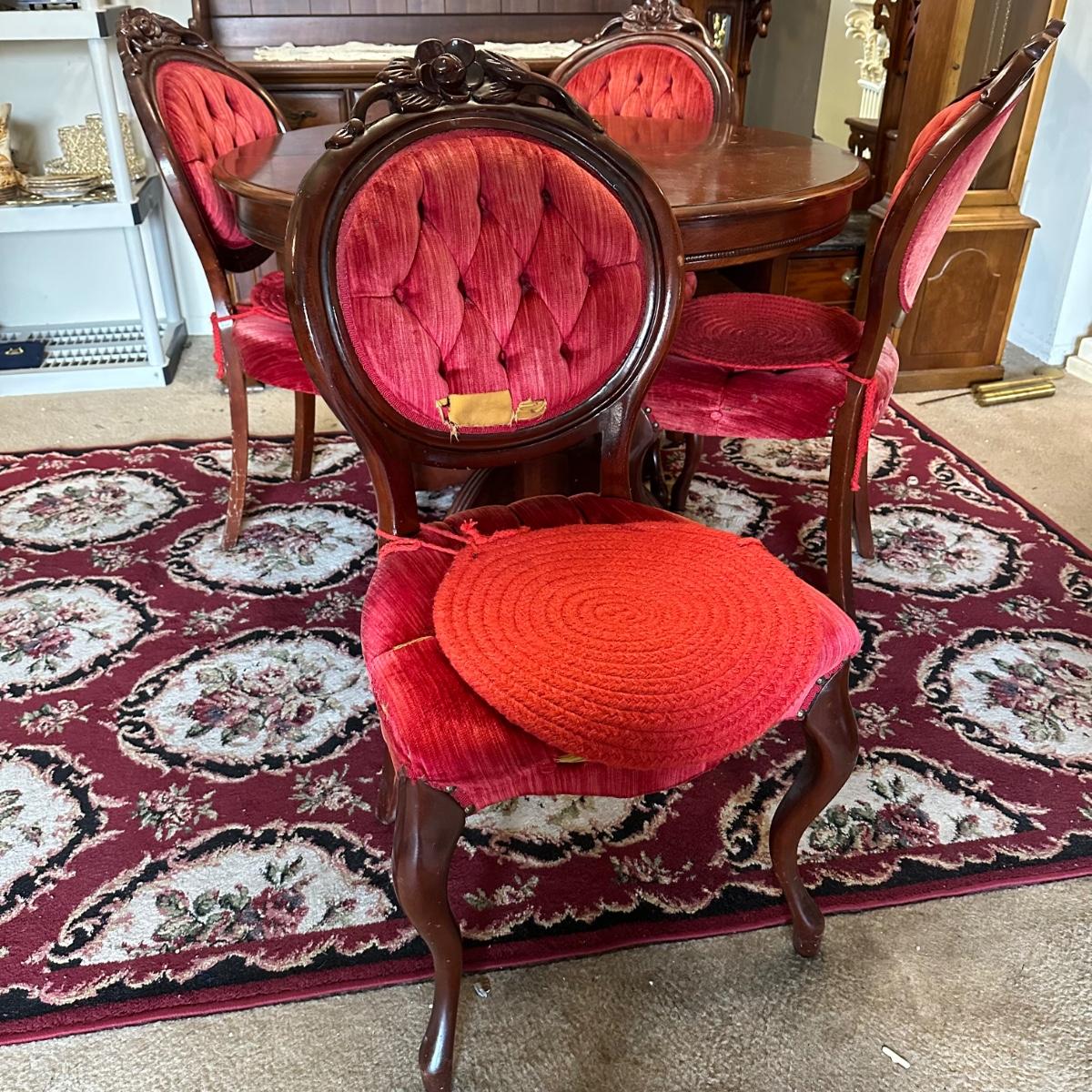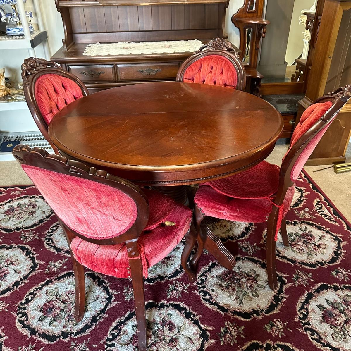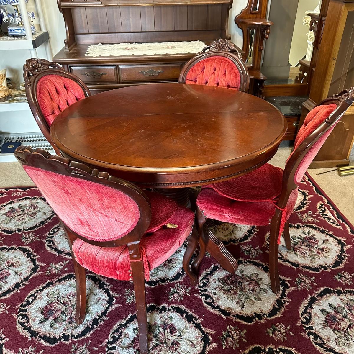 LOT 140L: Round Top Victorian Dining Table w/ Chairs & Leaf