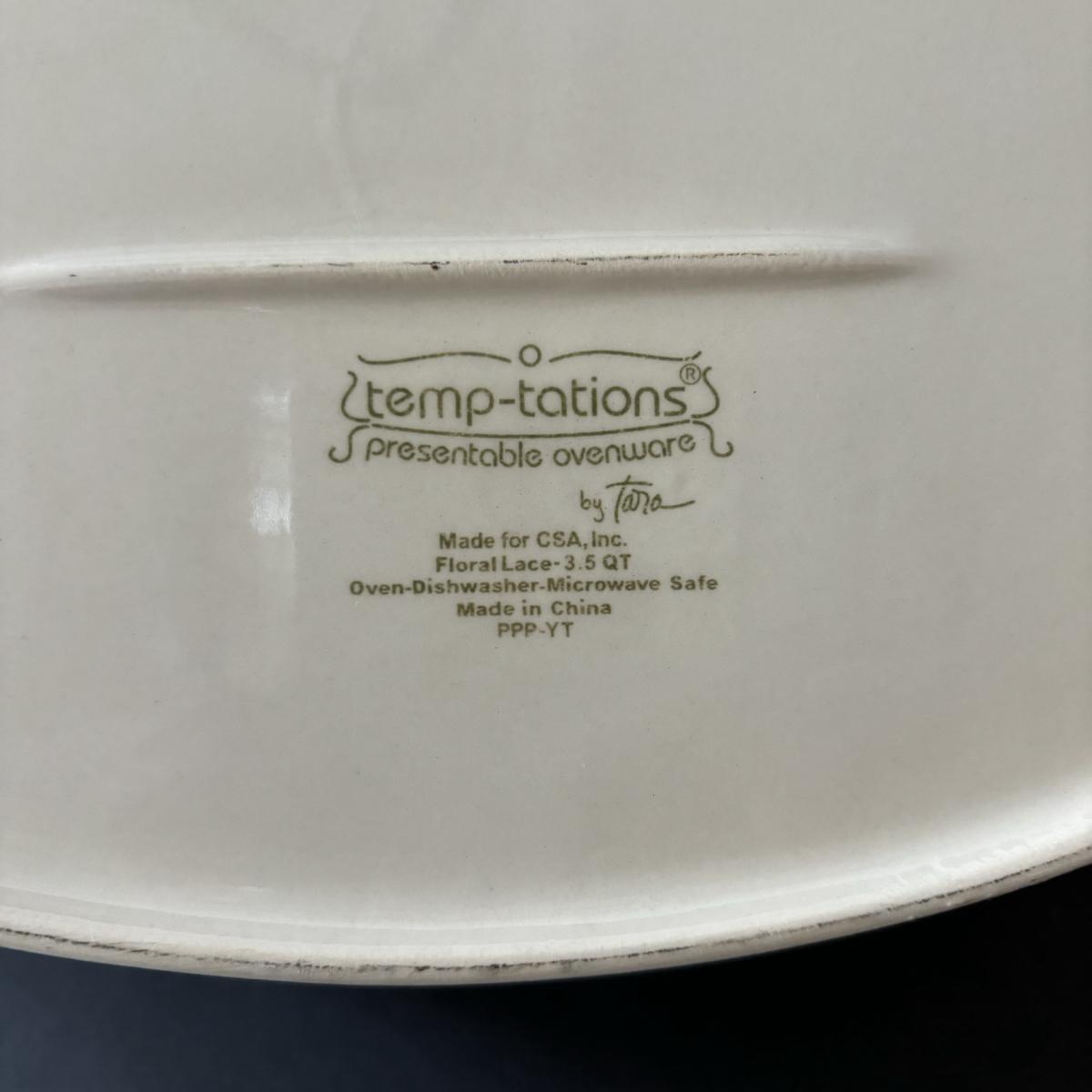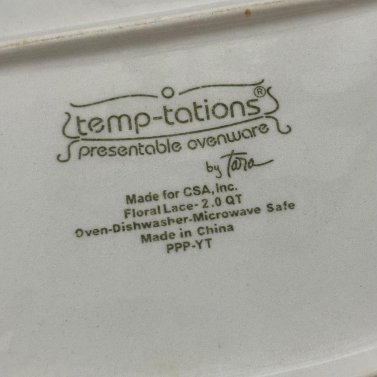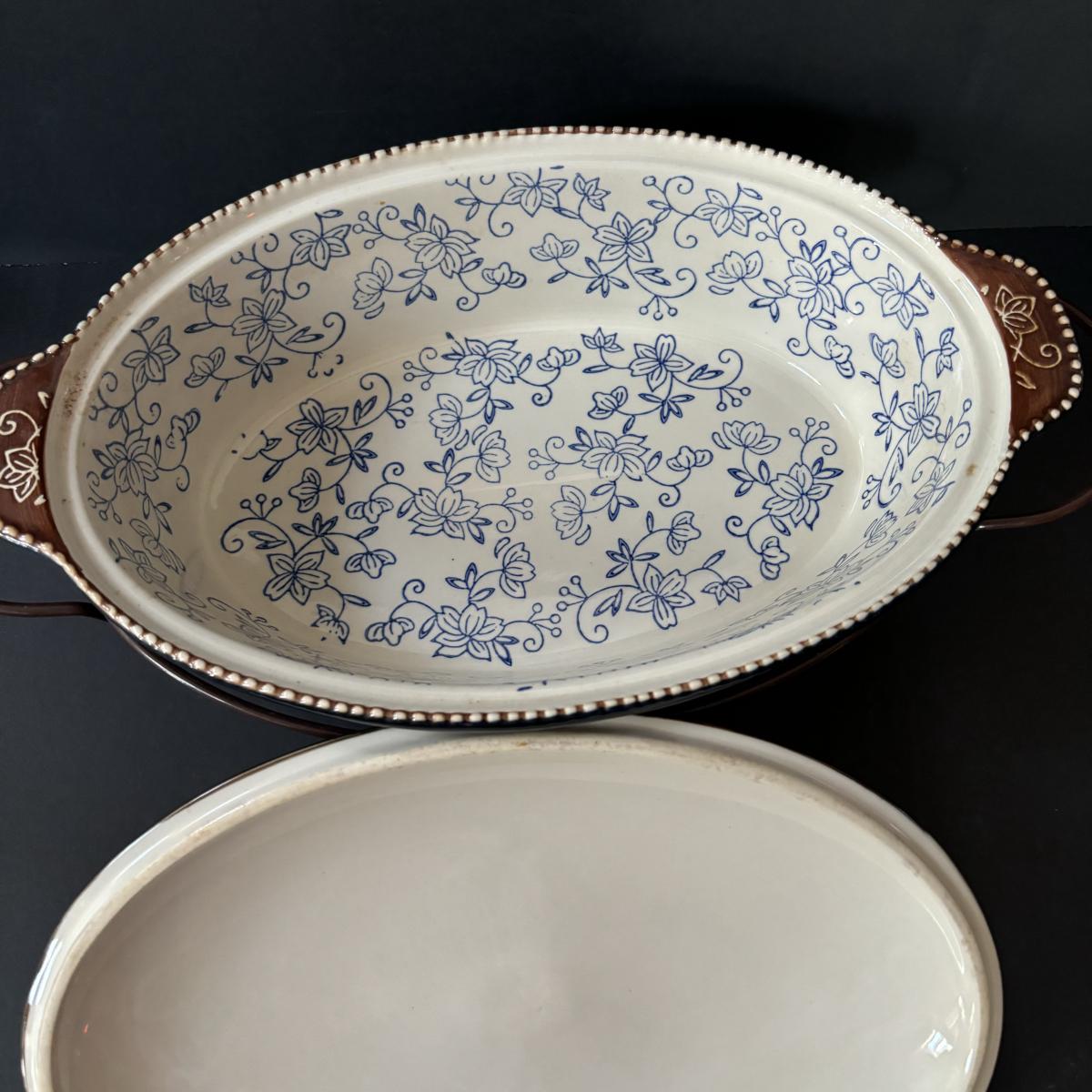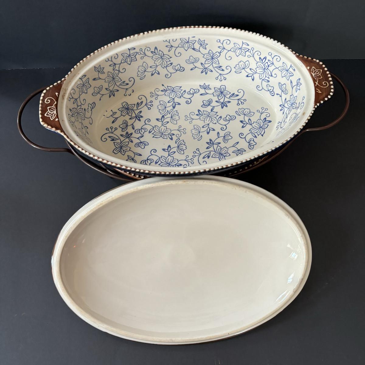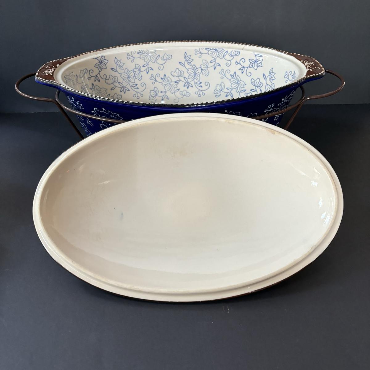 LOT 226: Temp-Tations by Tara Blue Floral Lace Ovenware by Tara 2qt & 3.5qt Casserole Dishes + Stand, Lid & Trivet