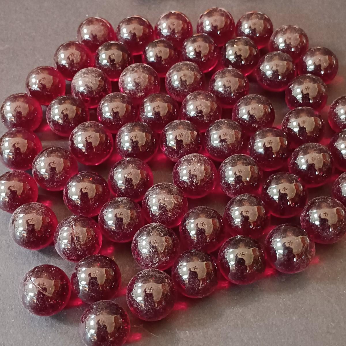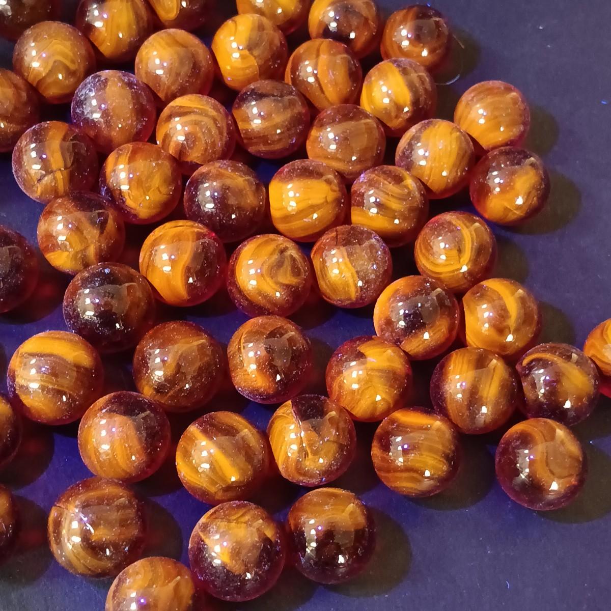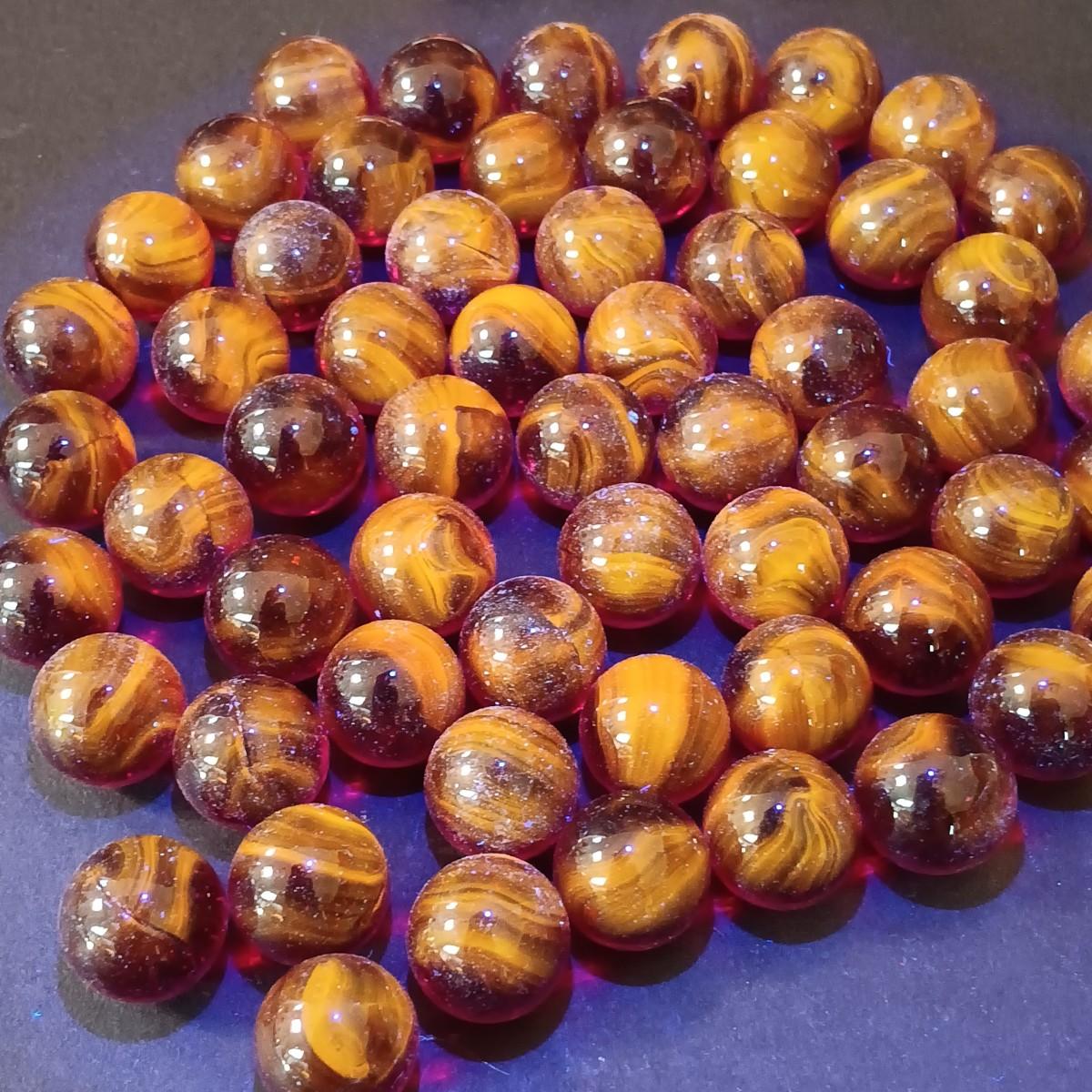 Photos 8 - 10: These marbles are a ruby red, but UV light reveals a brown tigerseye pattern.