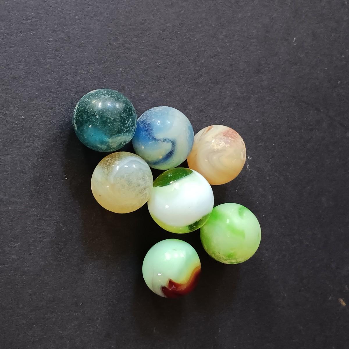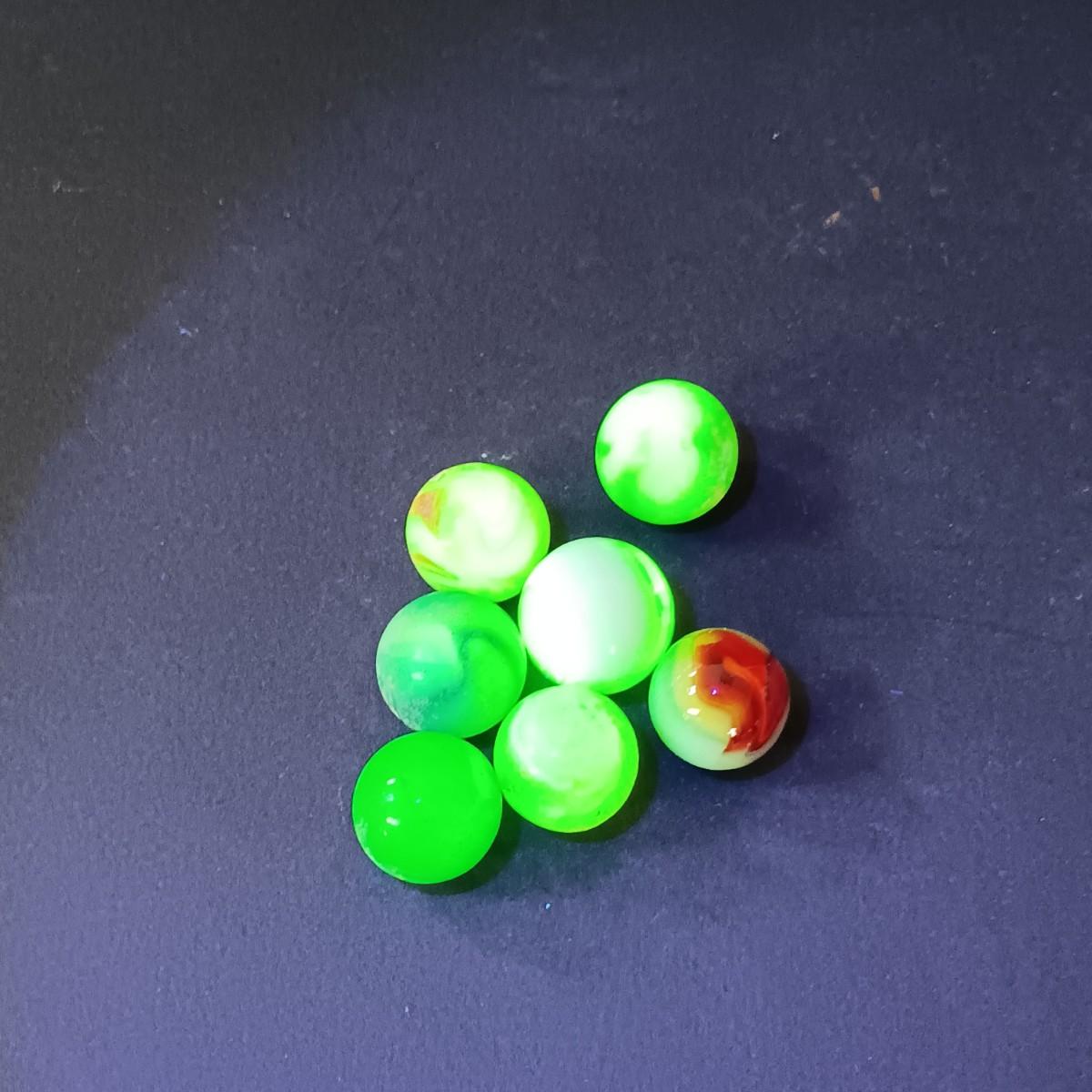 Photos 2 & 3: These 7 Marbles have been determined to be Uranium and Vaseline glass.