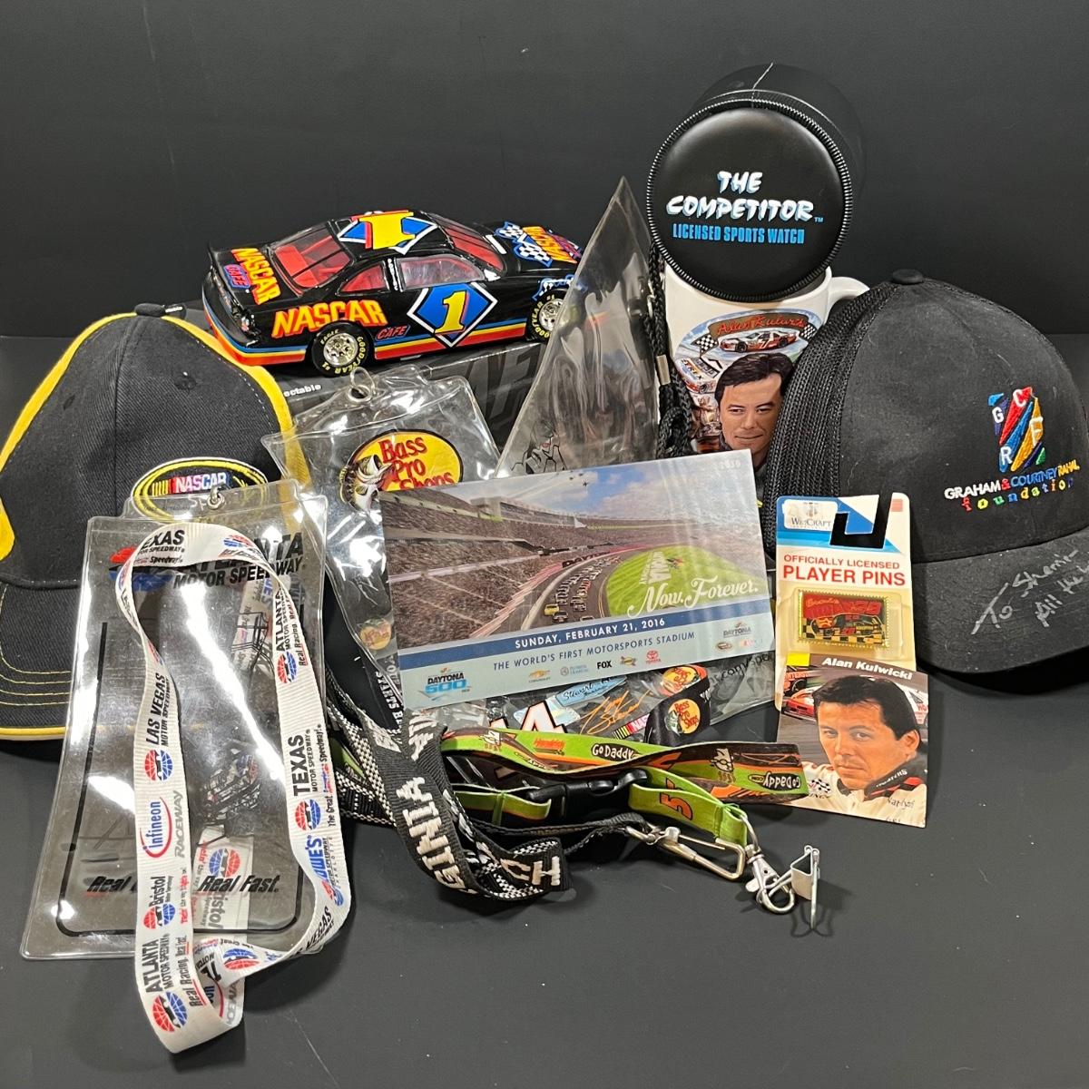 LOT 26L: Vintage Nascar Merchandise - Watch, Lanyards, Alan Kulwicki Card & More