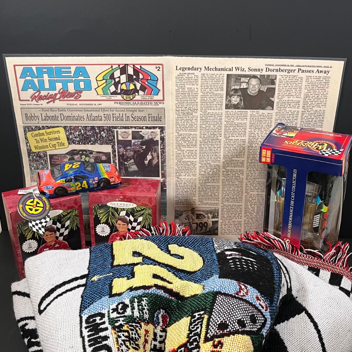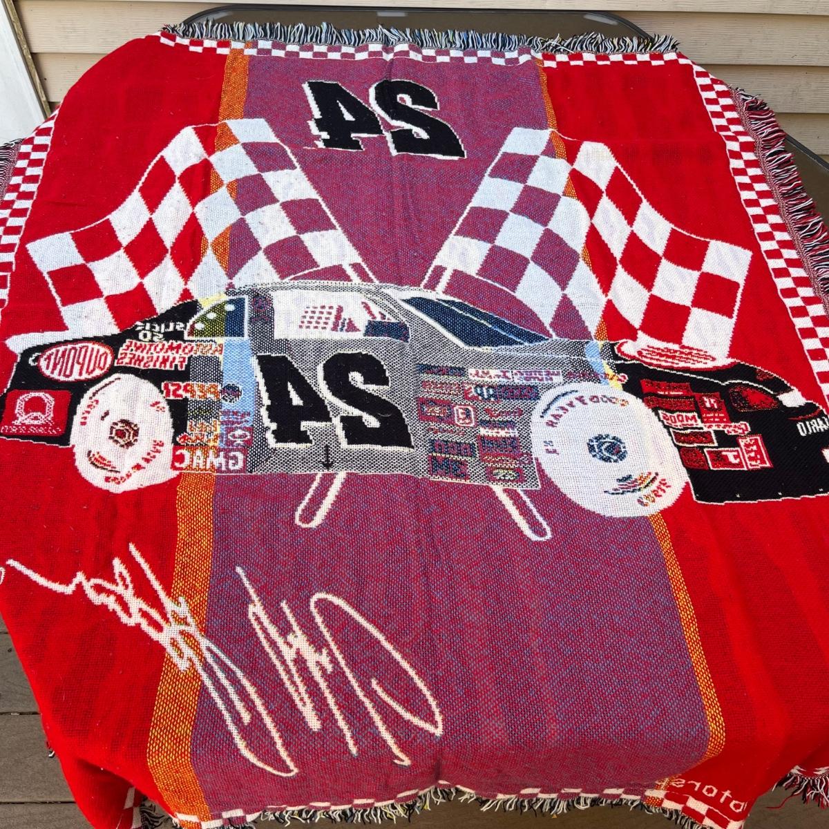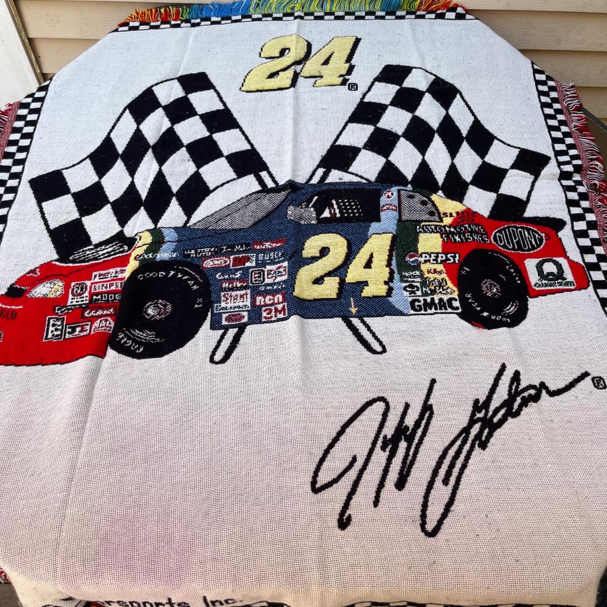 LOT 28L: Vintage Nascar Memorabilia - Jeff Gordon Ornaments, Large Quilt & More