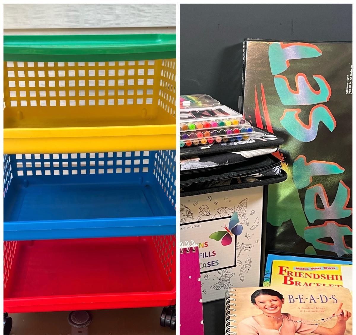 LOT 46L: Kids Arts and Crafts Lot - Colorful Cart, ColorIt Gel Pen. & More