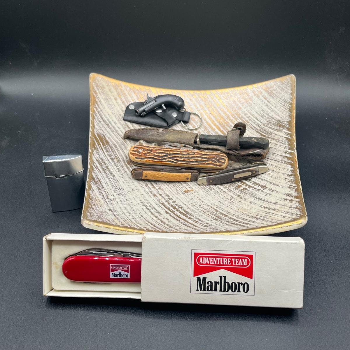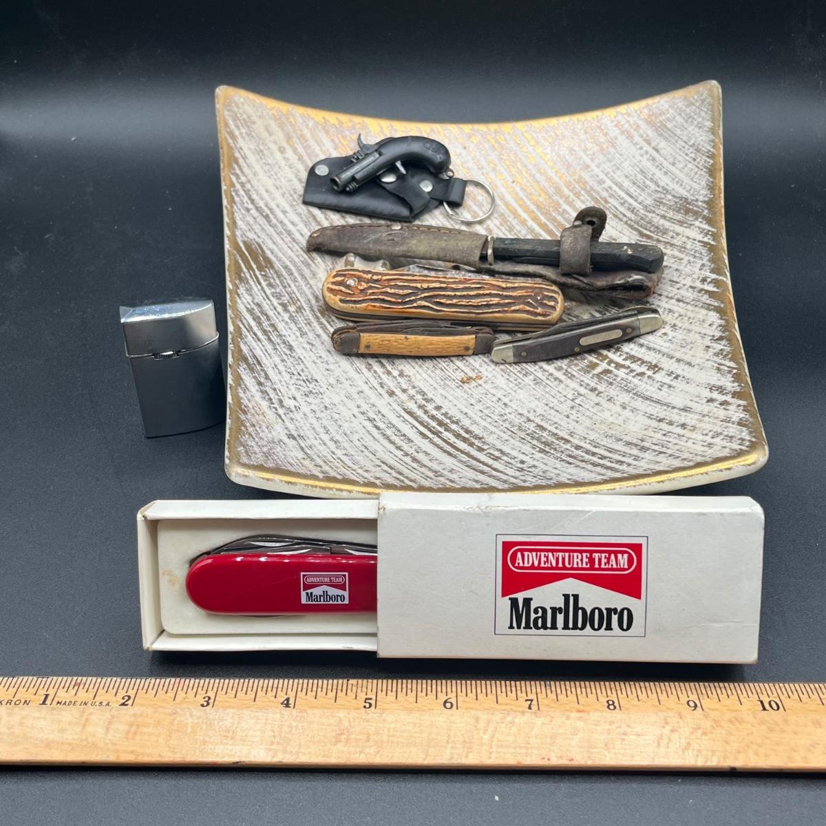 LOT 65L: Vintage Royal Haeger Cigar Ashtray, Swank Lighter, Pocket Knives and More