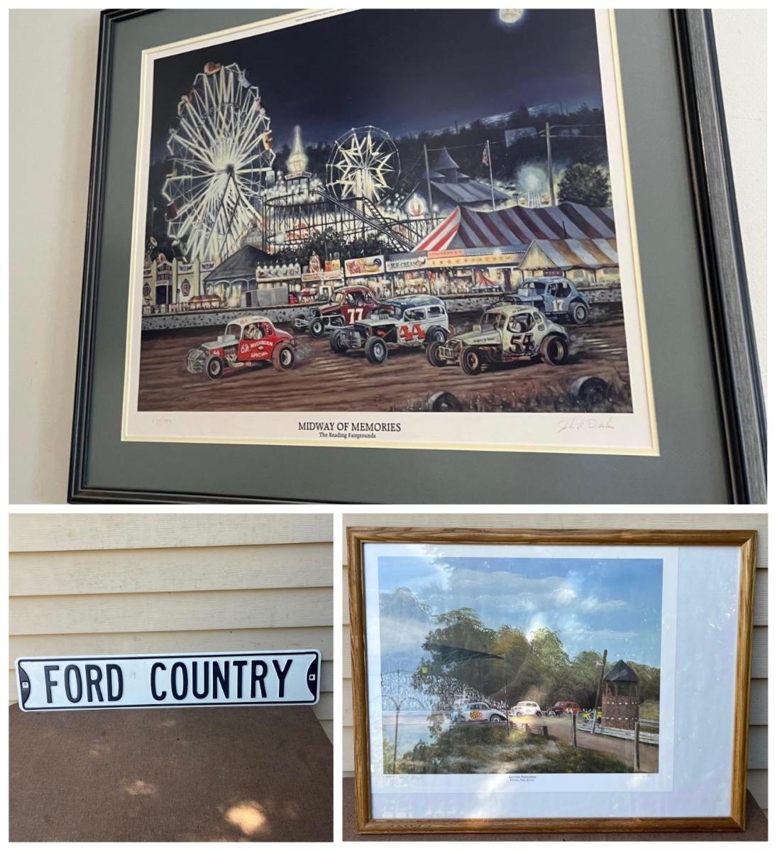 LOT 73L: Automotive / Car Racing Themed Artwork - Alcyon Speedway Print and More