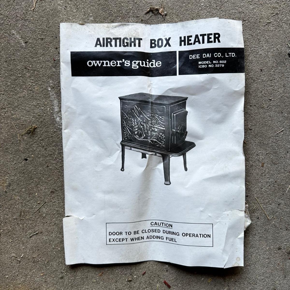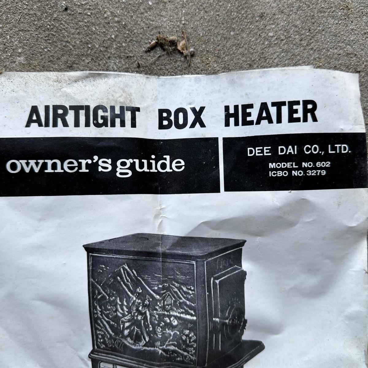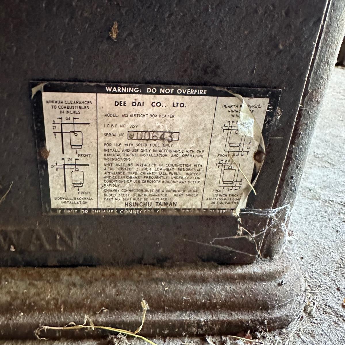 LOT 90S: Dee Dai Co Airtight Box Heater Wood Stove Model 602
