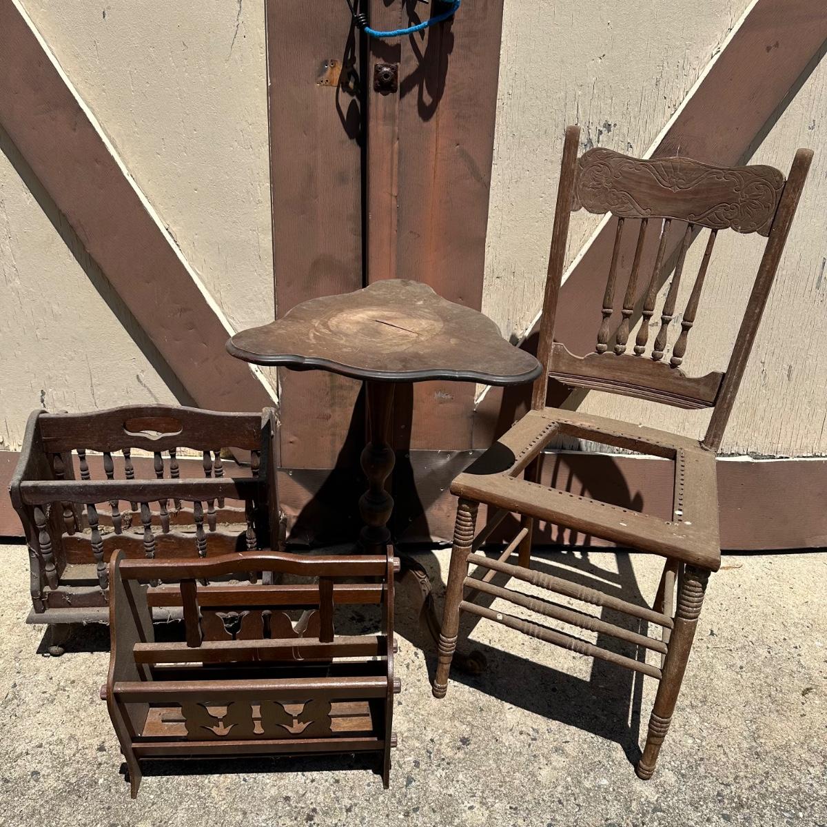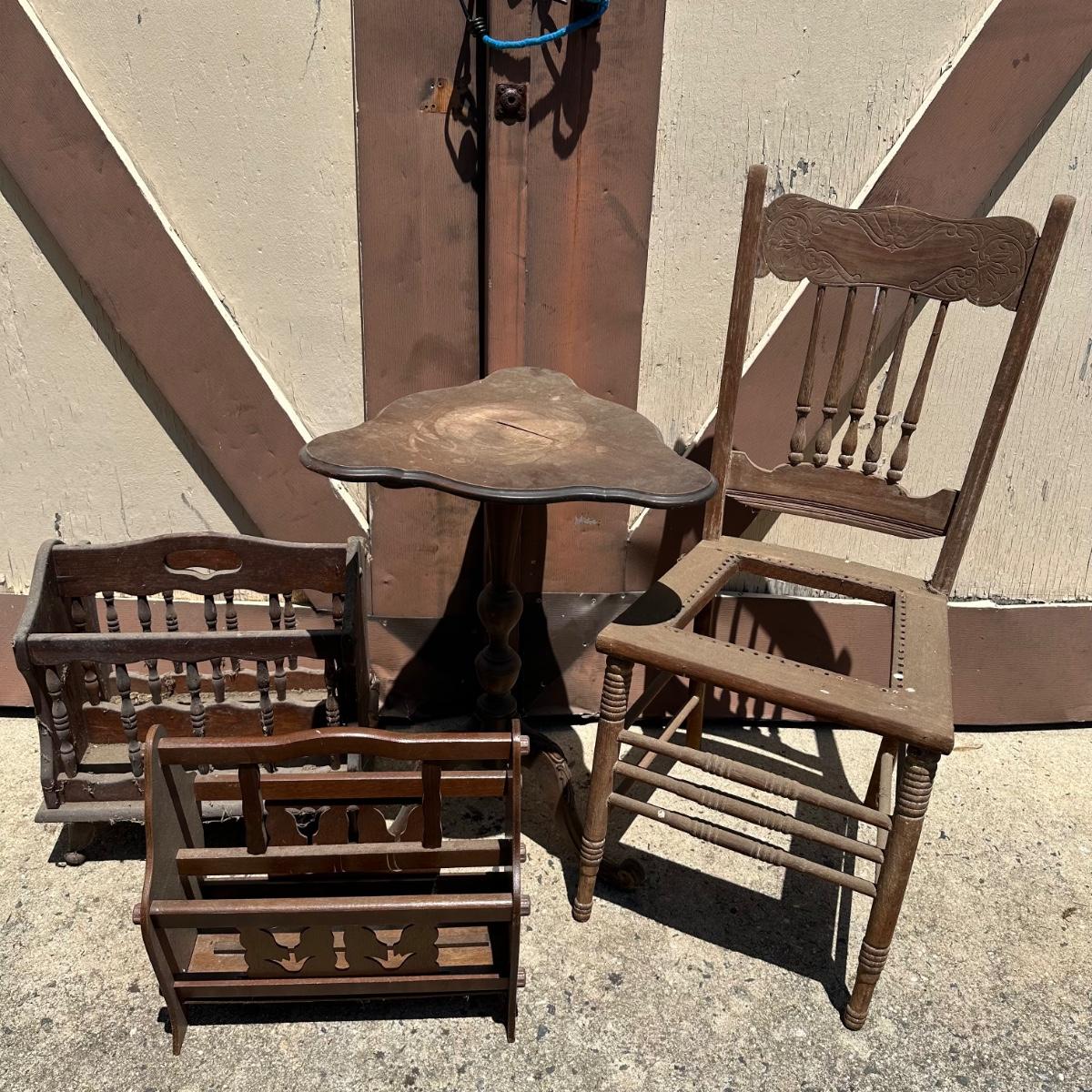 LOT 96S: Vintage Wooden Chair, Table & Magazine Racks