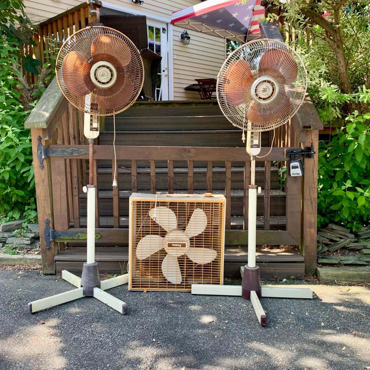 LOT 121 S: Pair of Robeson Adjustable Oscillating Stand Fans & Galaxy Box Fan
