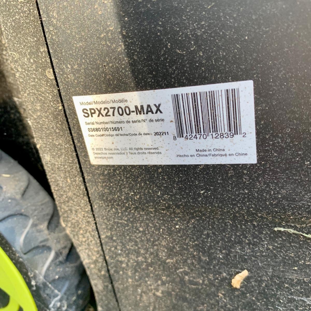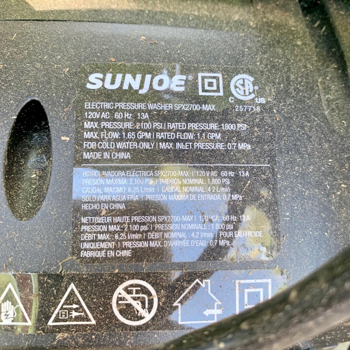 LOT 130 S: Sunjoe Electric Pressure Washer w/ Brush Attachment Model #SPX2700-MAX