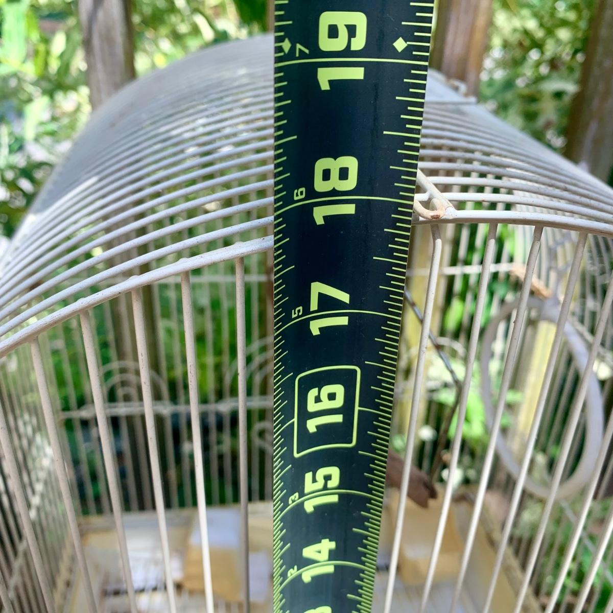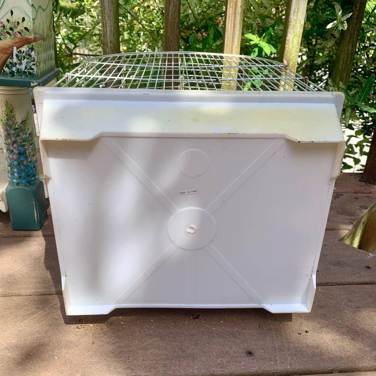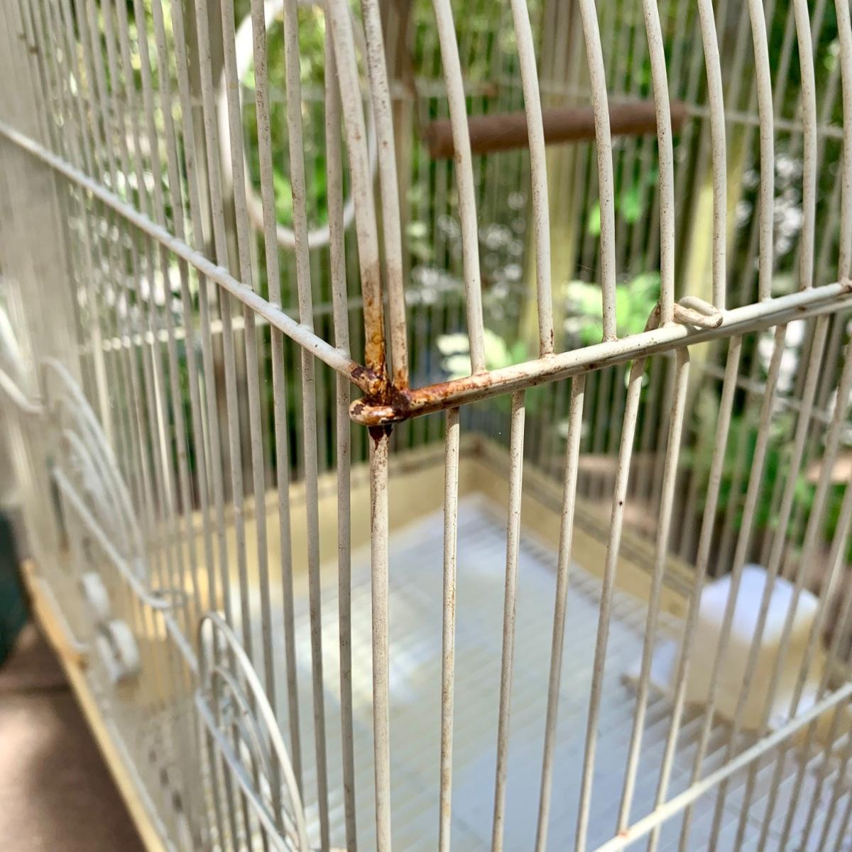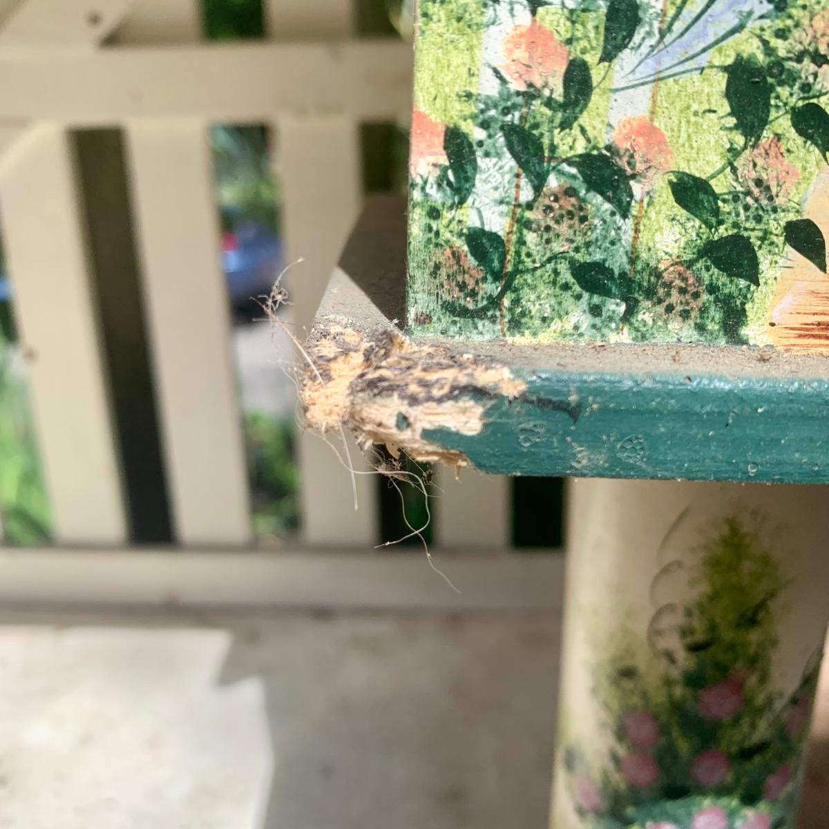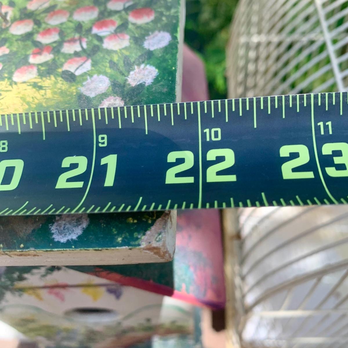 LOT 162 O: Hand Painted Wooden Bird House Side Table, Bird Cage, & Hanging Metal Bird Feeder