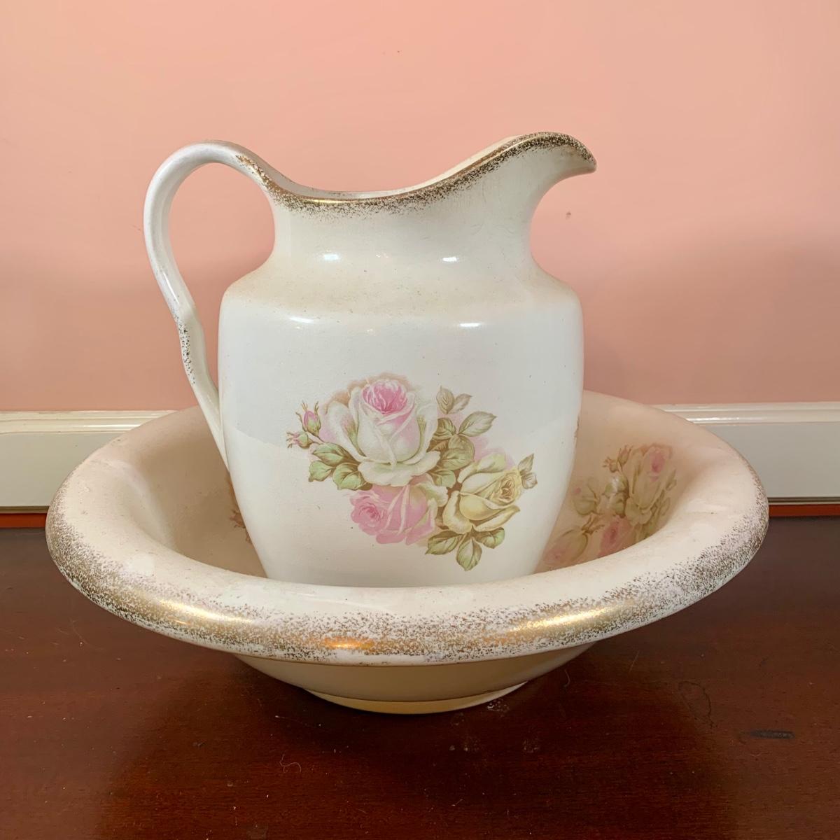 LOT 174 D: Vintage Buffalo Pottery Floral Pitcher & Wash Basin