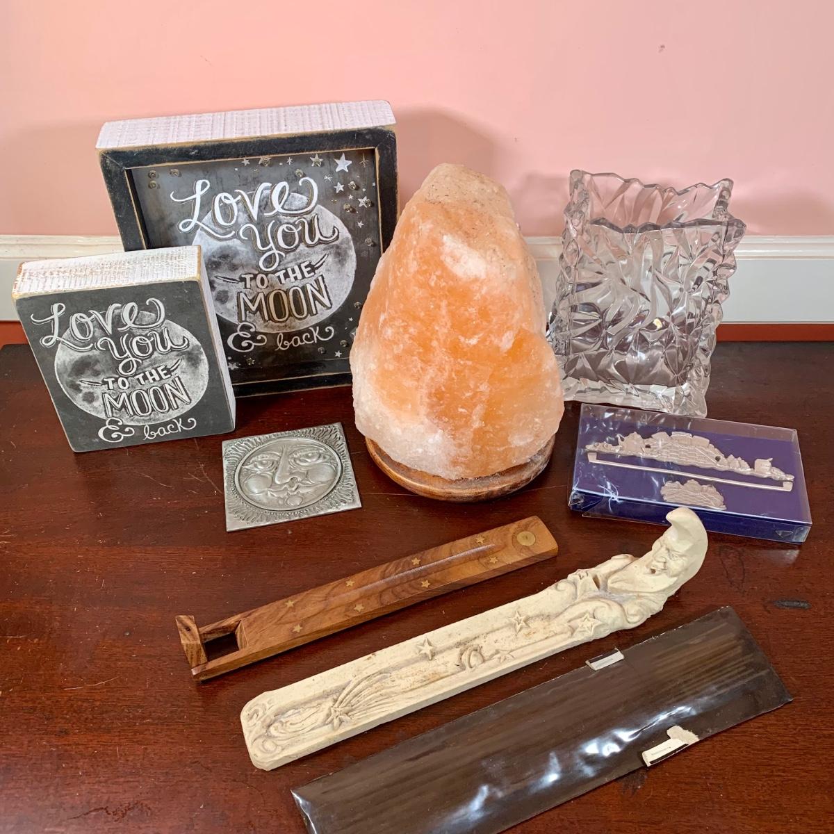 LOT 175 D: Good Vibes Collection: Salt Rock Lamp, Primitives by Kathy LED Chalk Sign, German Studio-linie Rosenthal Glass Rectangular Crystal Vase & More