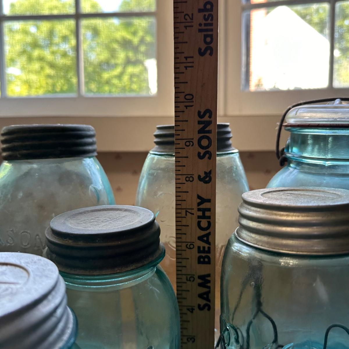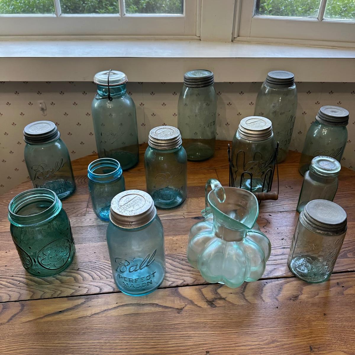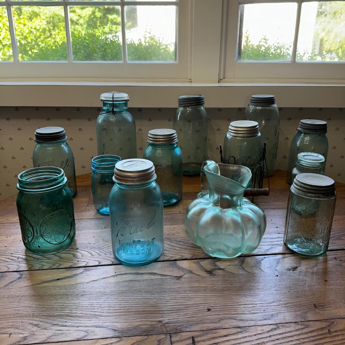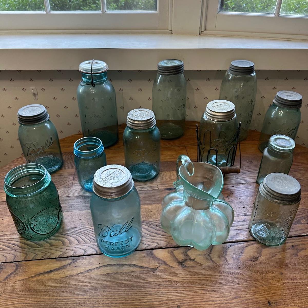 LOT 208D: Collection Of Vintage Blue Glass Mason Jars & More