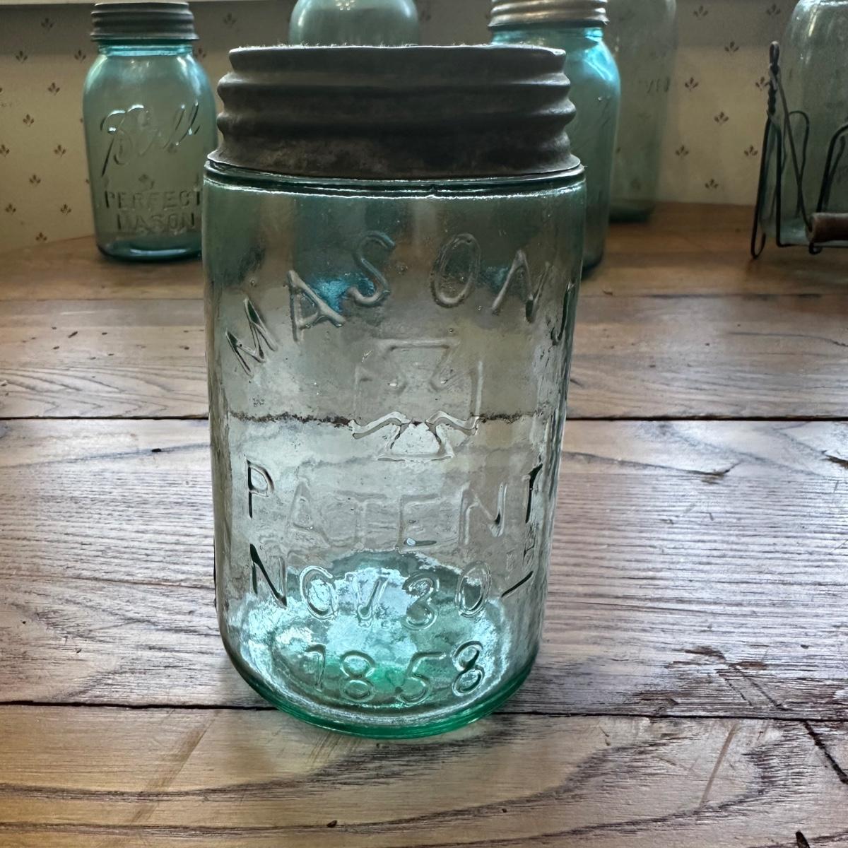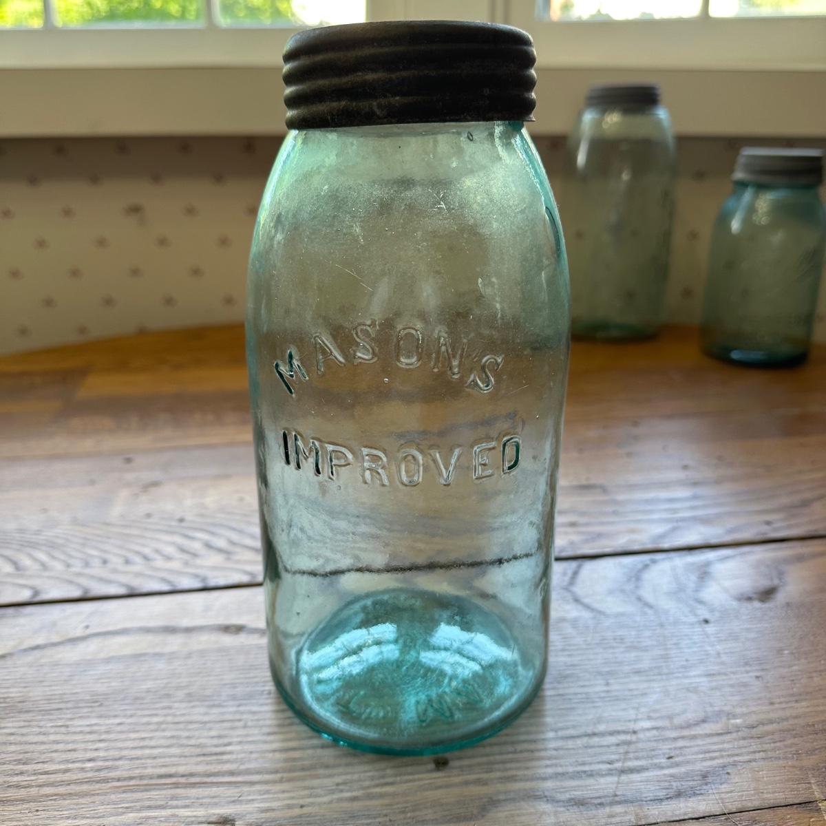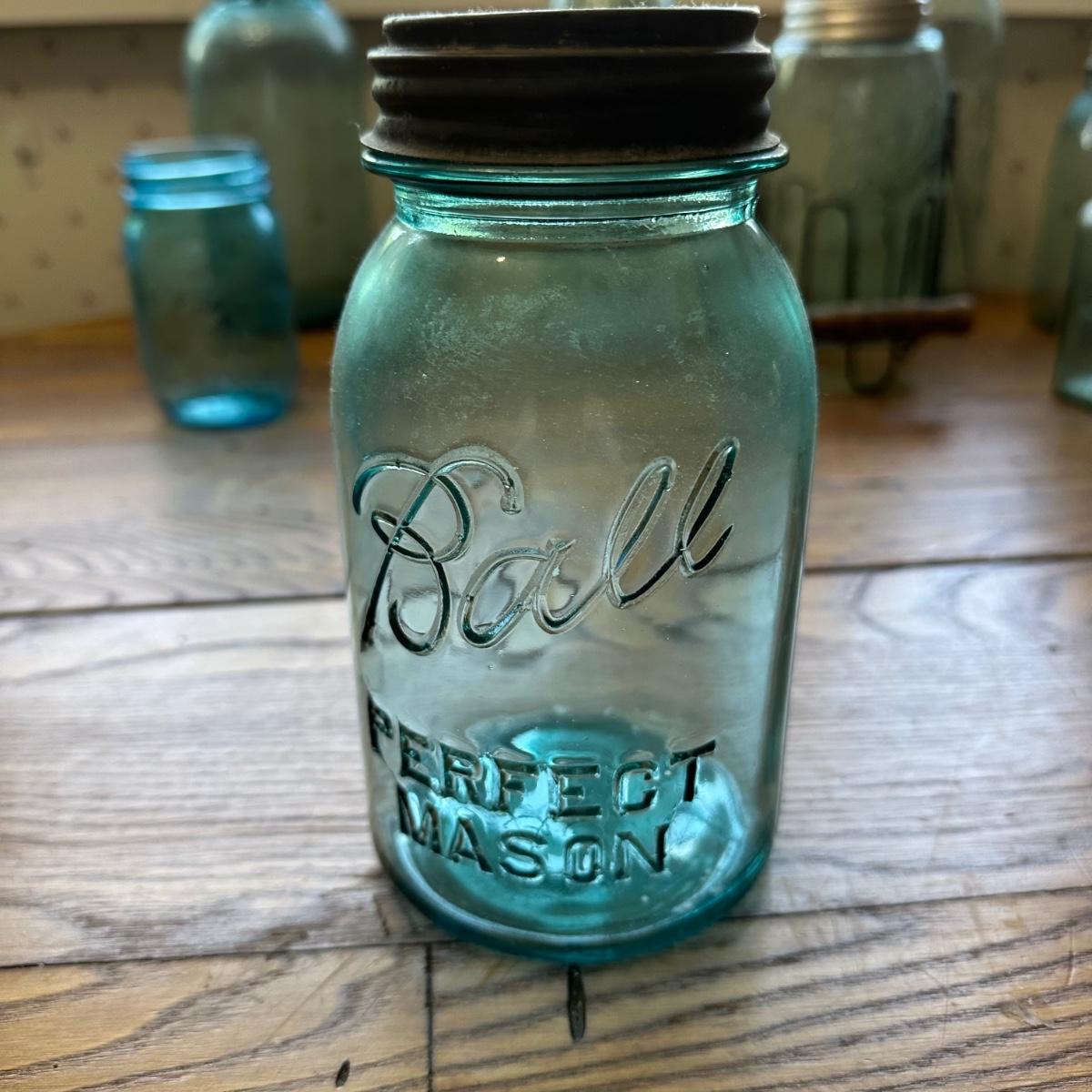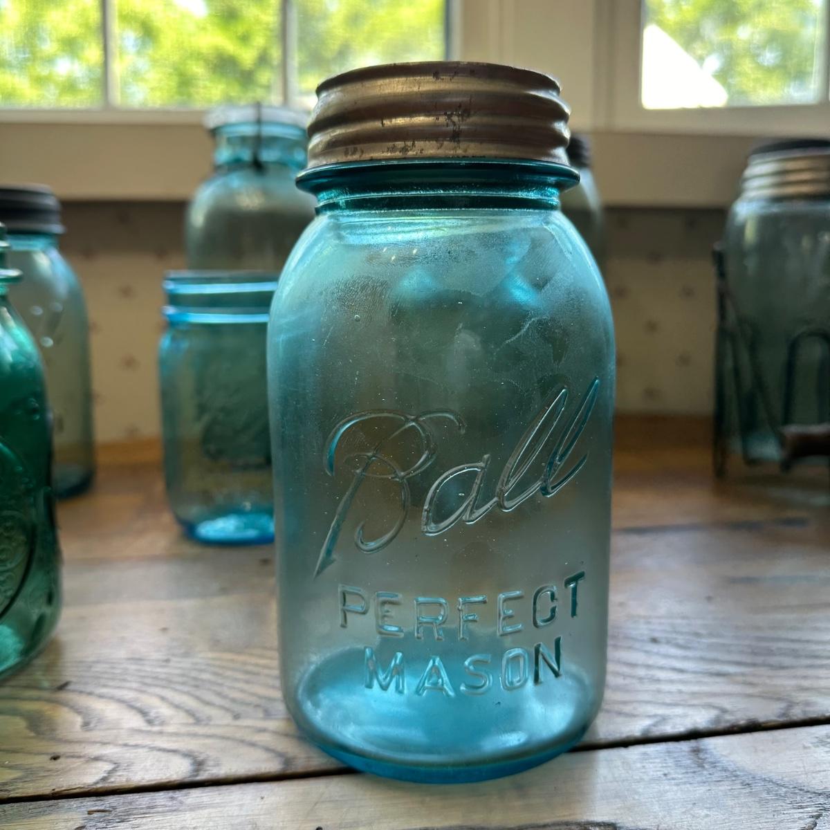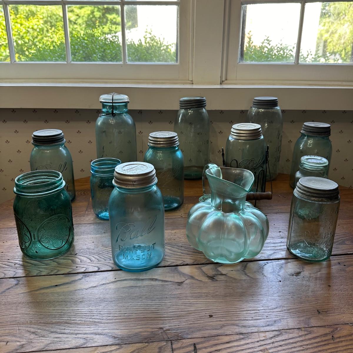 LOT 208D: Collection Of Vintage Blue Glass Mason Jars & More