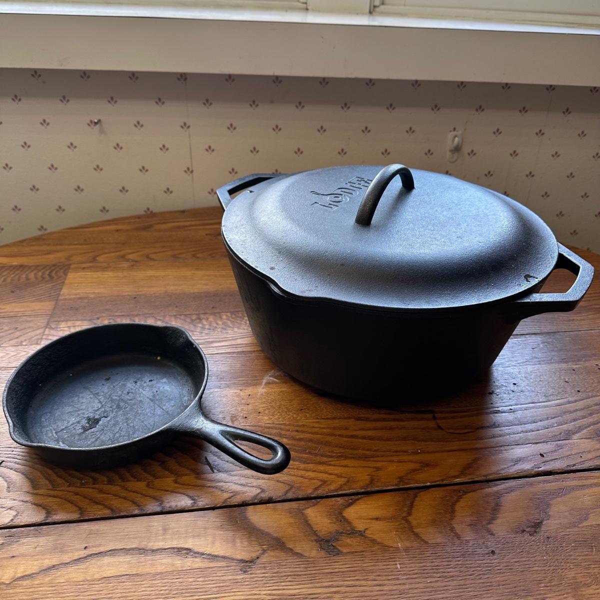 LOT 214D: Lodge USA Cast Iron 7 Quart Dutch Oven & More