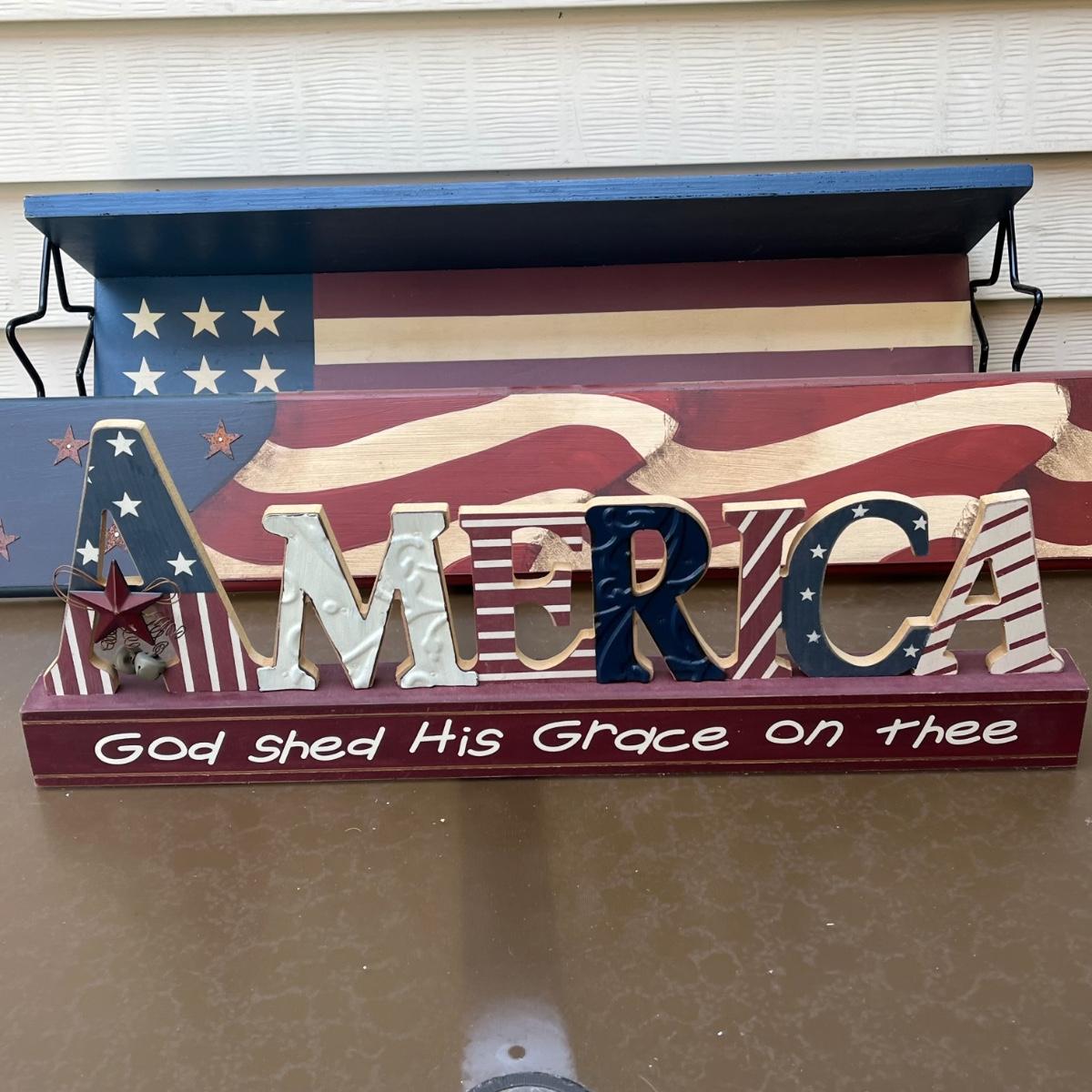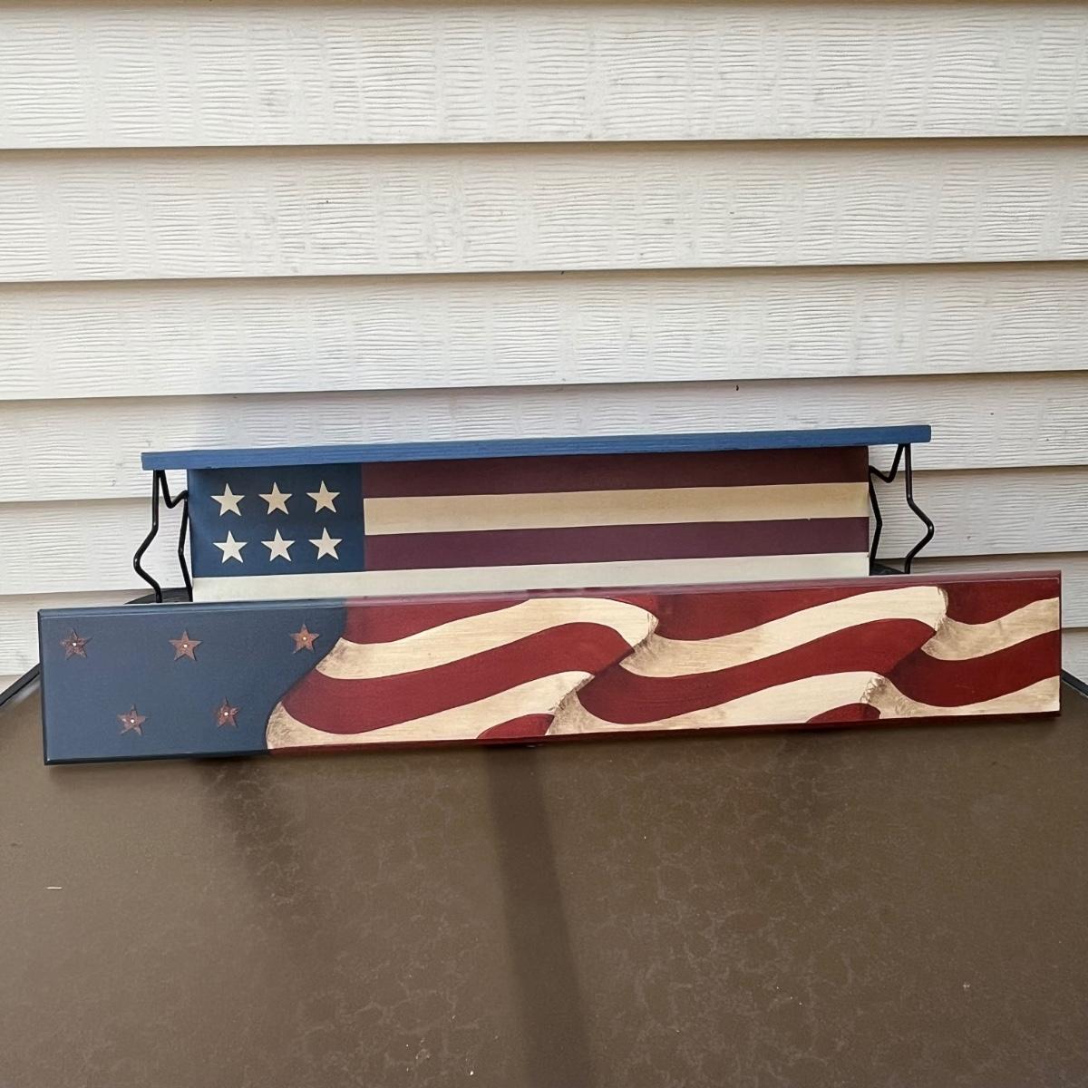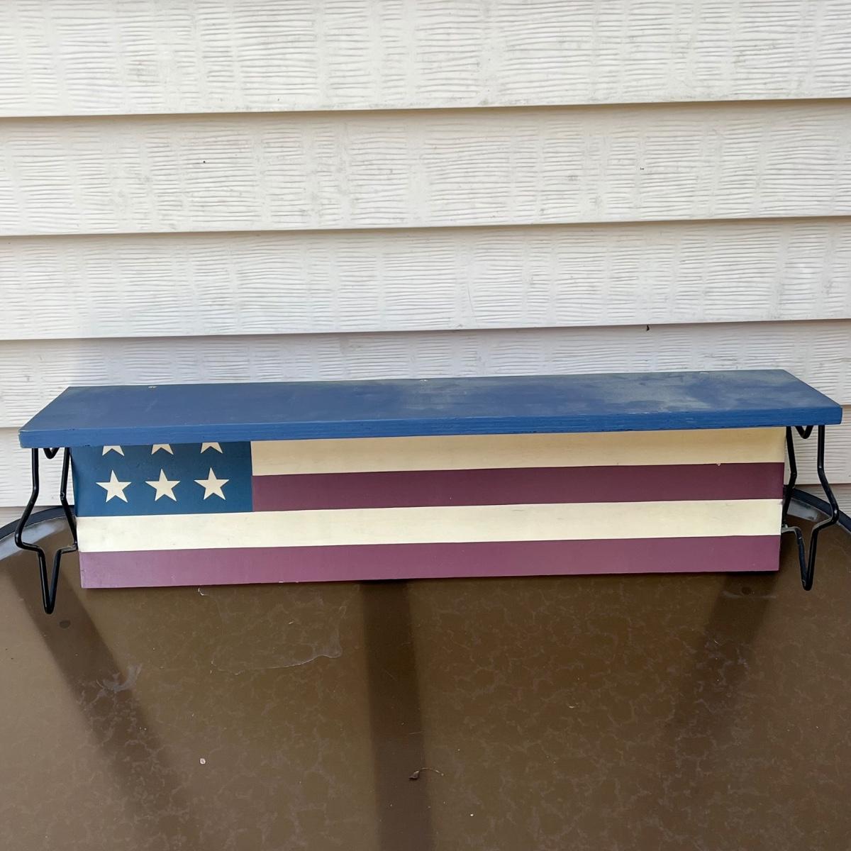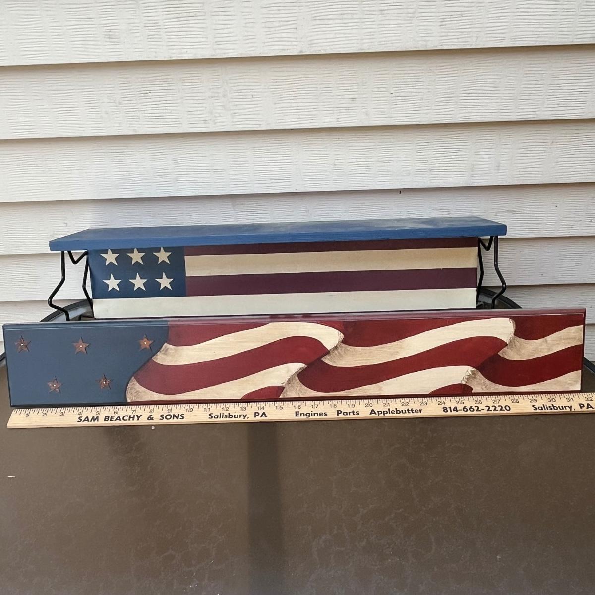 LOT 242L: Patriotic Home Decor - Wall Shelf, Longaberger Flag and More