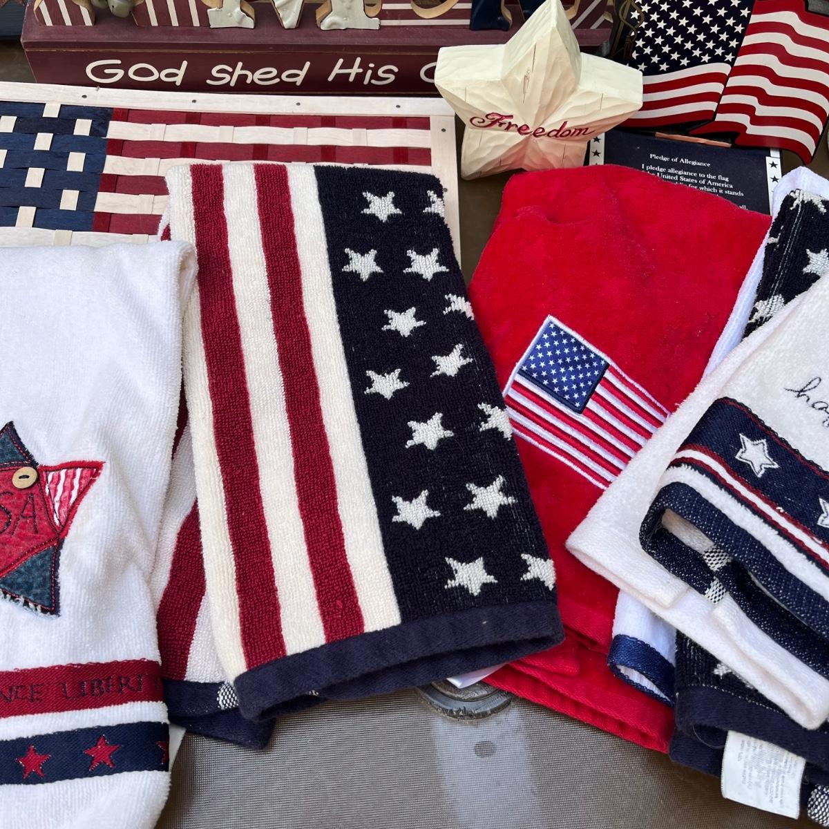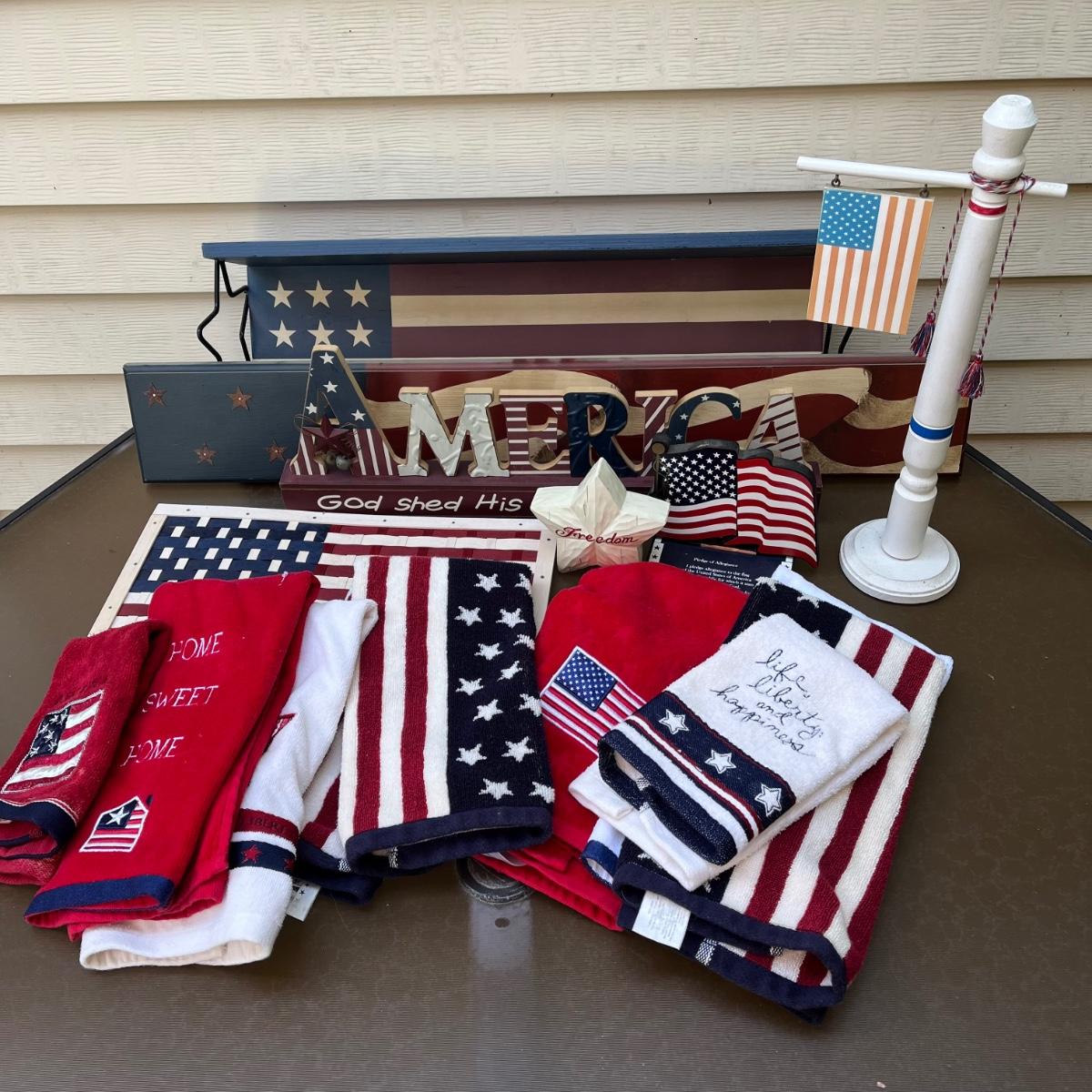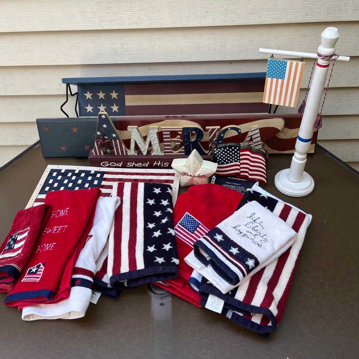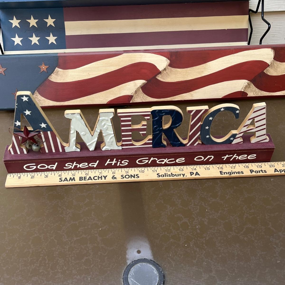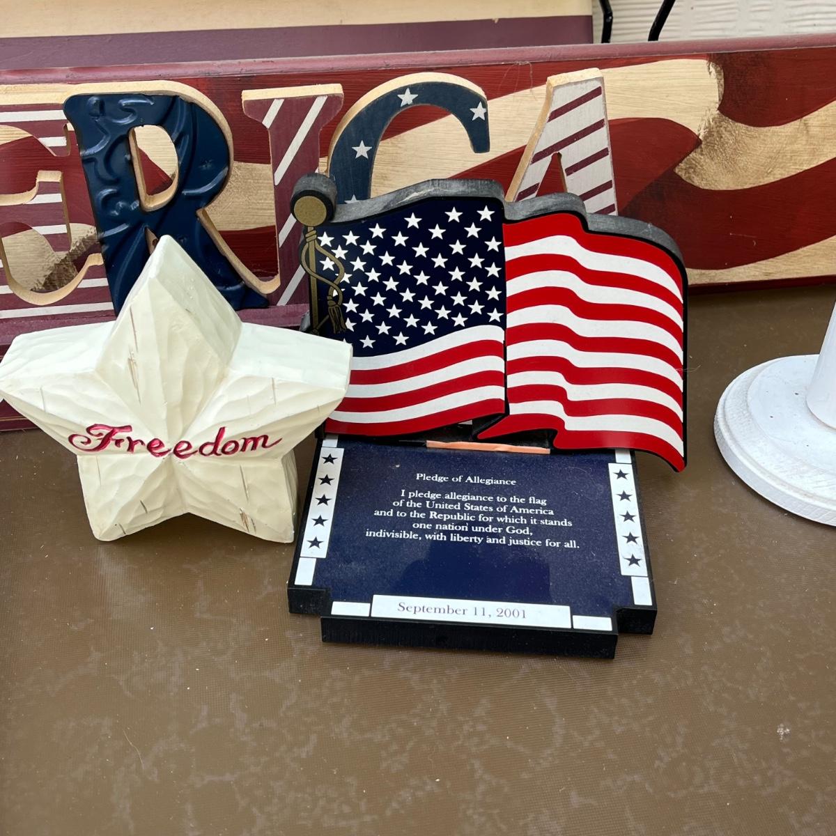 LOT 242L: Patriotic Home Decor - Wall Shelf, Longaberger Flag and More