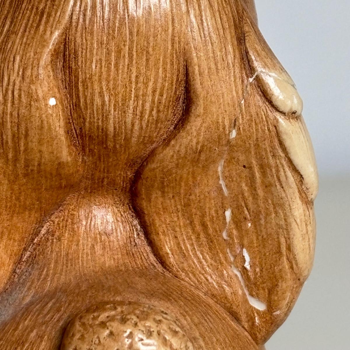 "Barney" bunny has a repaired ear.