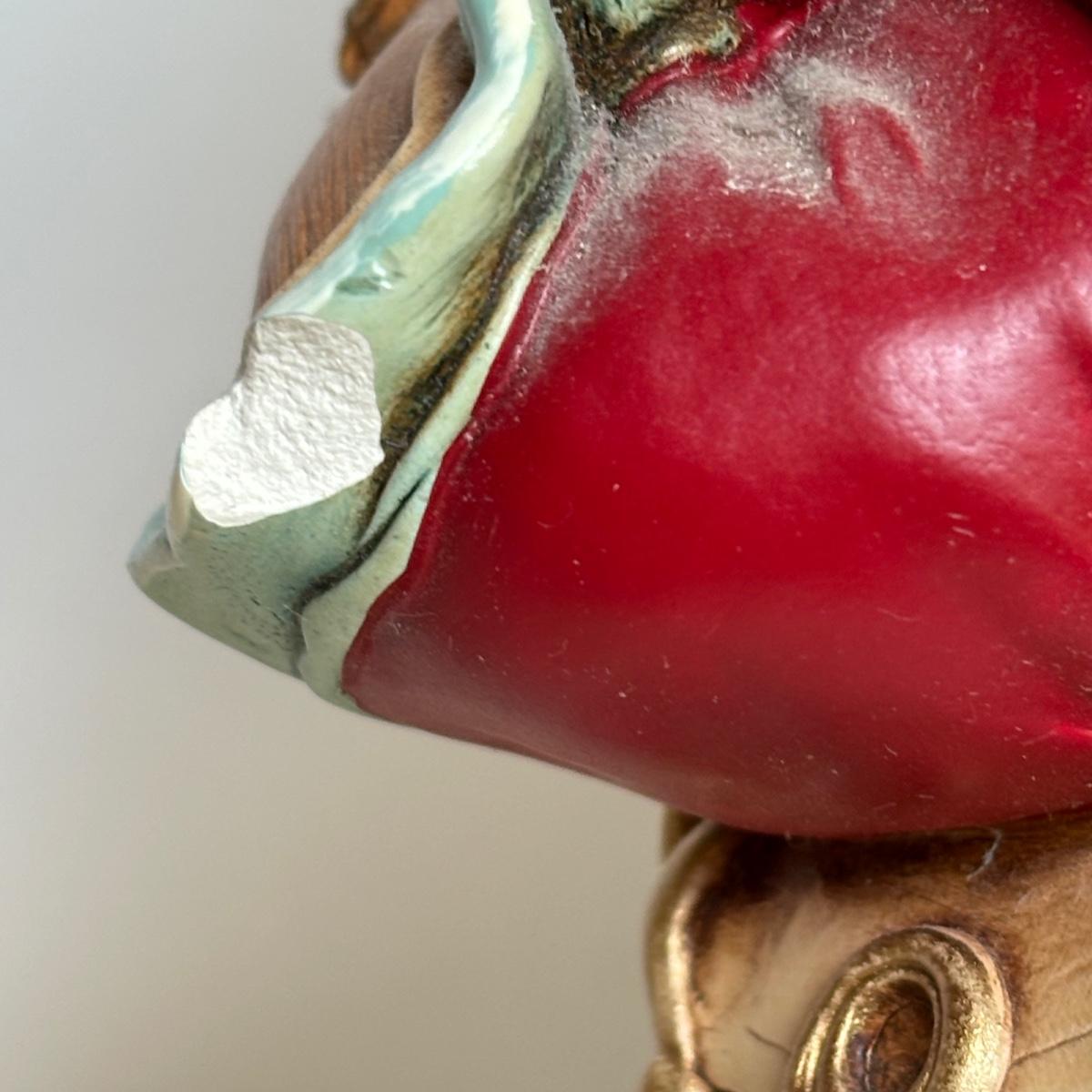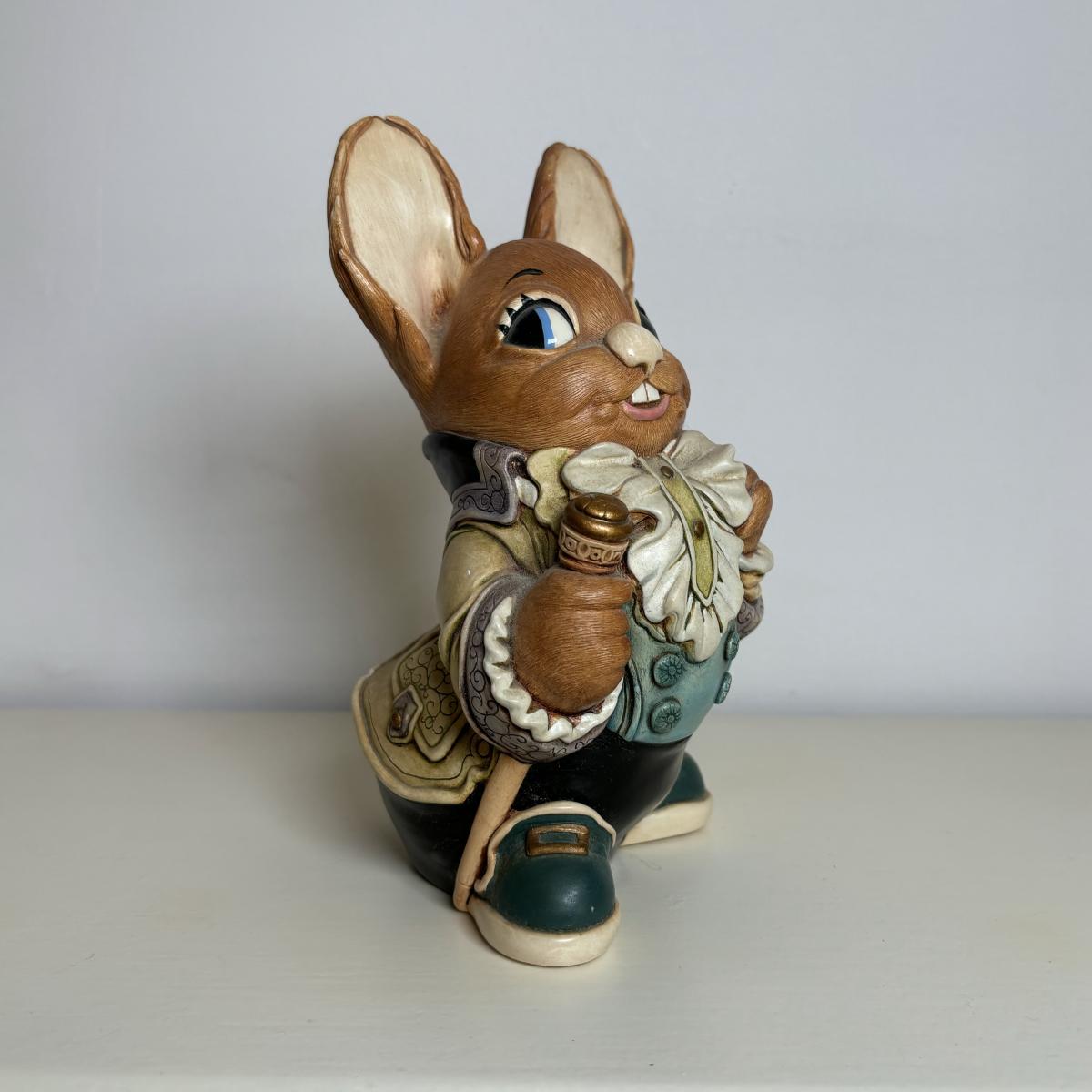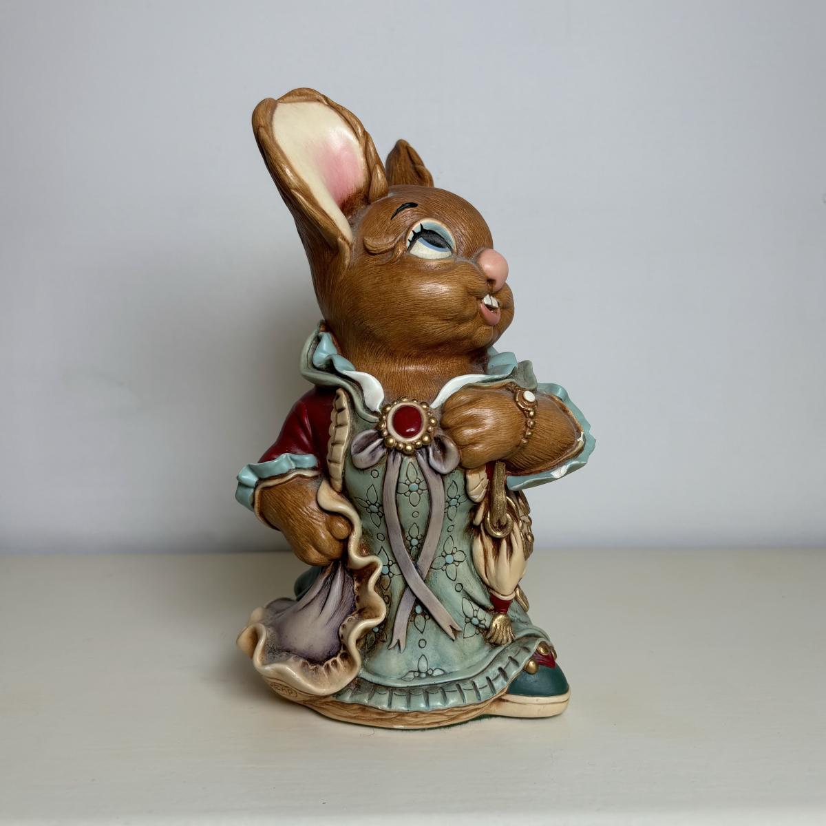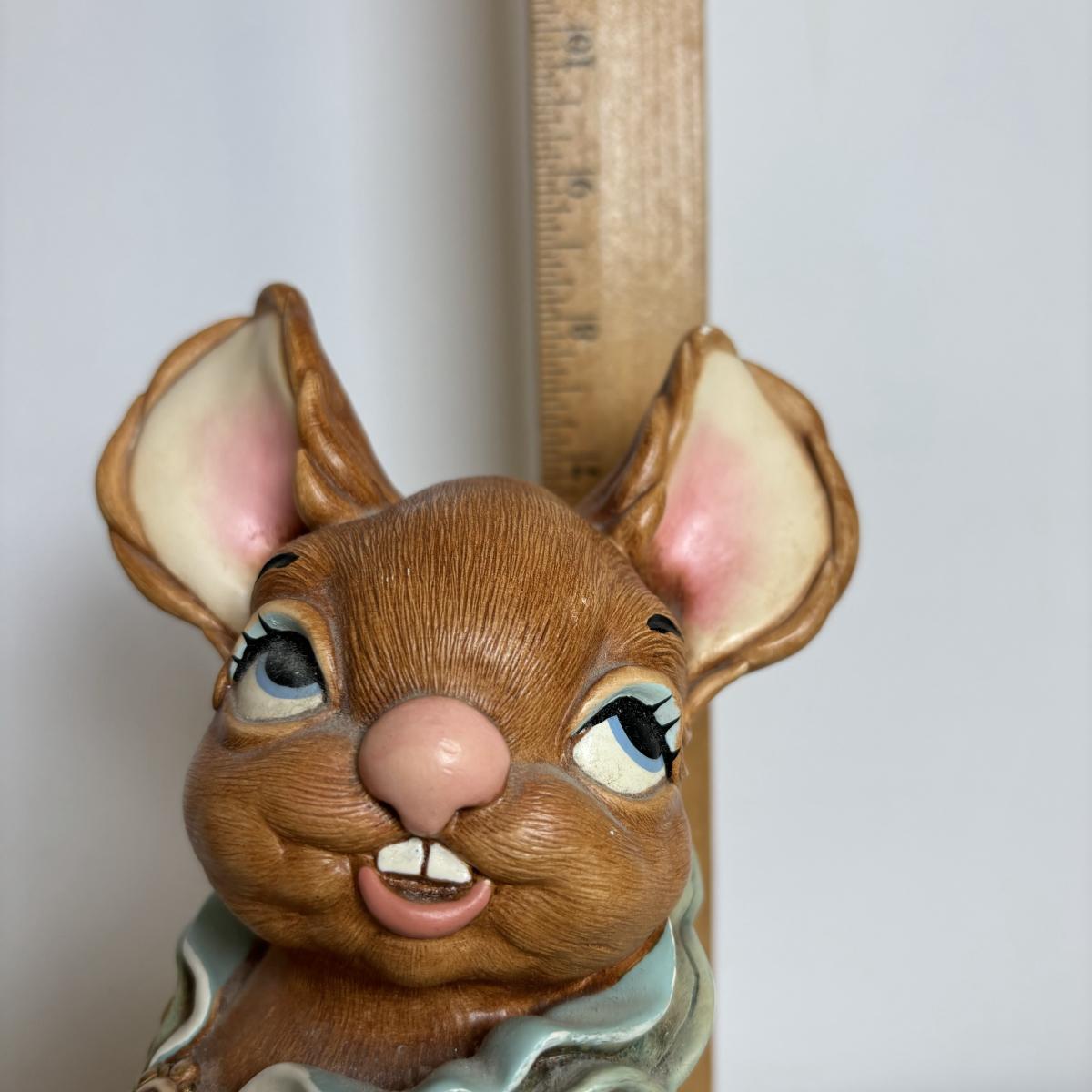 "Aunt Ruby" rabbit has chipped ruffle on the sleeve of her dress.