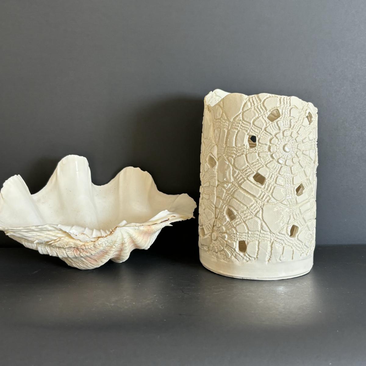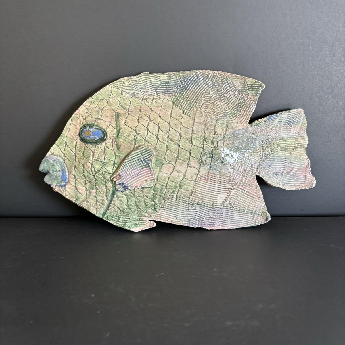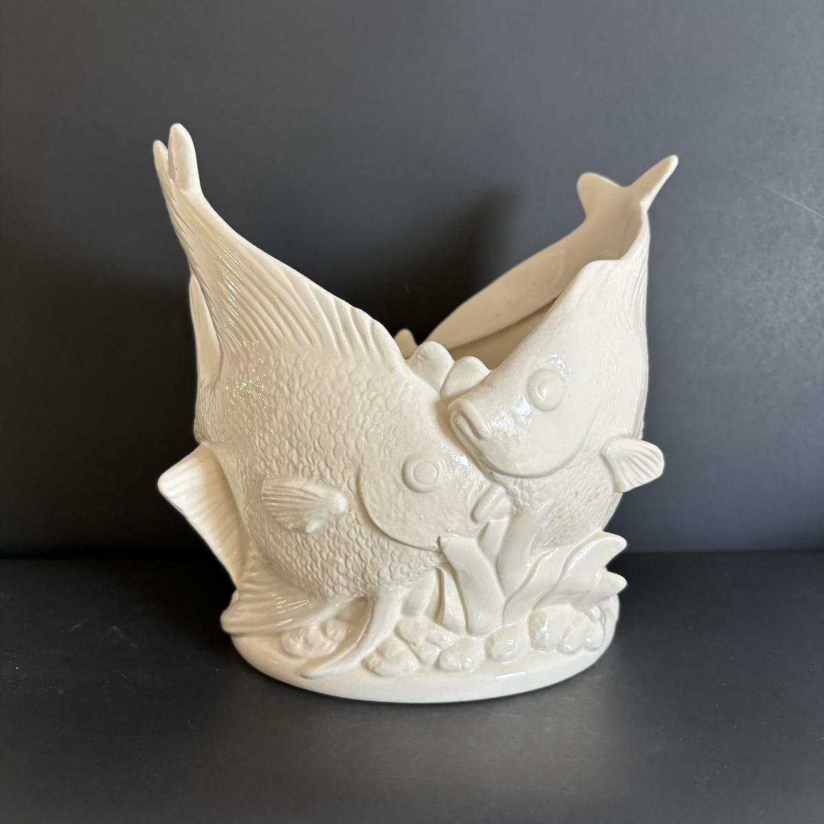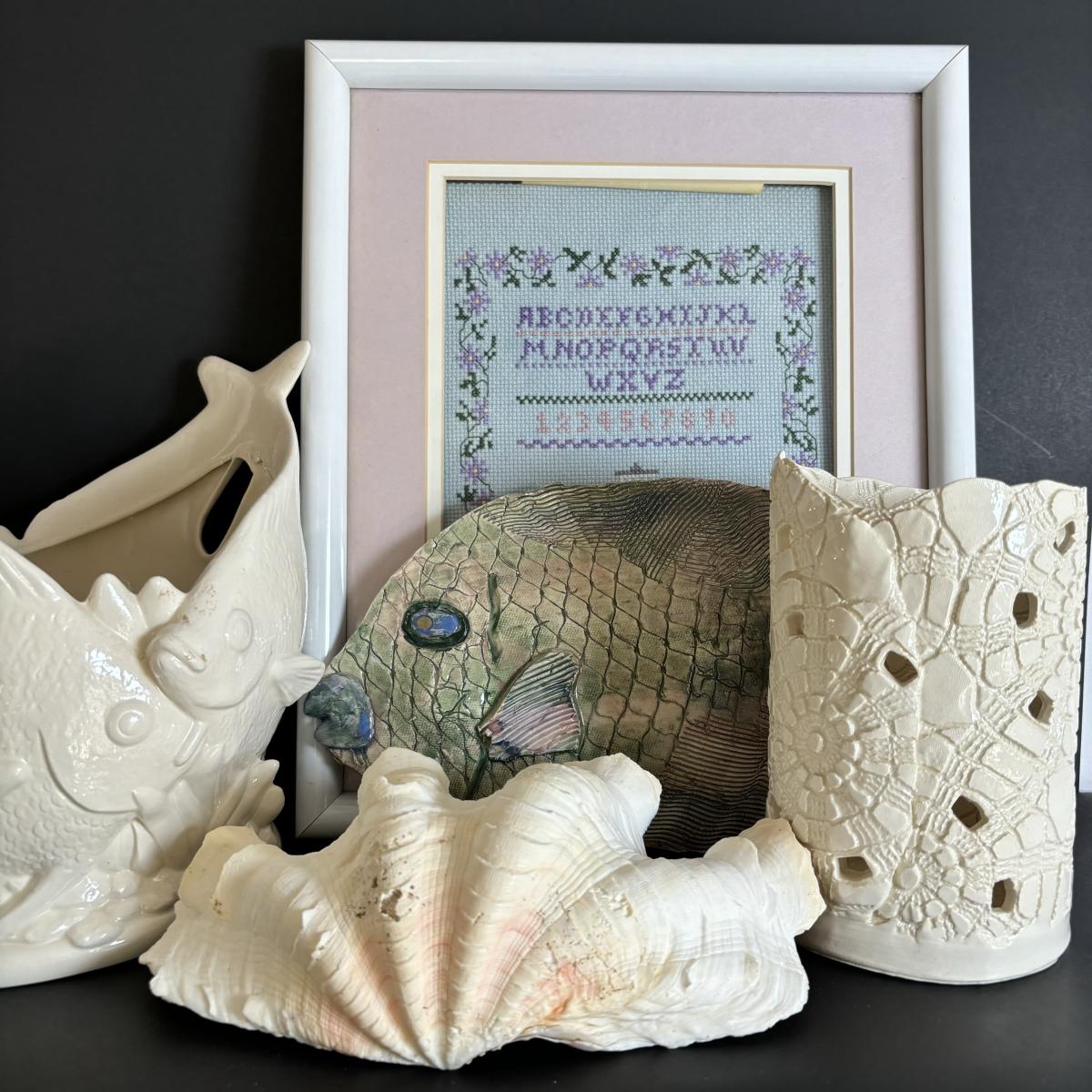 LOT 18: Cross Stitch ABC Sampler/Capy May, Handcrafted Art Pottery Fish & Vase, Ceramic Fish Planter