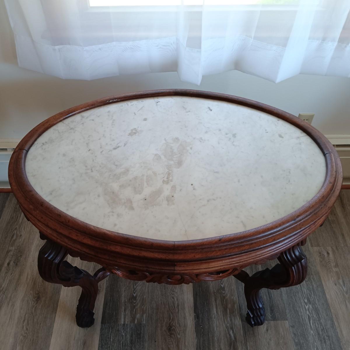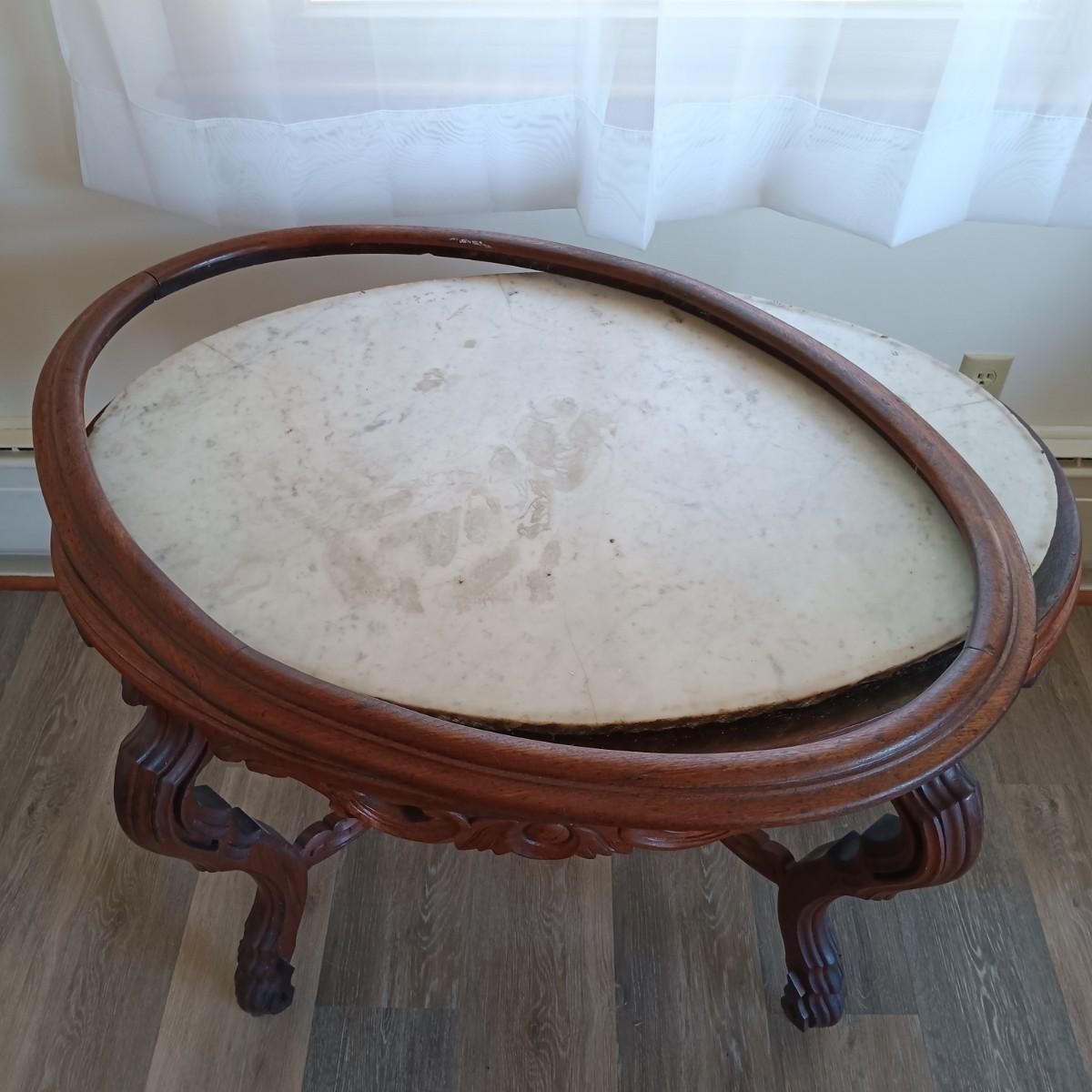 LOT 29: Vintage Marble-Top Oval Table