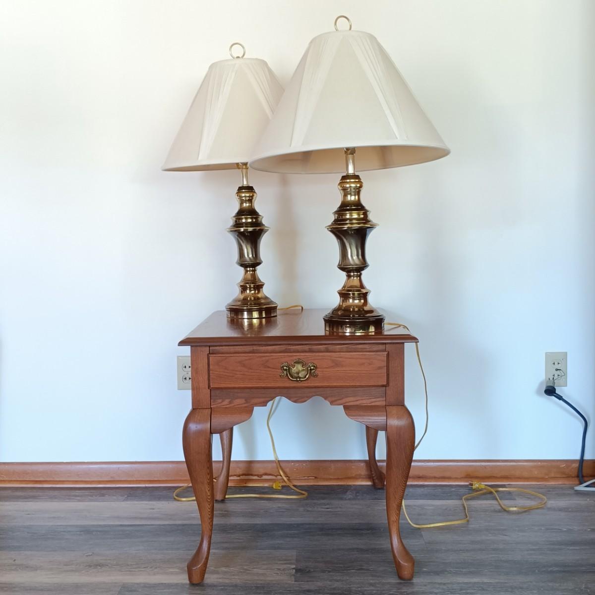 LOT 30: Pair of Vintage Brass Table Lamps with Side Table