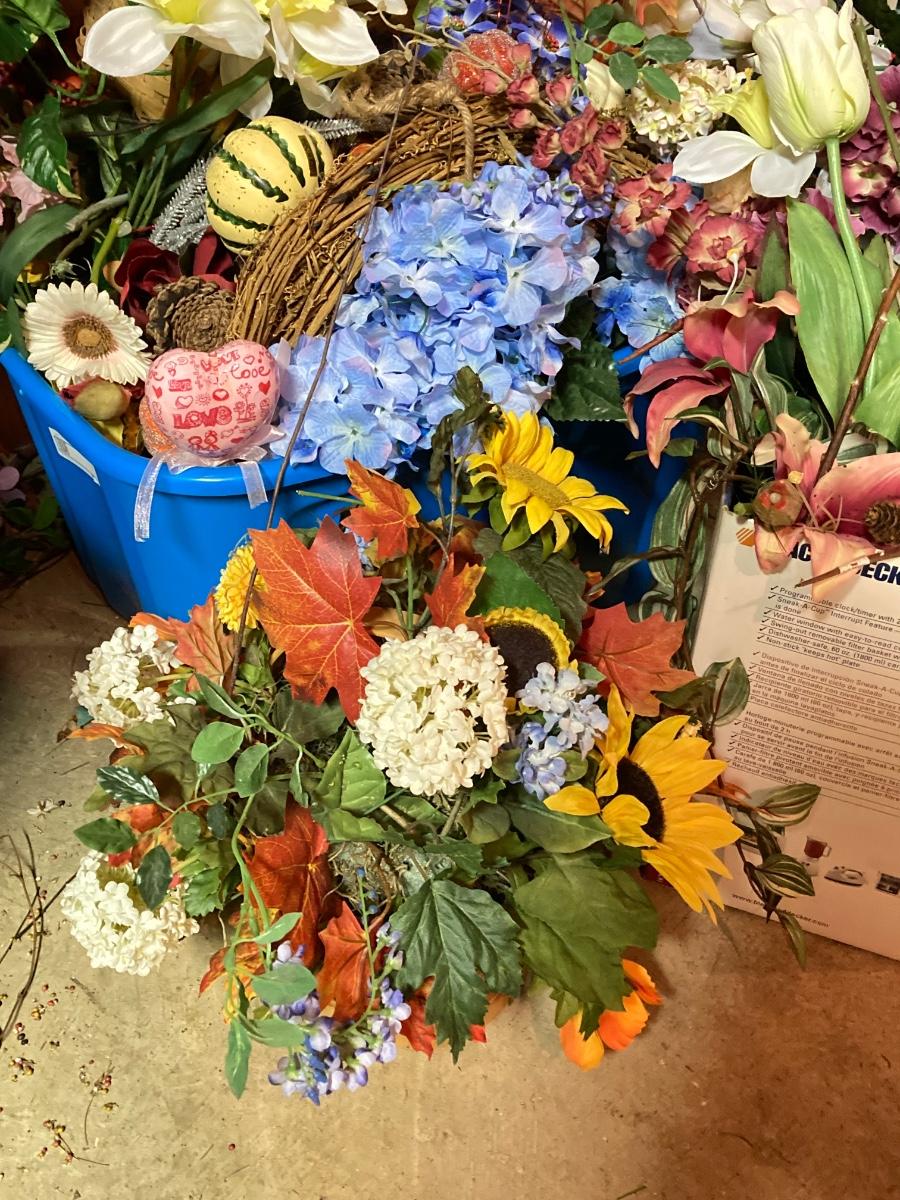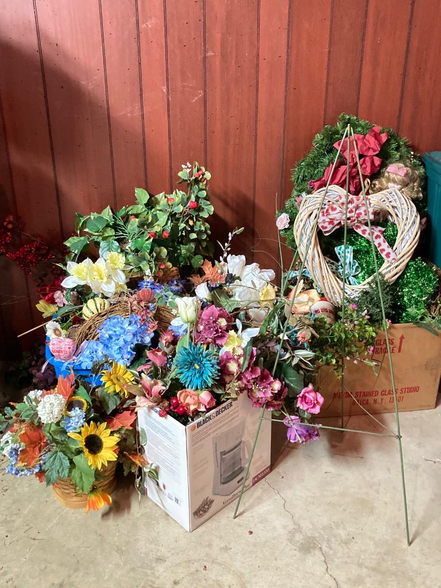 LOT 55: Large Assortment of Artificial Flowers, Wreaths and More