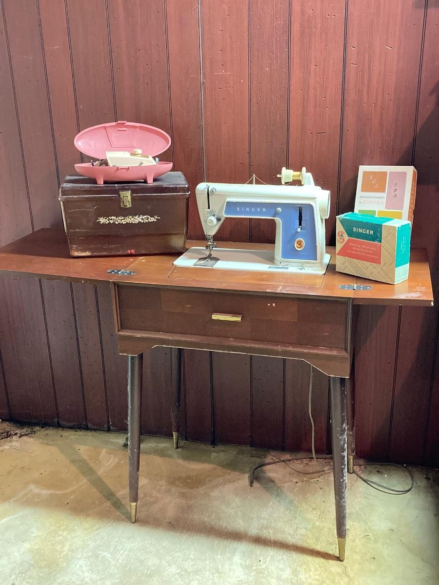 LOT 58: Vintage Singer Sewing Machine Model 604 and Accessories