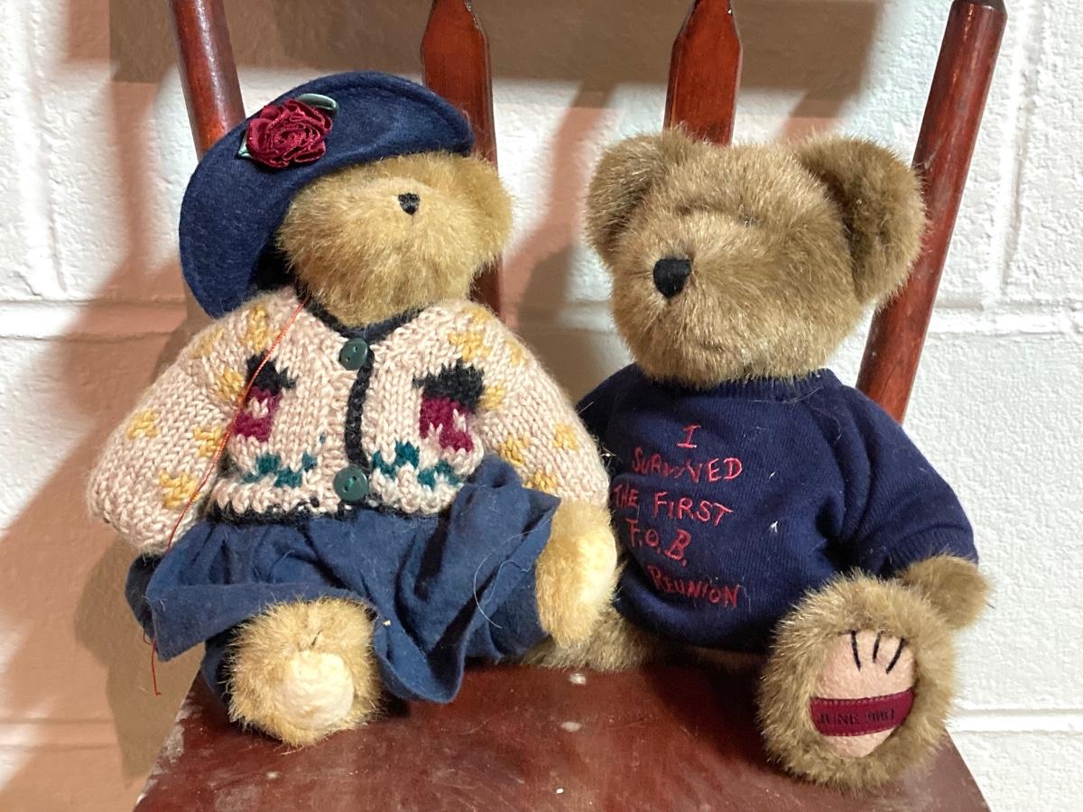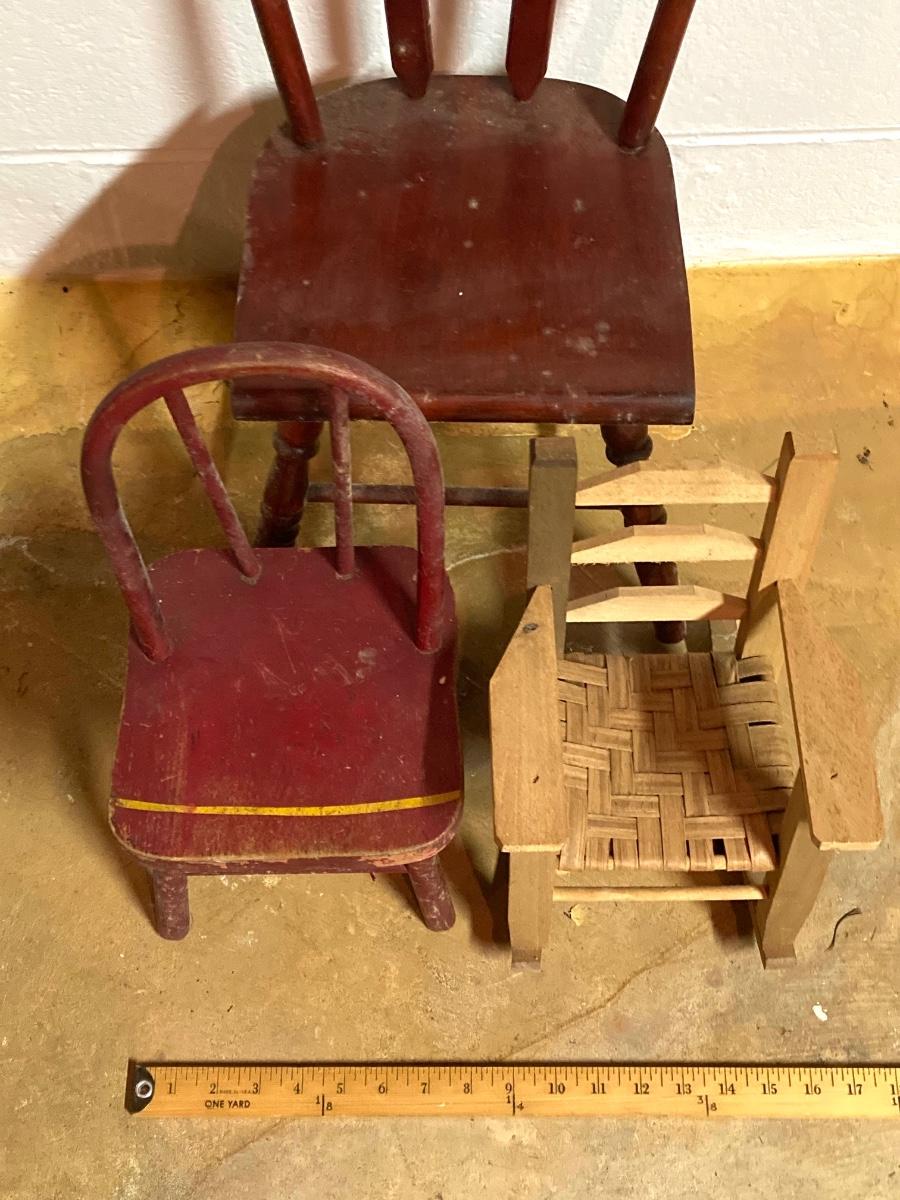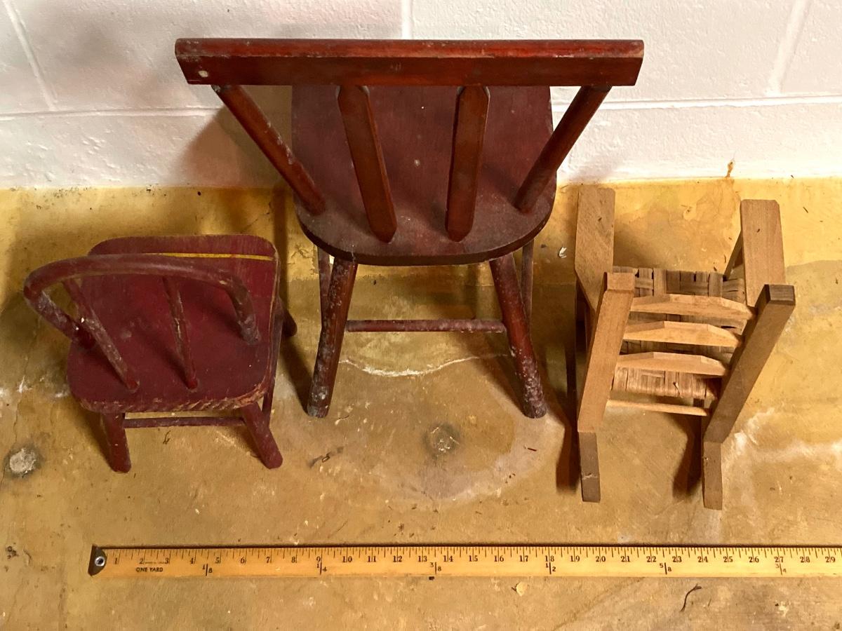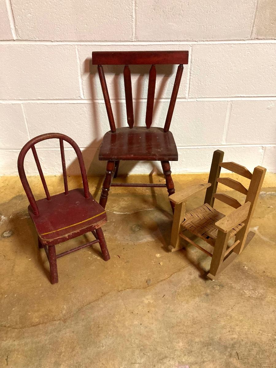 LOT 65: Three Small Vintage Wooden Chair and Collection of Bear Stuffed Animals (Boyd's and More)