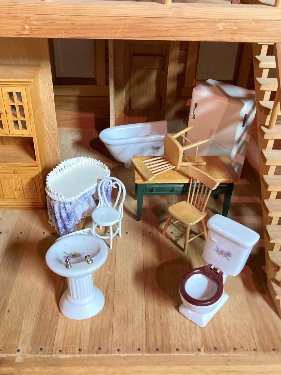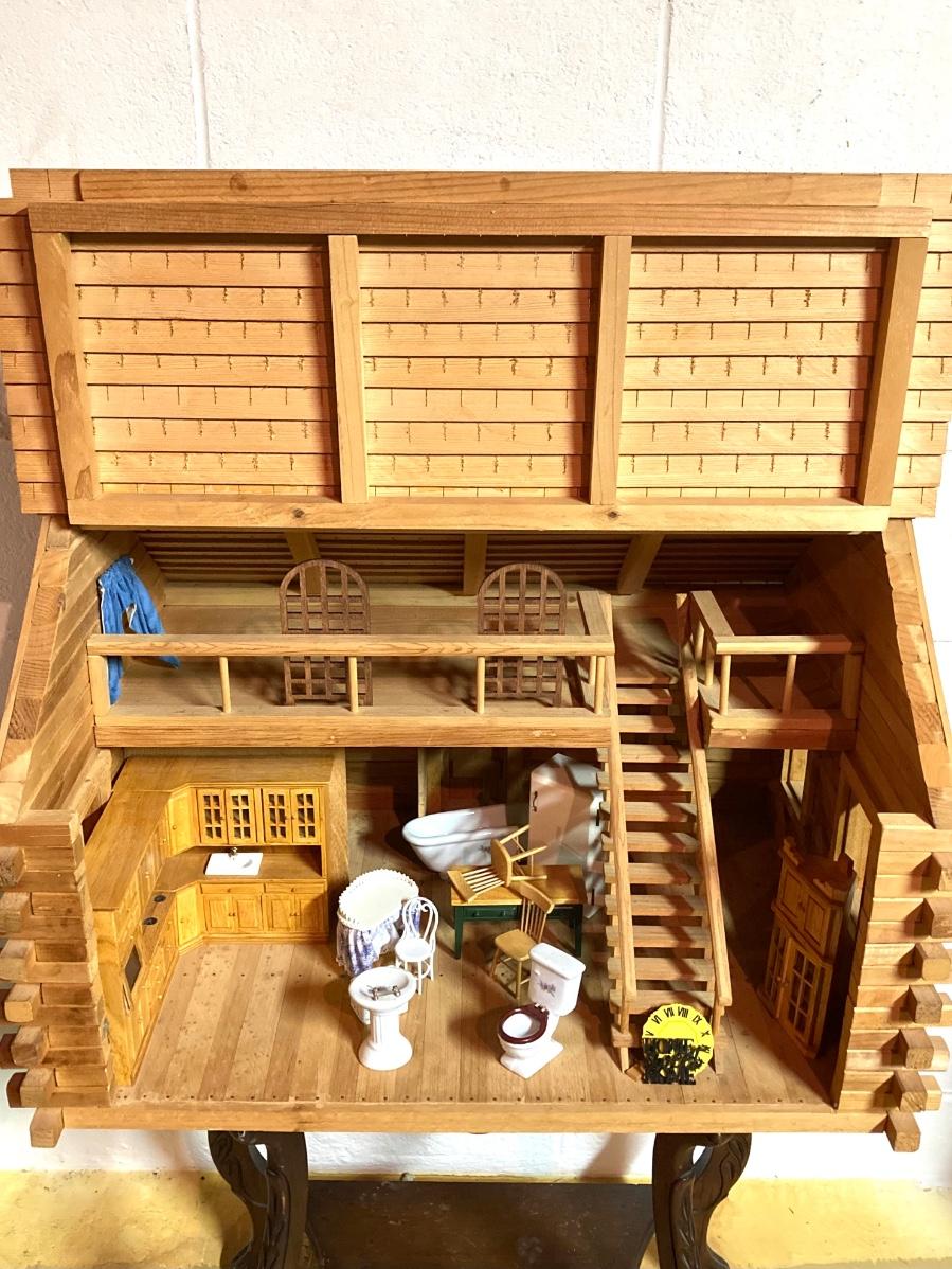 LOT 69: Handcrafted Wooden Doll House and Accessories