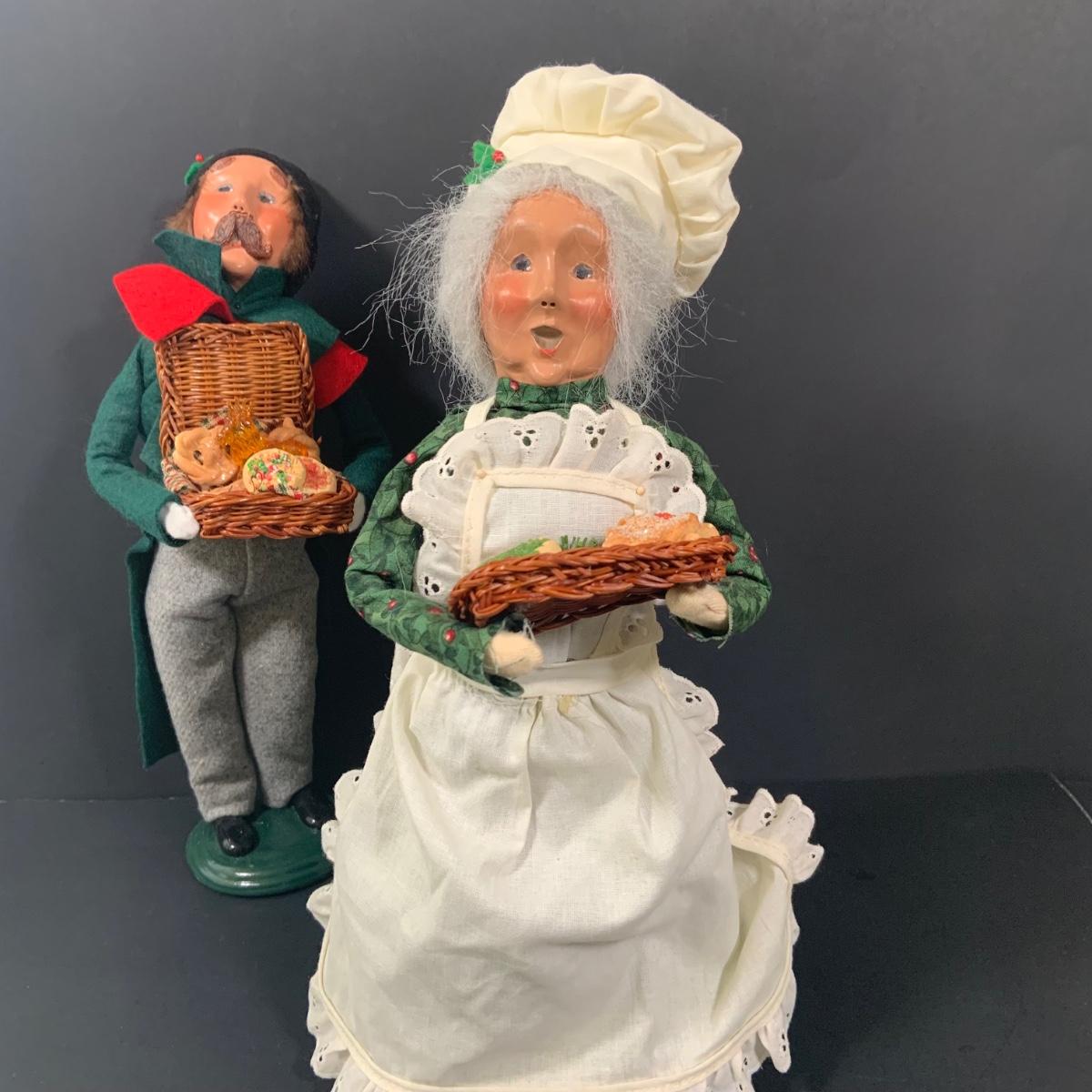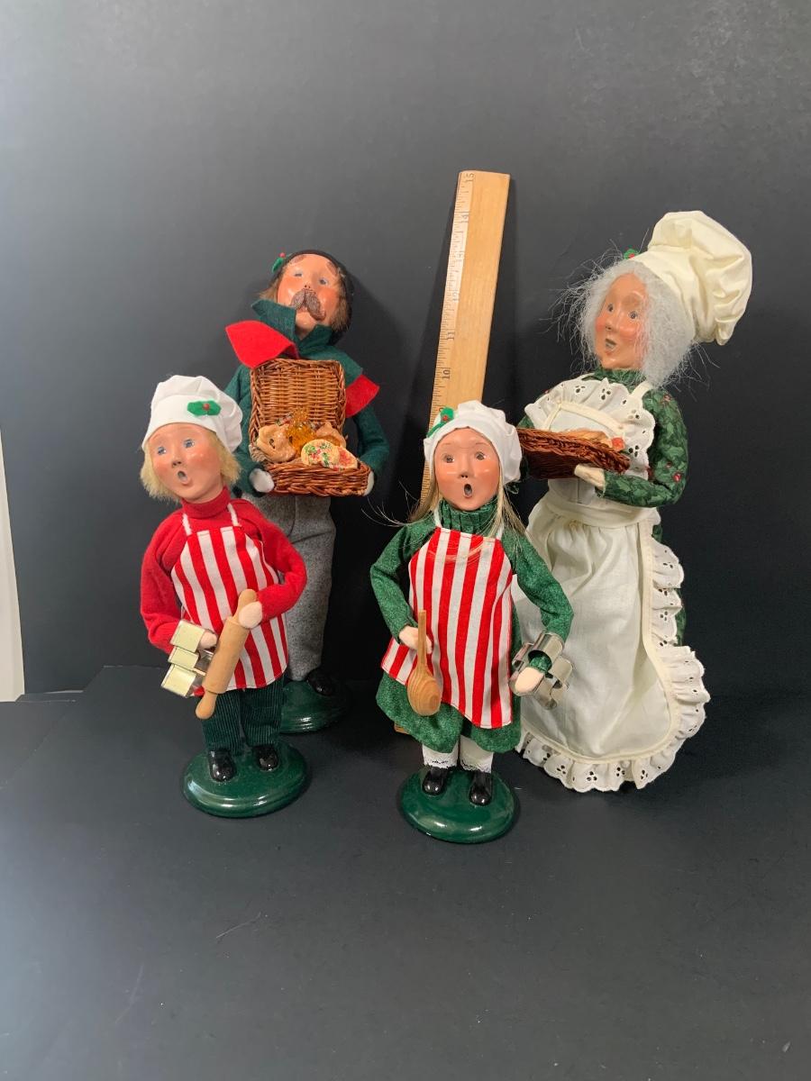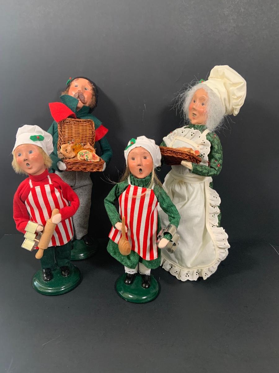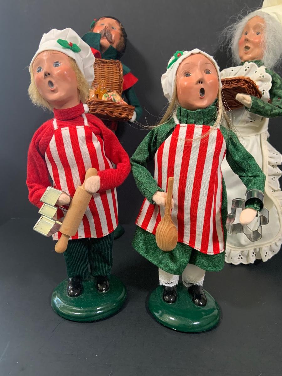 LOT:92: Byers Choice Christmas Baking Caroler - 2 Adult Size Ones with Baskets of Cookies and 2 Child Sized Helpers