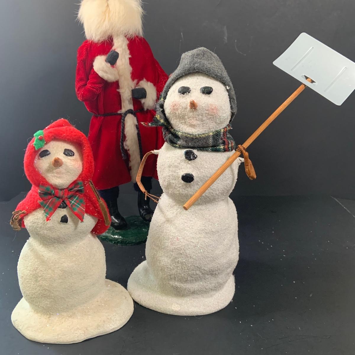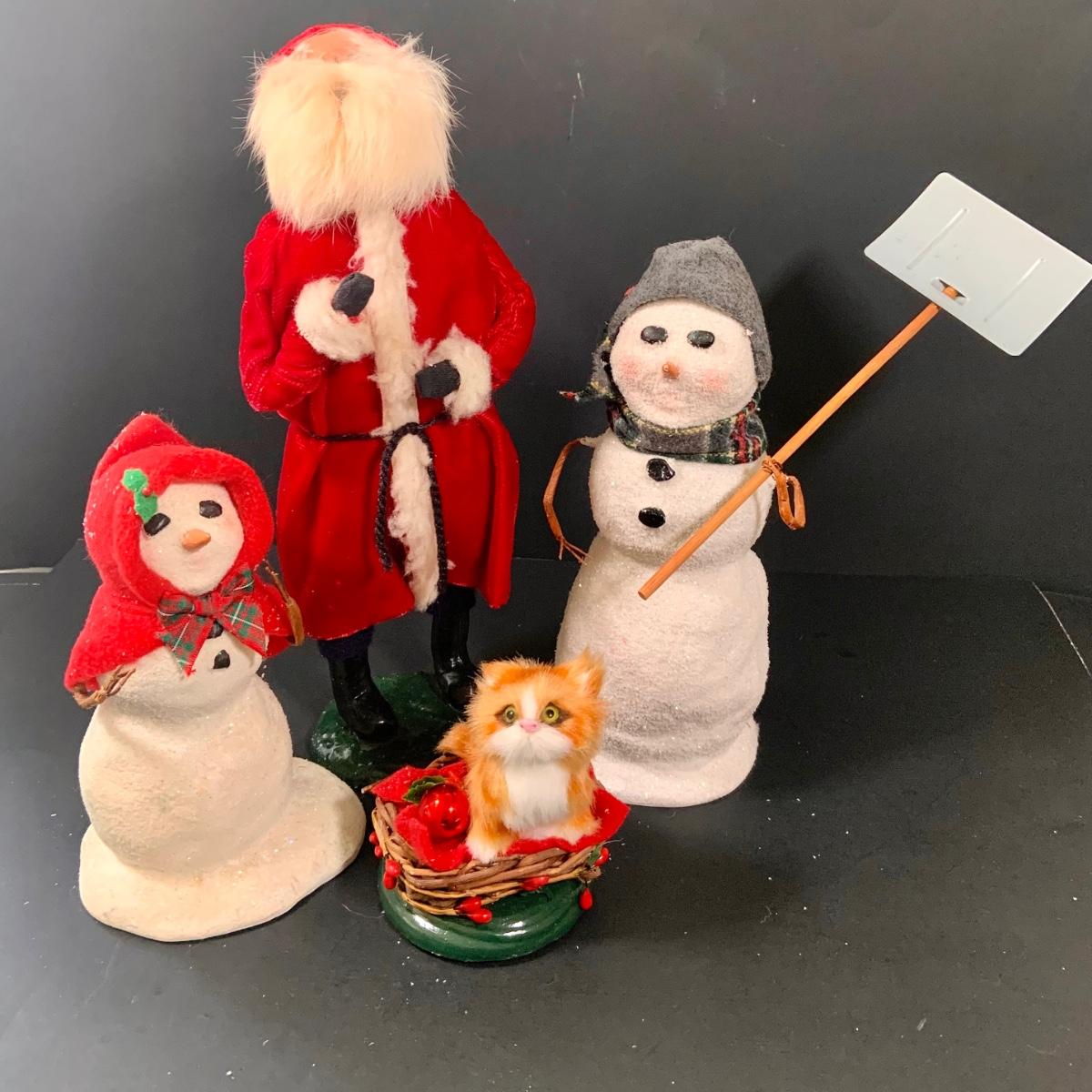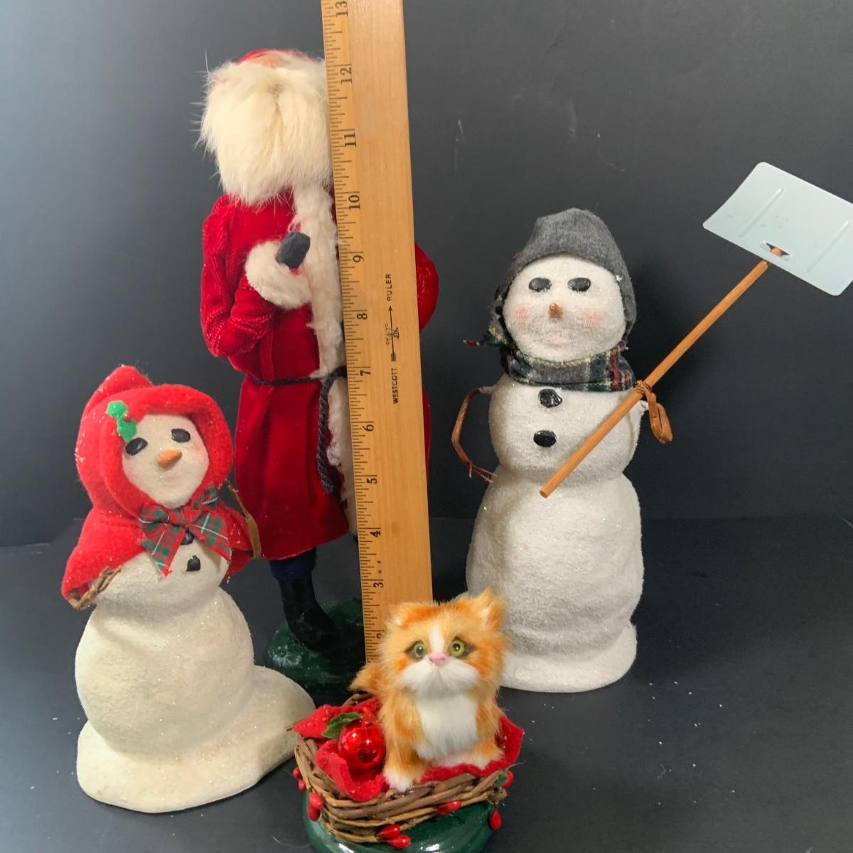 LOT:99: Byers Choice Vintage Santa Caroler, Snowman, Snowwoman and Christmas Kitty