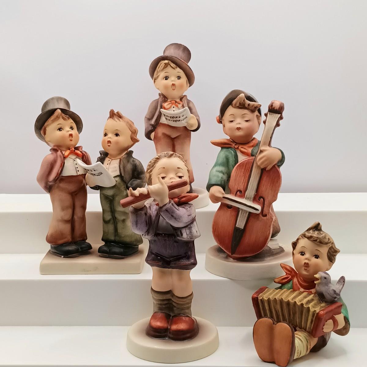 LOT 109: Goebel Hummel Street Singer 131, Let's Sing 110/0, Duet 130, Boy Playing Cello 186 & Morning Concert 447