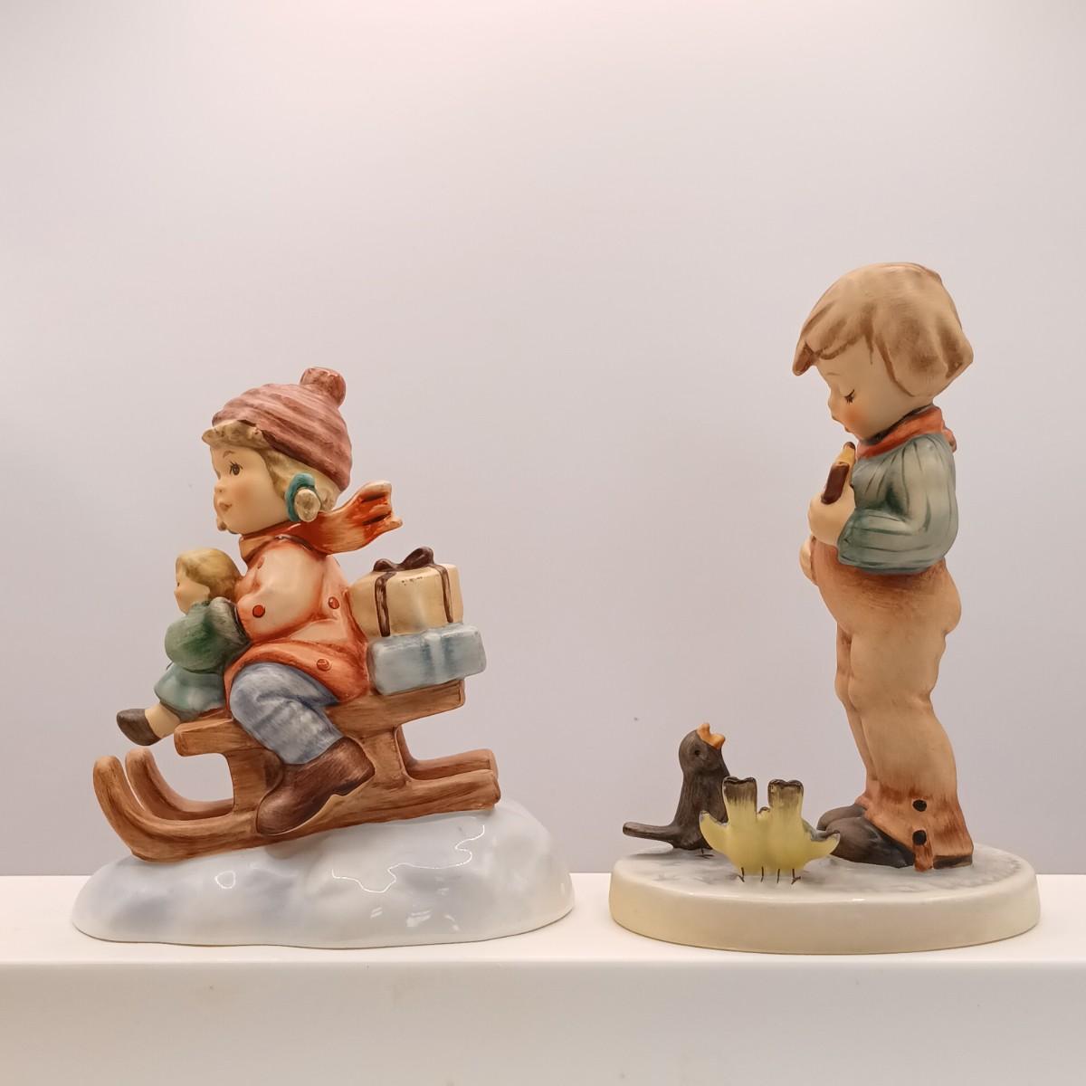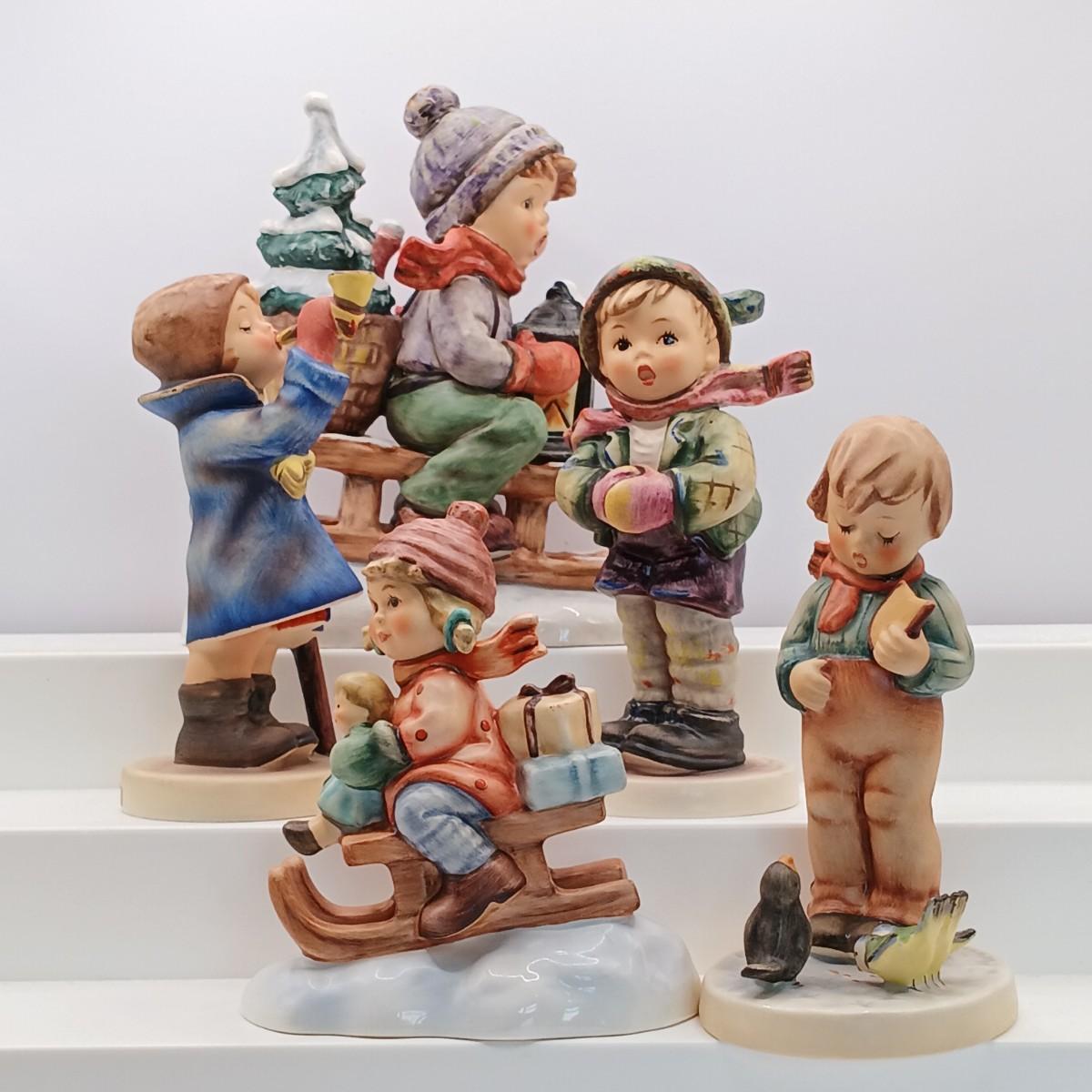 LOT 119: Goebel Hummel Ride Into Christmas 396, Christmas Delivery 2014 2/0, Bird Watcher 300, Hear Ye Hear Ye 15/0 & It's Cold 421