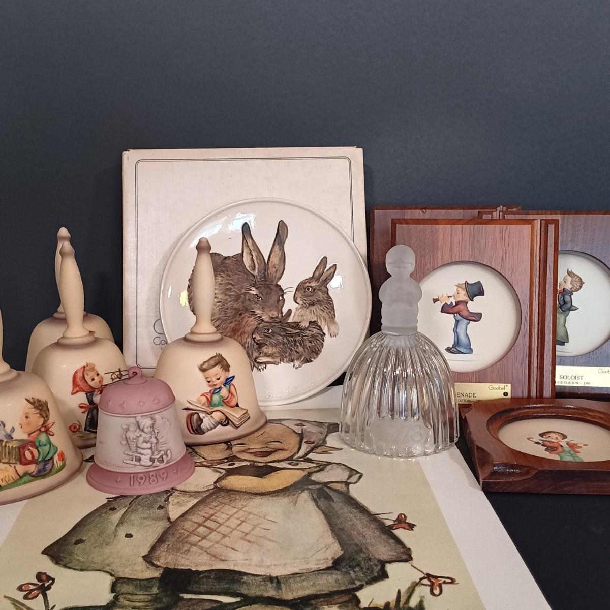 LOT 128: Goebel Hummel Bells, Miniature Plates & Club Poster w/ Goebel Plates