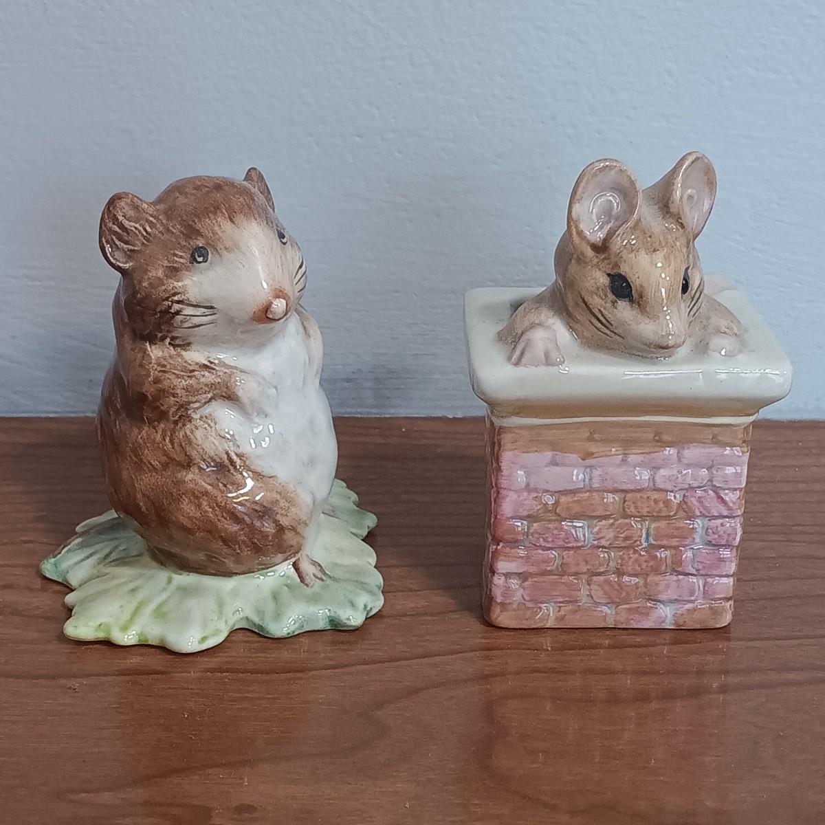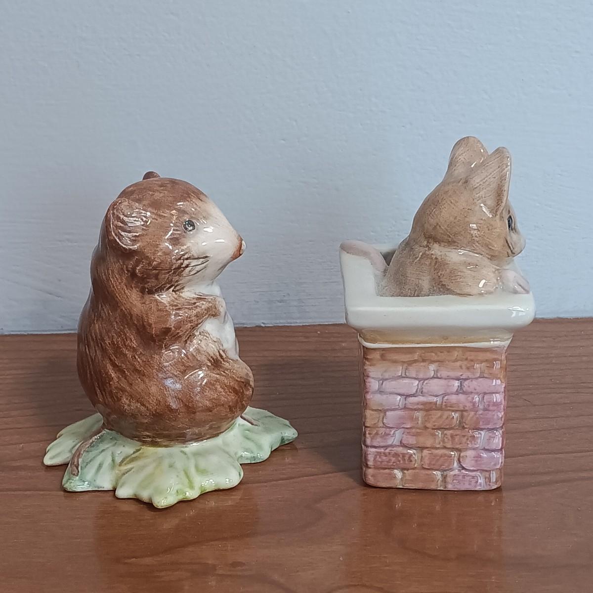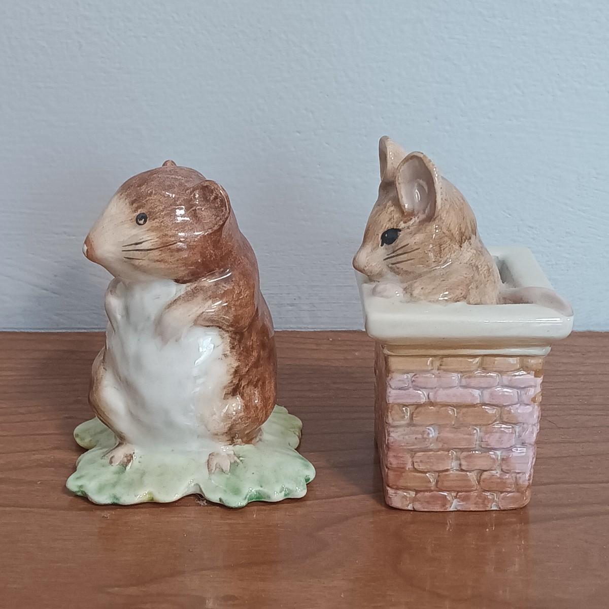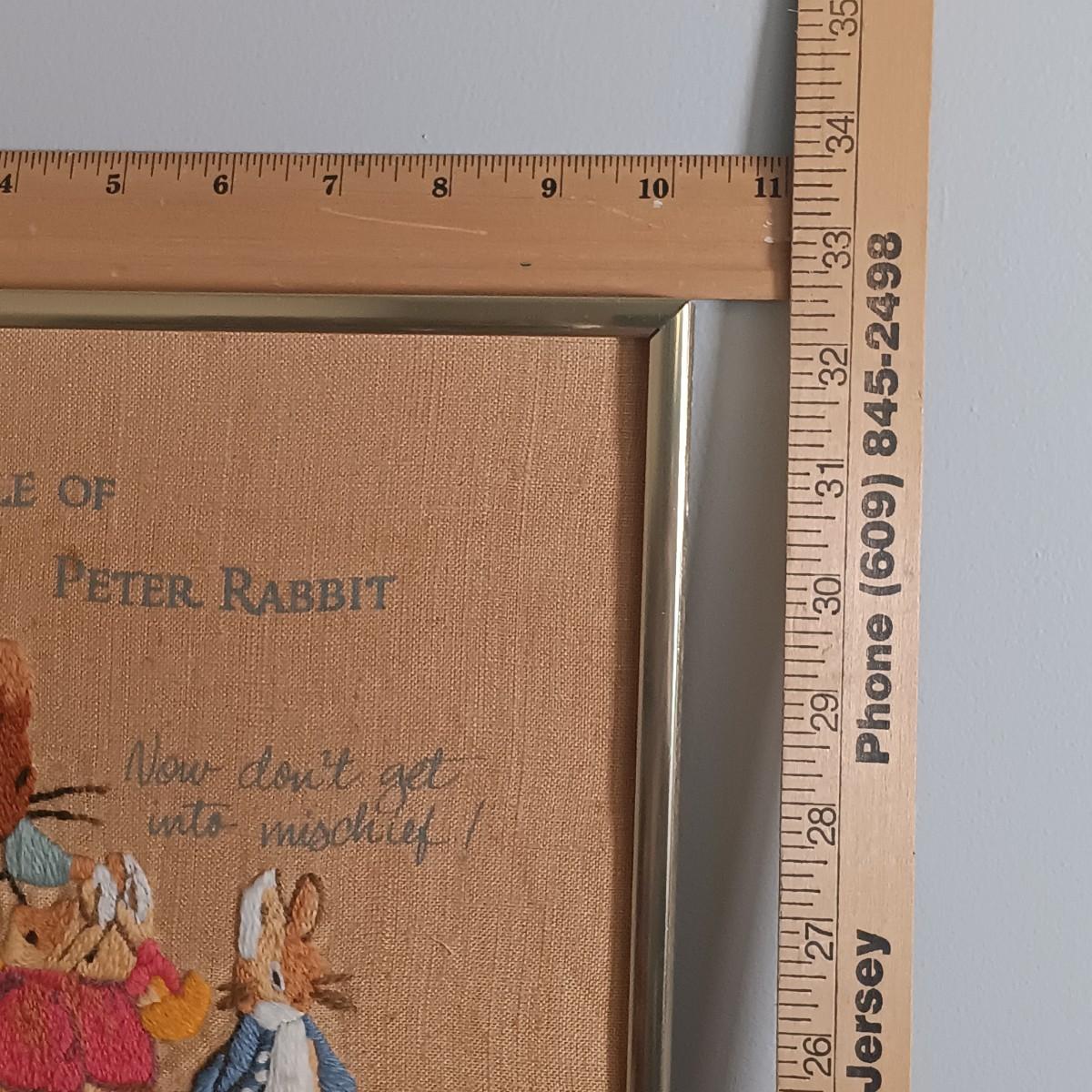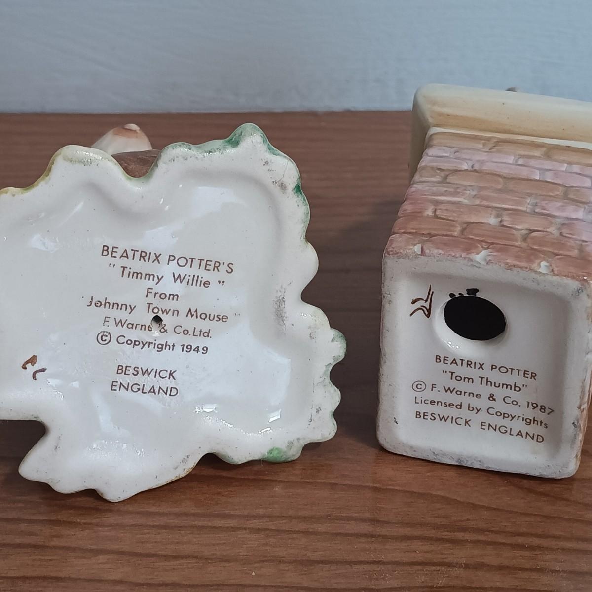 LOT 131: Beatrix Potter 10" x 33" Vintage Cross Stitch, Tom Thumb and Timmy Willie Beswick Figurines & Books